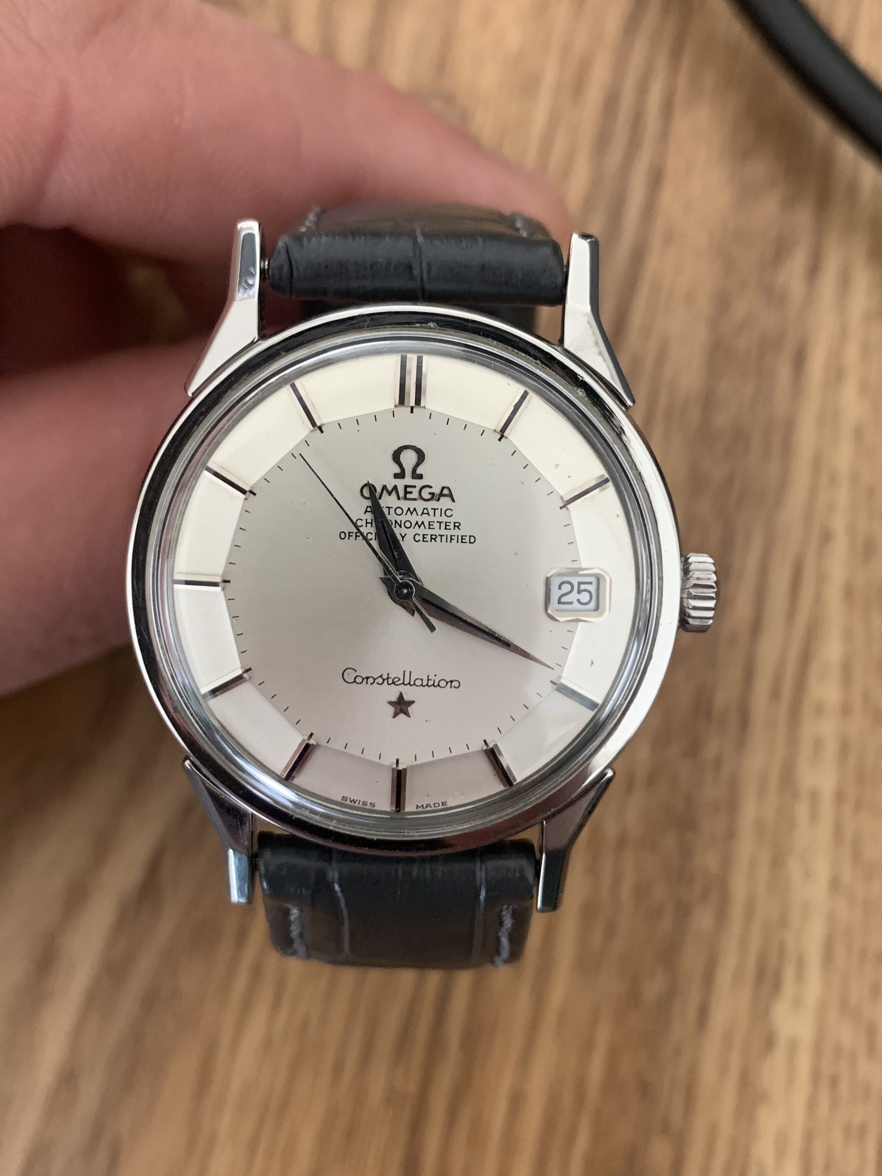 The case has seen polishing , the “dog legs” are not so sharp anymore, don’t know about the crown but most times see those with the octo-crown. But if the dial is untouched (don’t have the resolution on my phone) it’s very nice and would make the watch interesting in my opinion.
