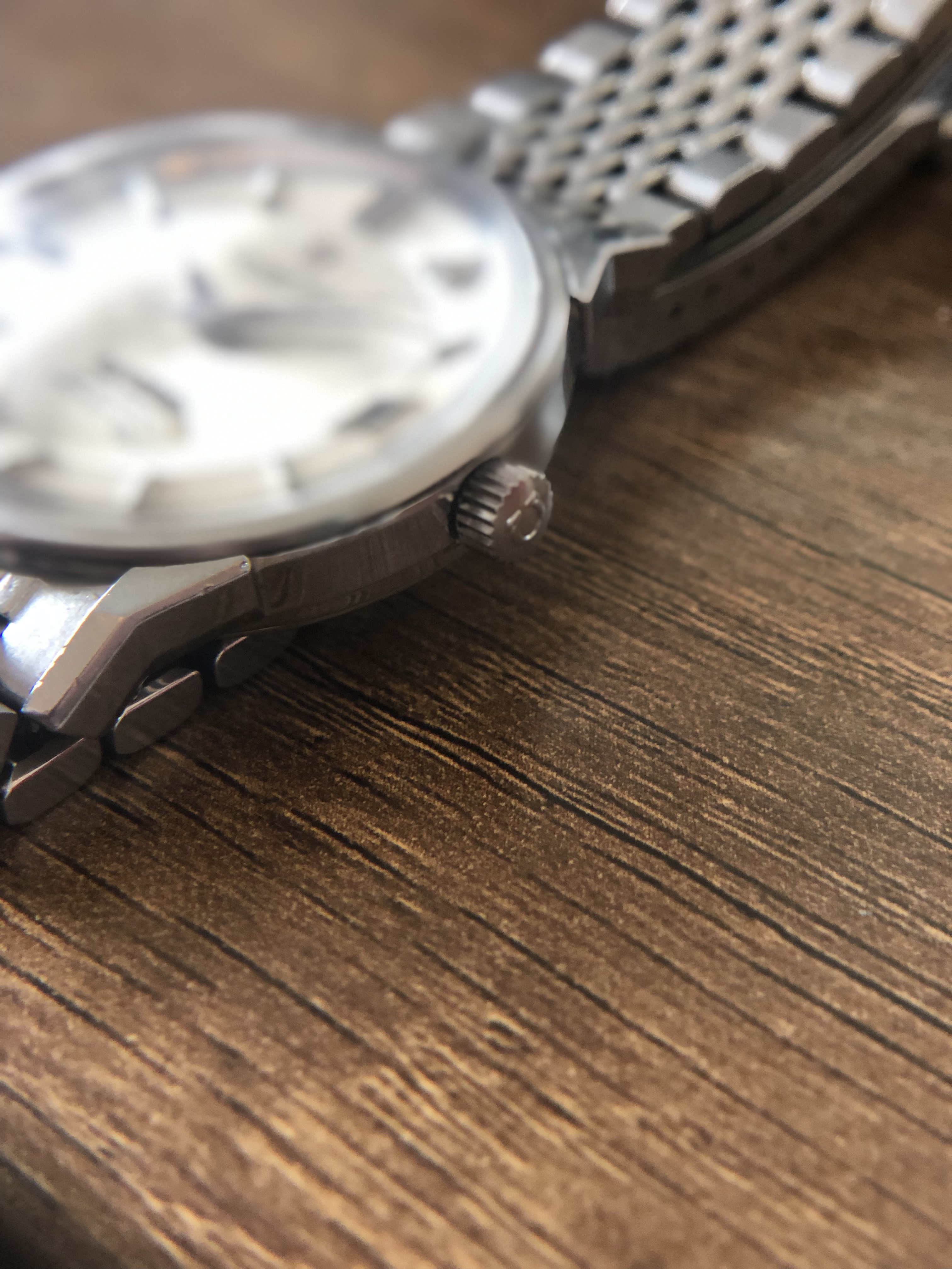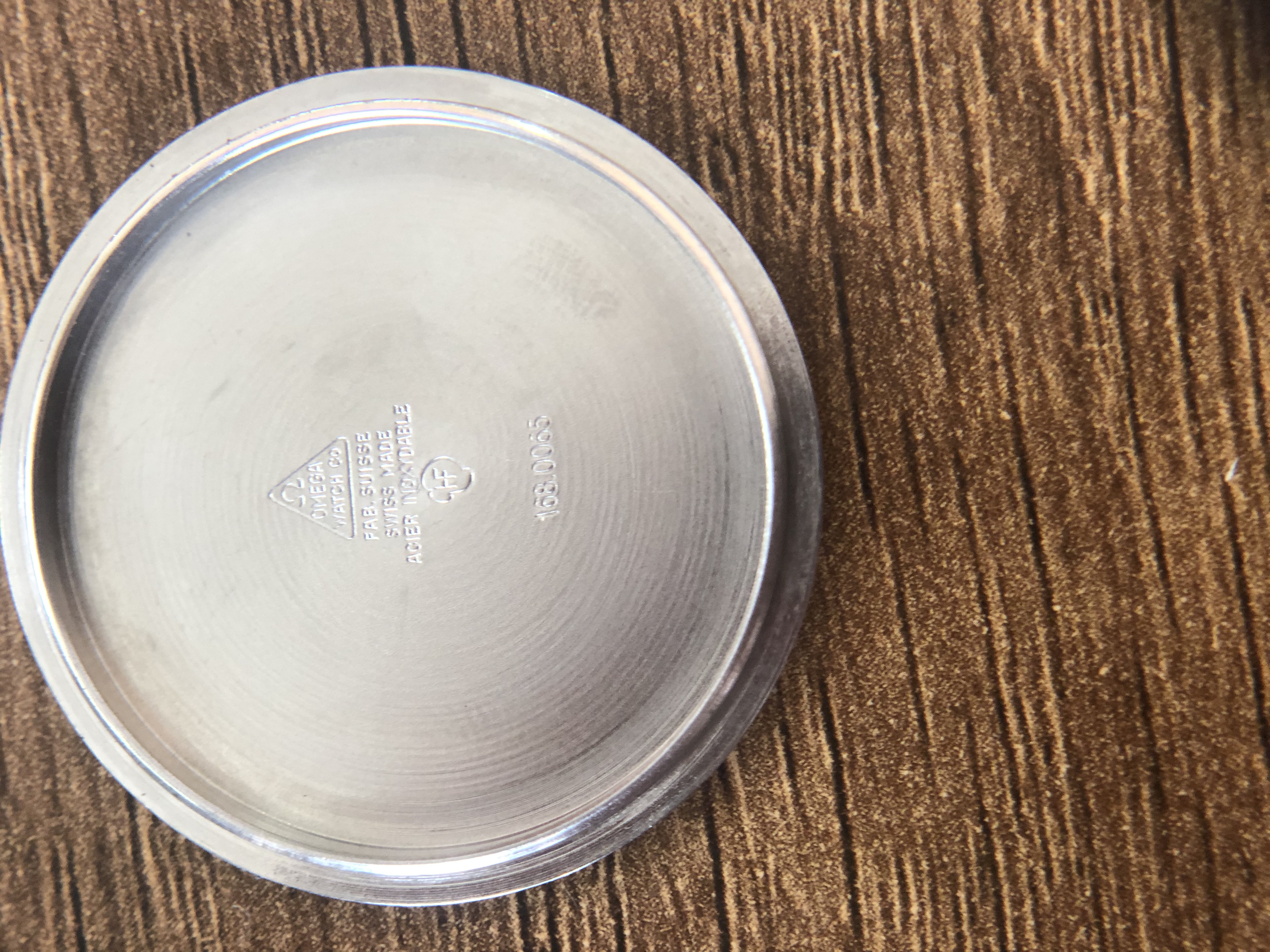 - Case: Original sharp case, unpolished, with tiny dings/scratches here and there. The Observatory symbol on the back is well visible.
