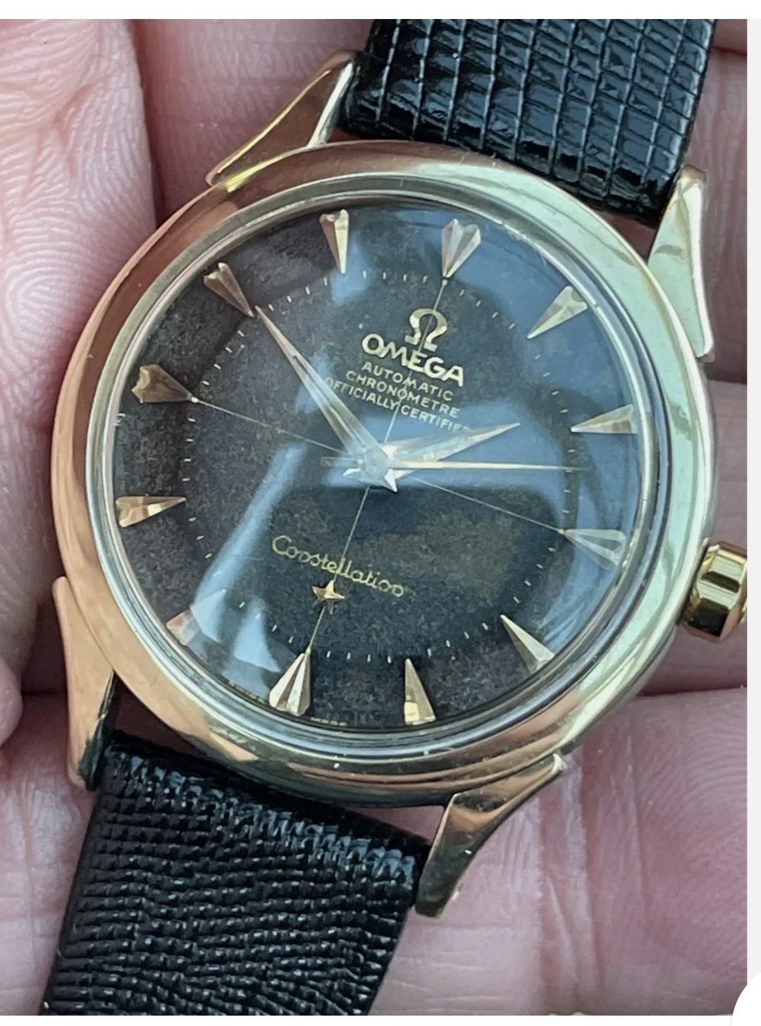 But it also ended at <1k GBP. Personally, I'm happy about everybody who is put off by something like an incorrect crown. The case is a bigger issue, but really, 2852s aren't particularly uncommon watches. Add 300-350GBP for a nice spare steel case or a little less for a gold-capped example and you got yourself a pretty cool, original black pie pan dial Connie for quite the price, especially in the UK-market. If you like the patina, that is. I do.