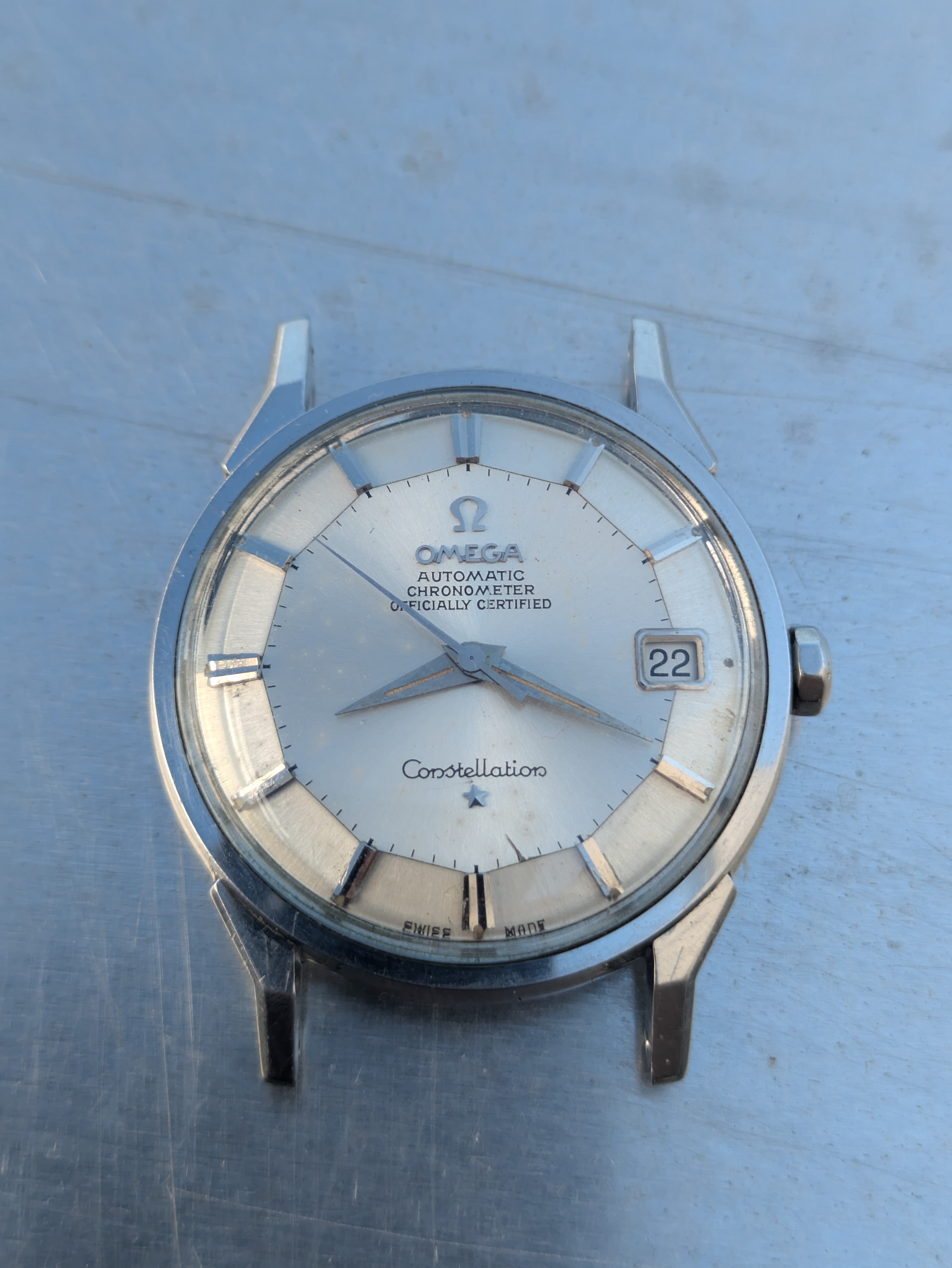 ·For sale is a SS 168.005 Constellation powered by Cal 561 Serial 20 mil, it was bought for a project that went nowhere. It is powered by a 561 movement which is not running, but my watchmaker assured me it just needs a service. Service history is unknown. If you want it up and running immediately, I could have it serviced for an extra 100 euro, turnaround around 10 days.