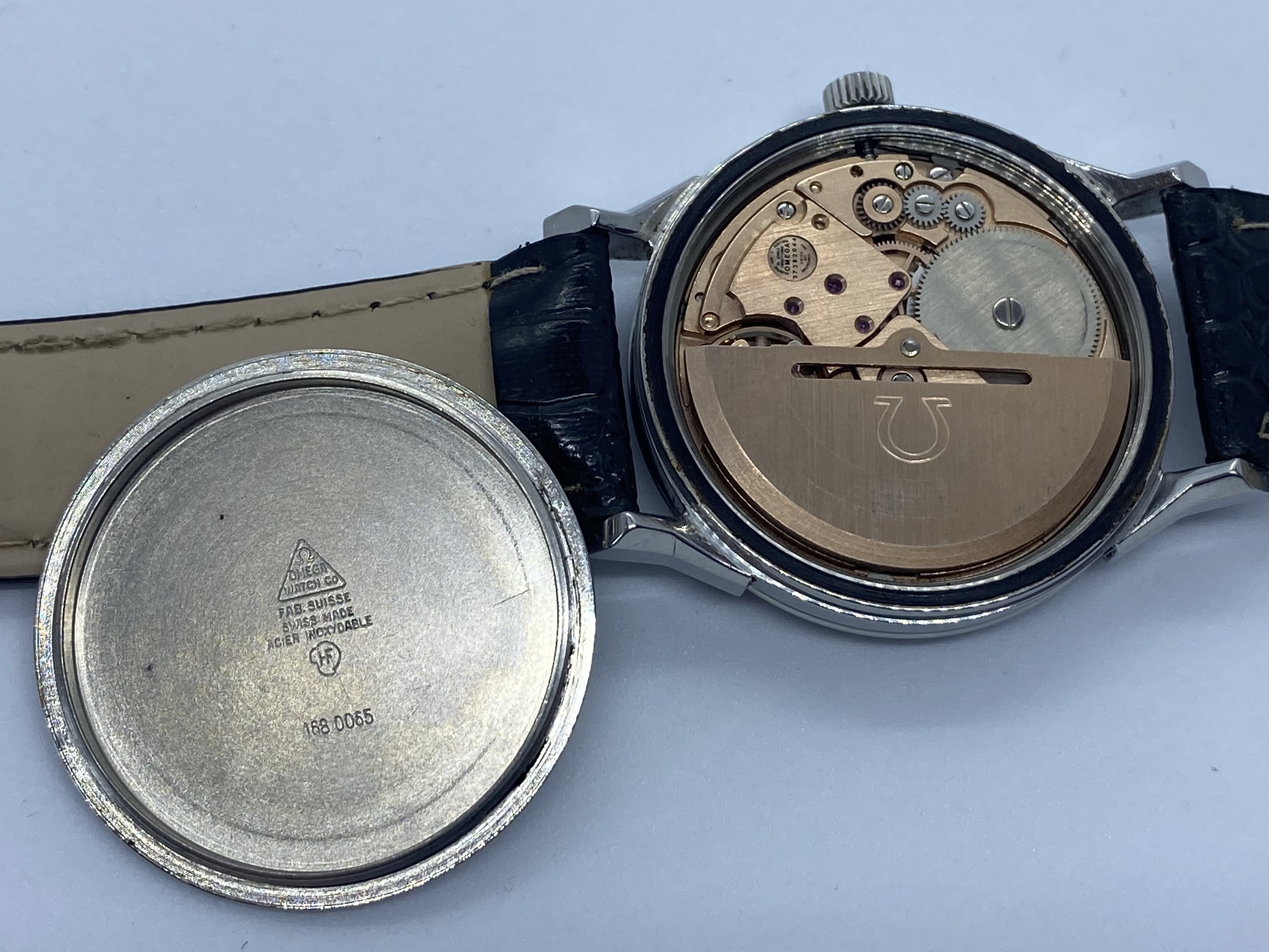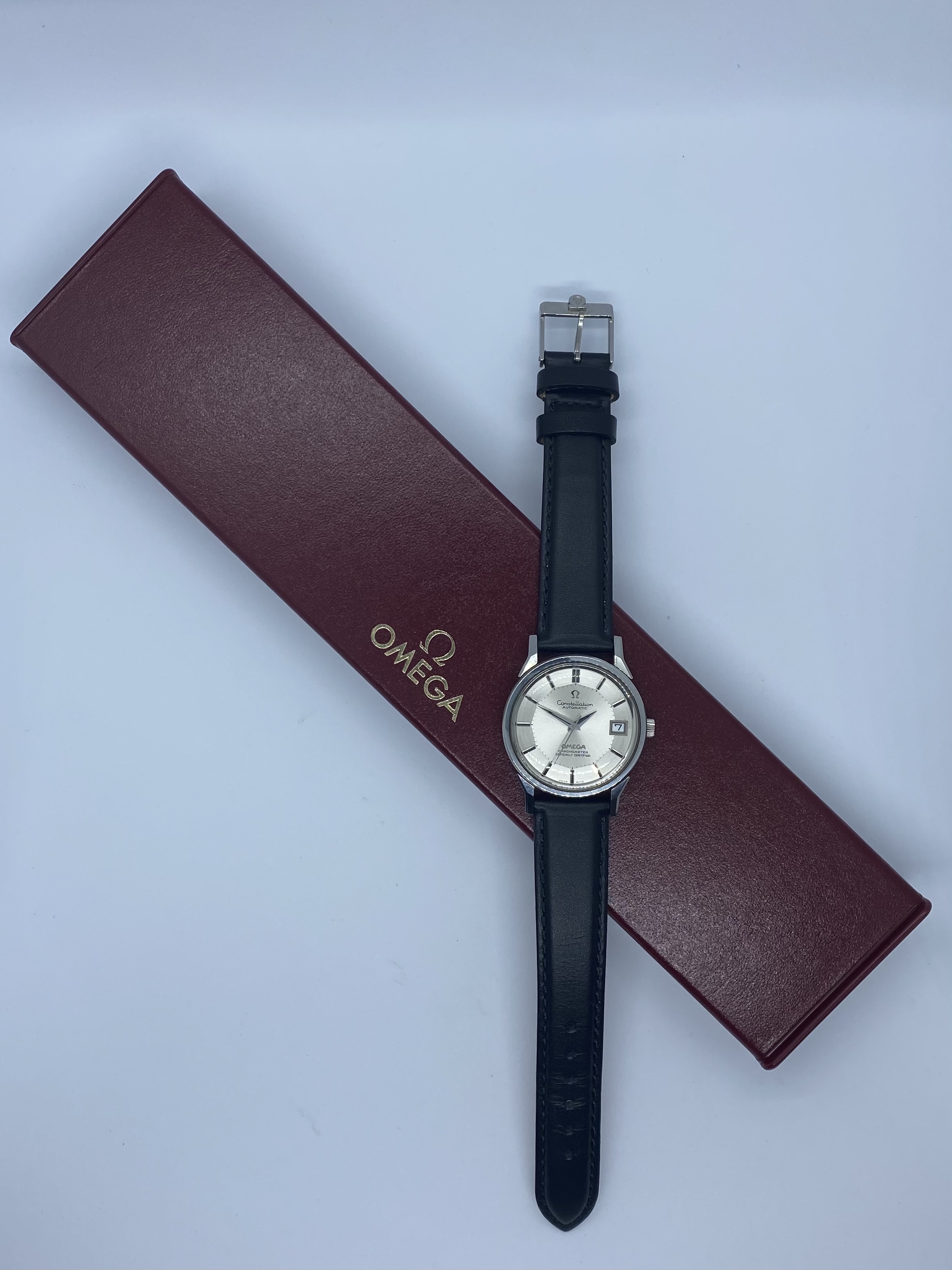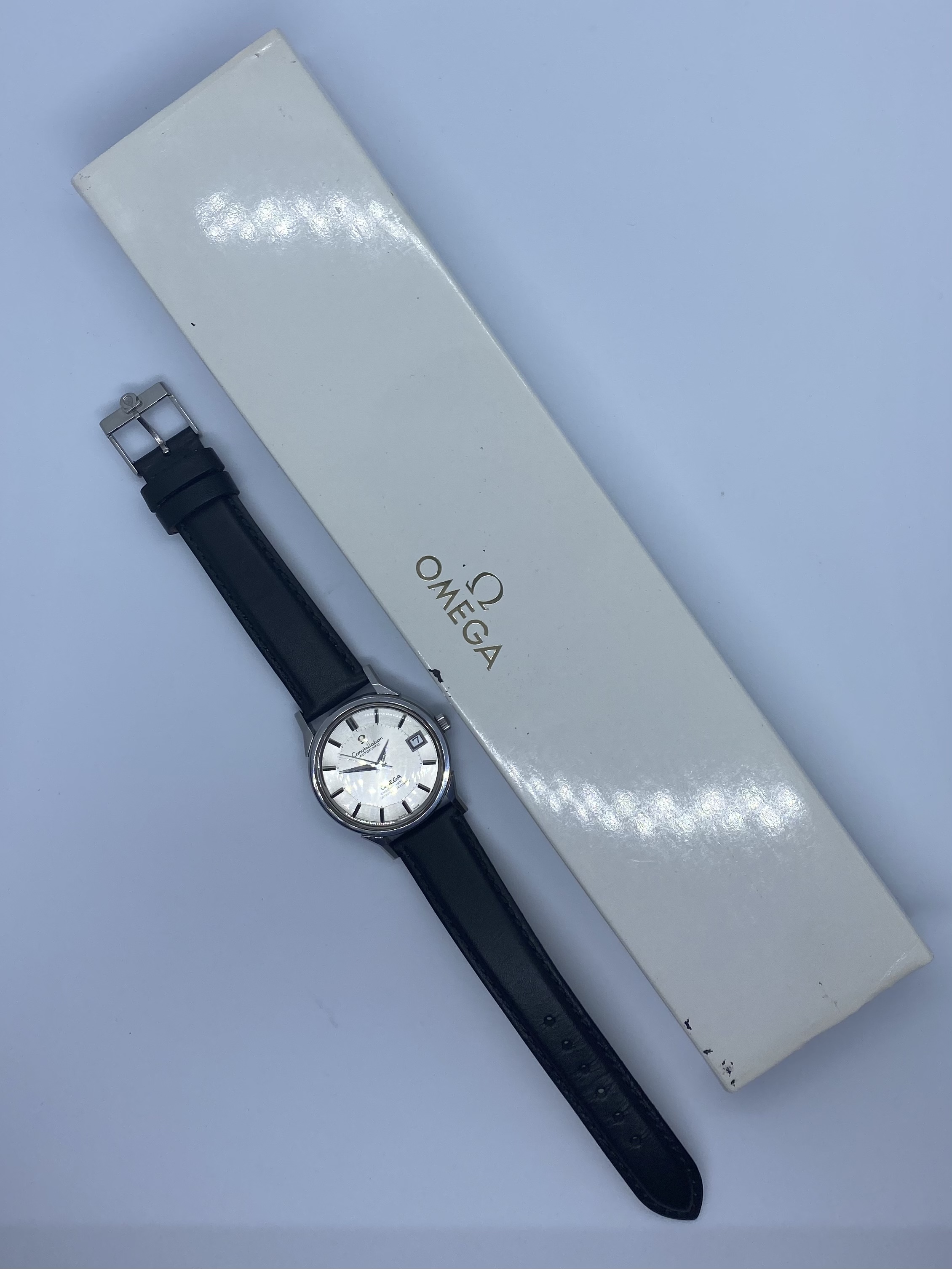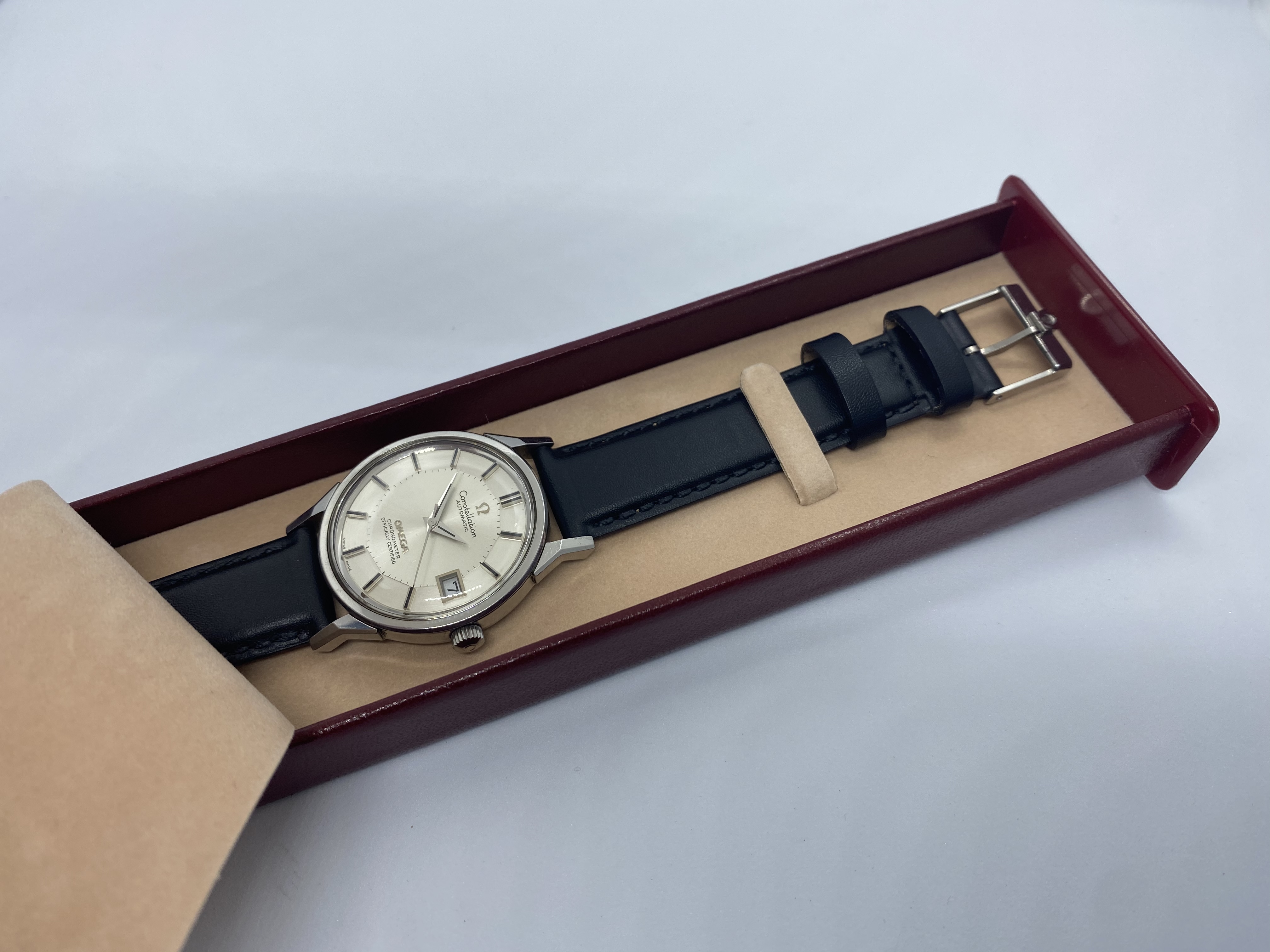 Extras: Your choice of brown shark skin or black calf leather strap, correct Omega clasp, Omega box (not model-specific) with outer cardboard box