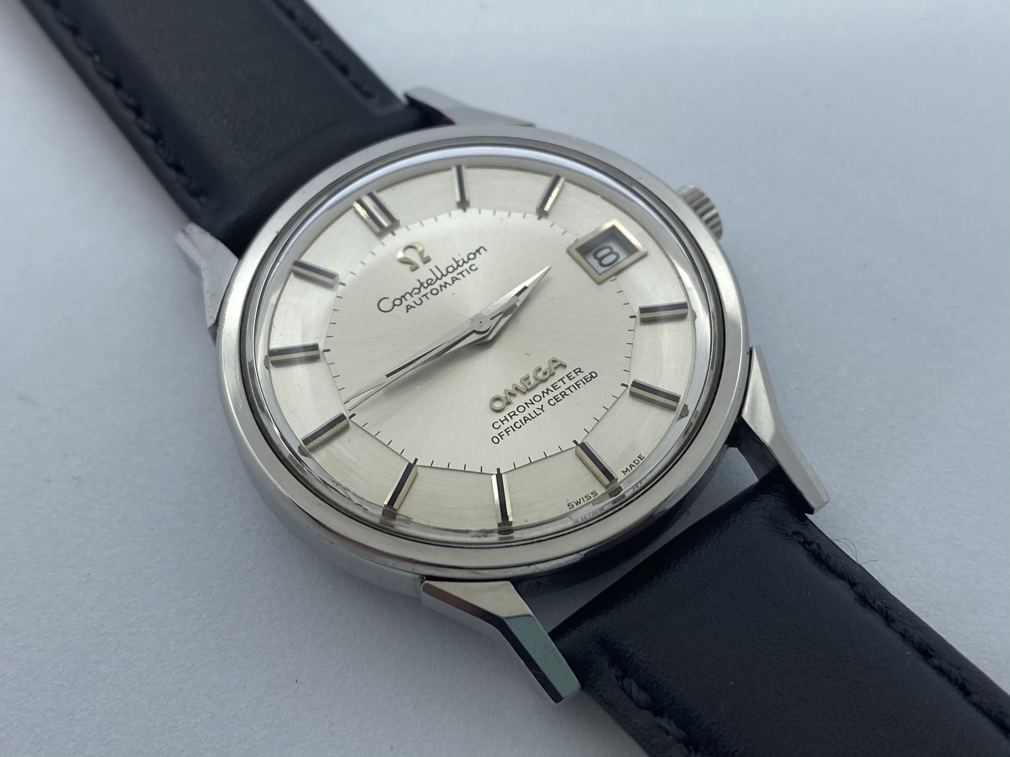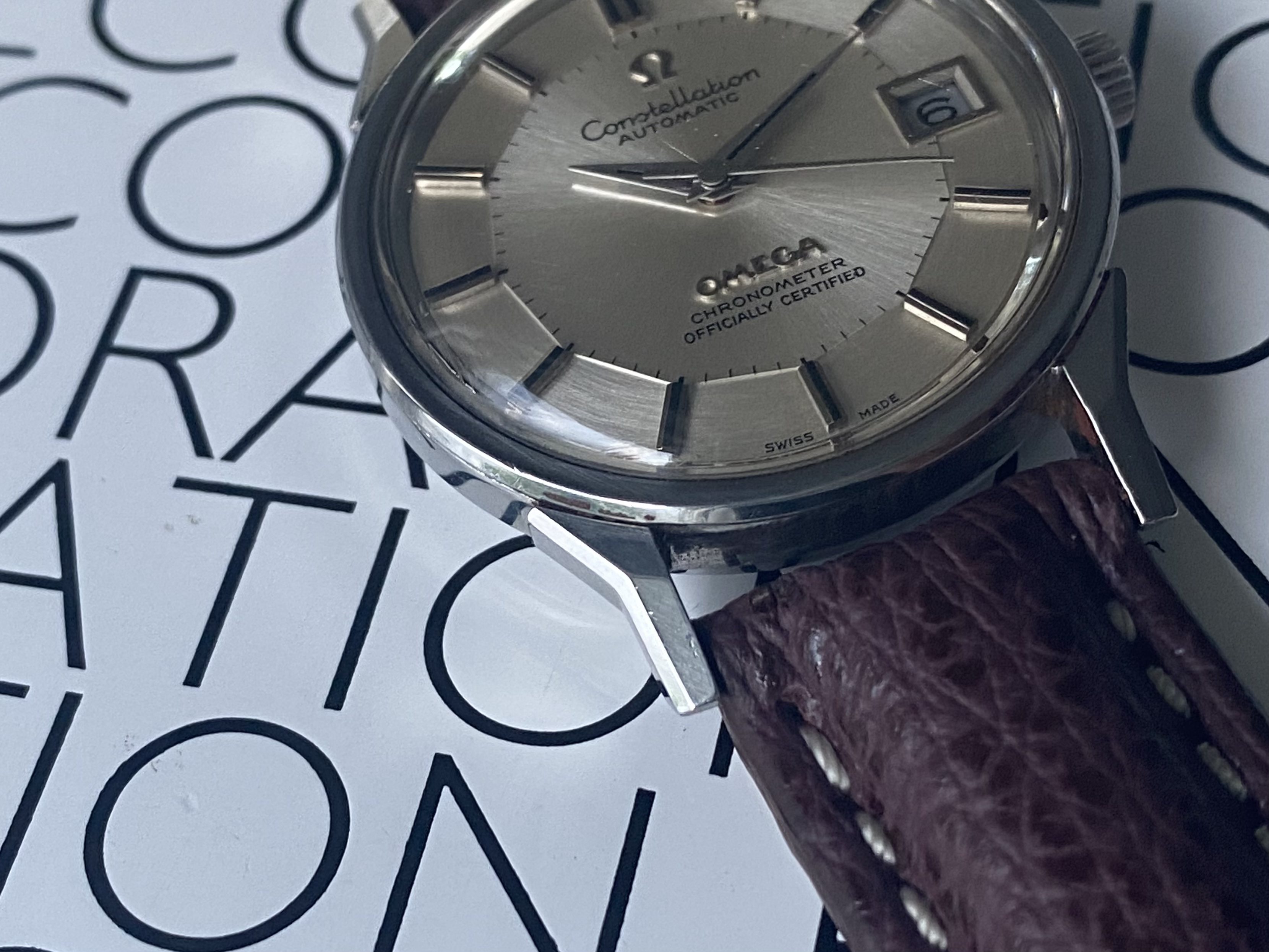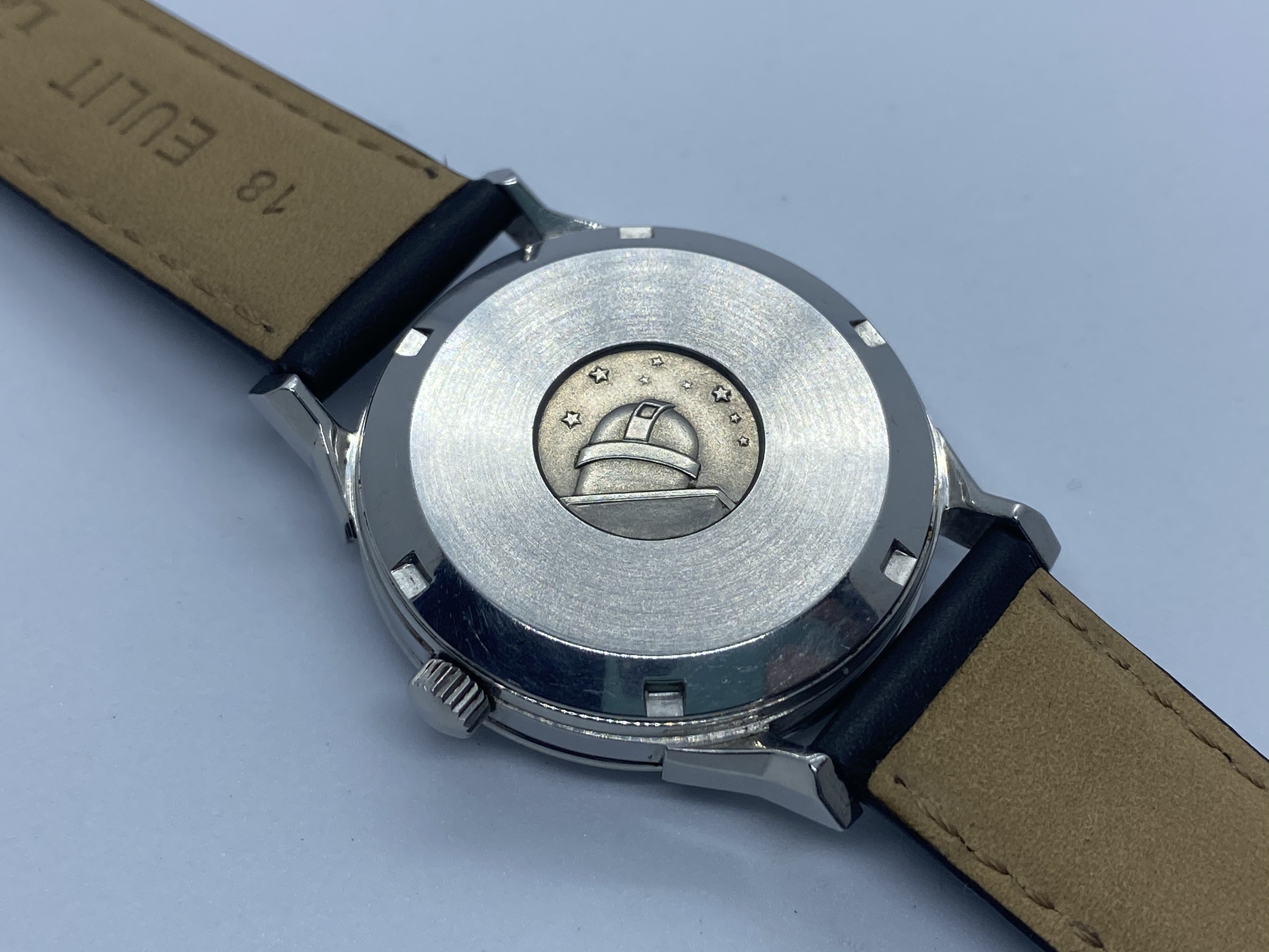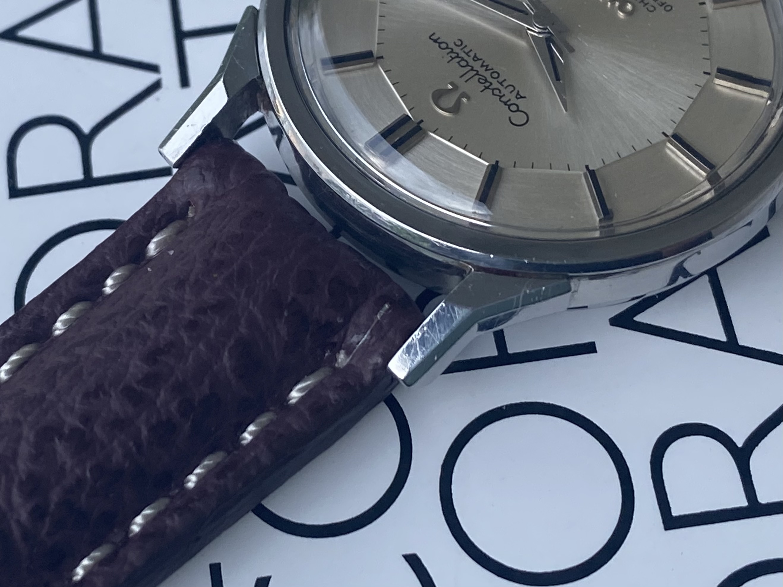Case: Original 34mm stainless steel case in good, sharp condition. Very light scratches on the lugs, nothing deep or significant. I’m not one for polishing, if you like they could be polished away easily, though. Case back with the original brushing, constellation medallion is sharp and fully intact.