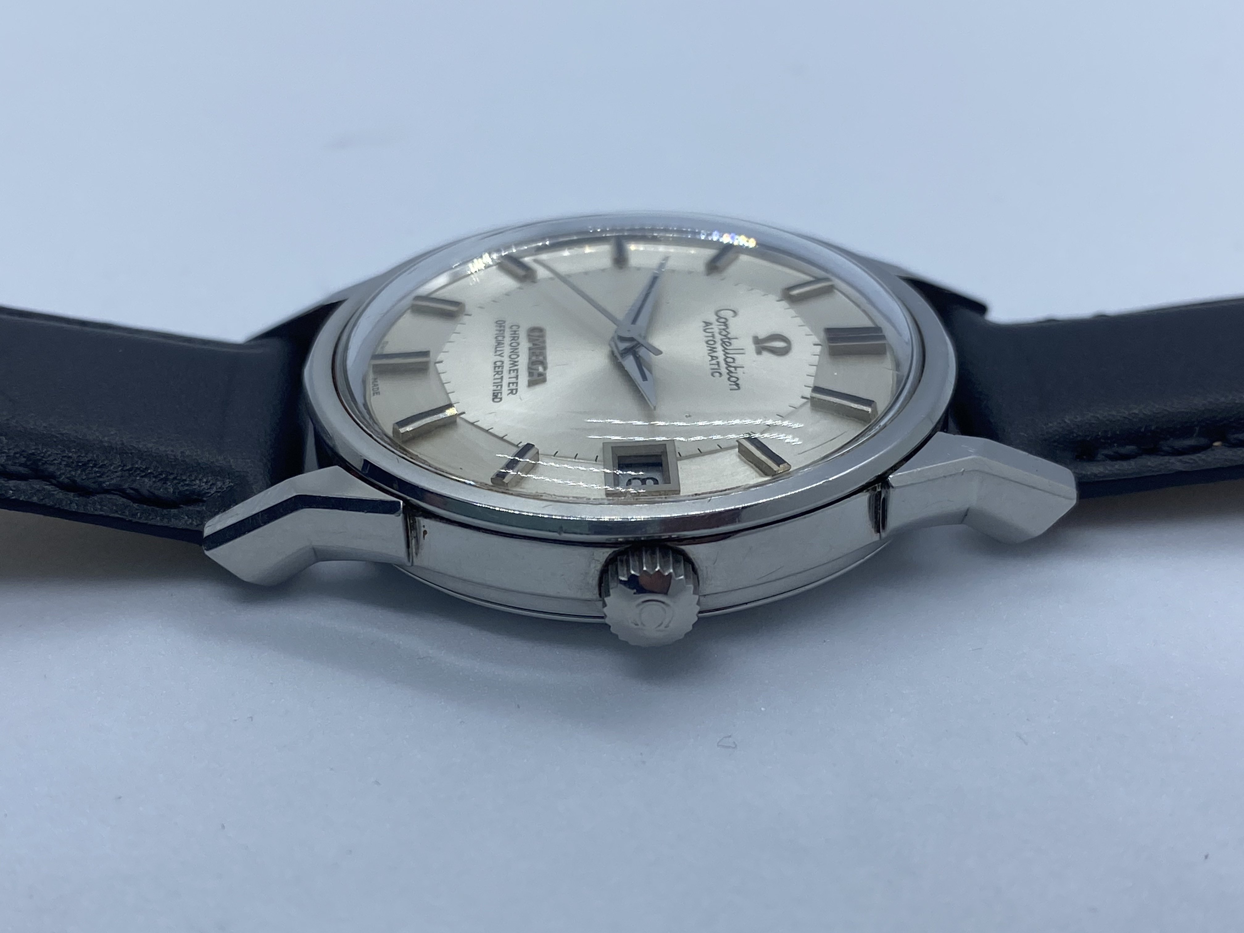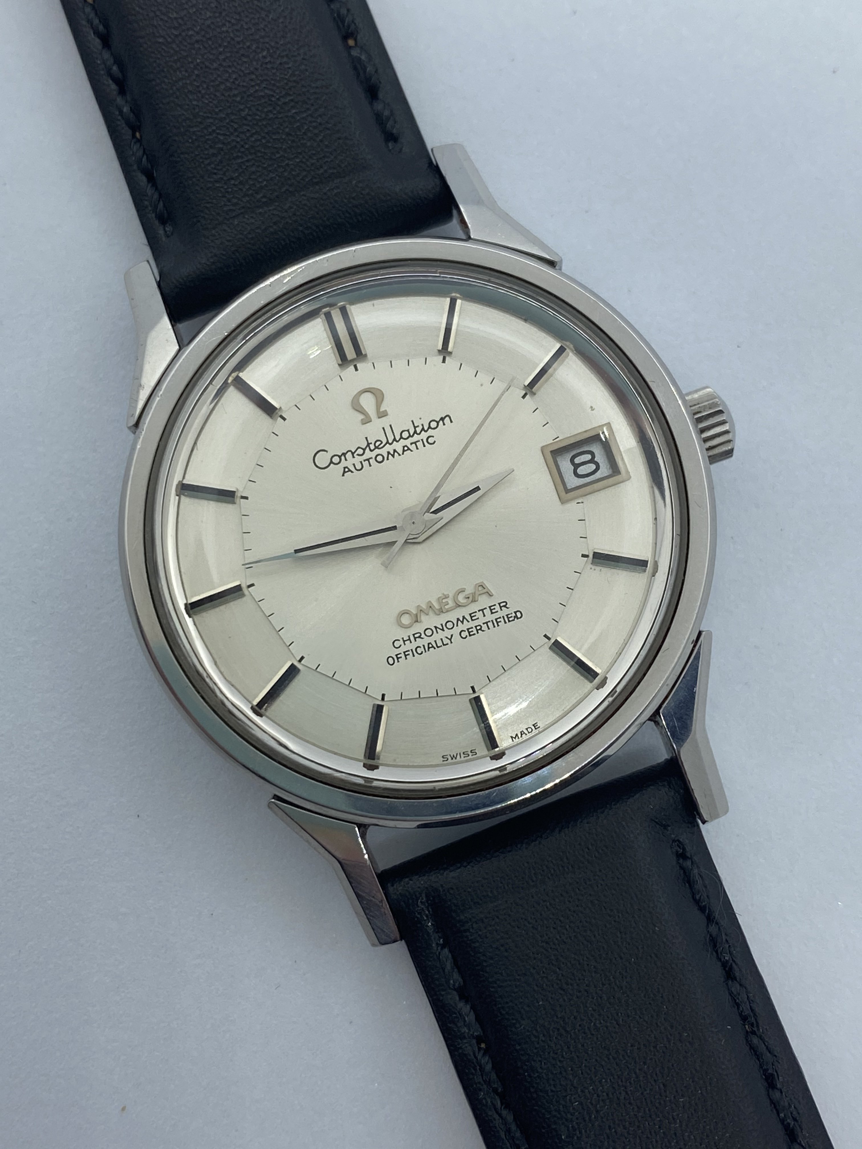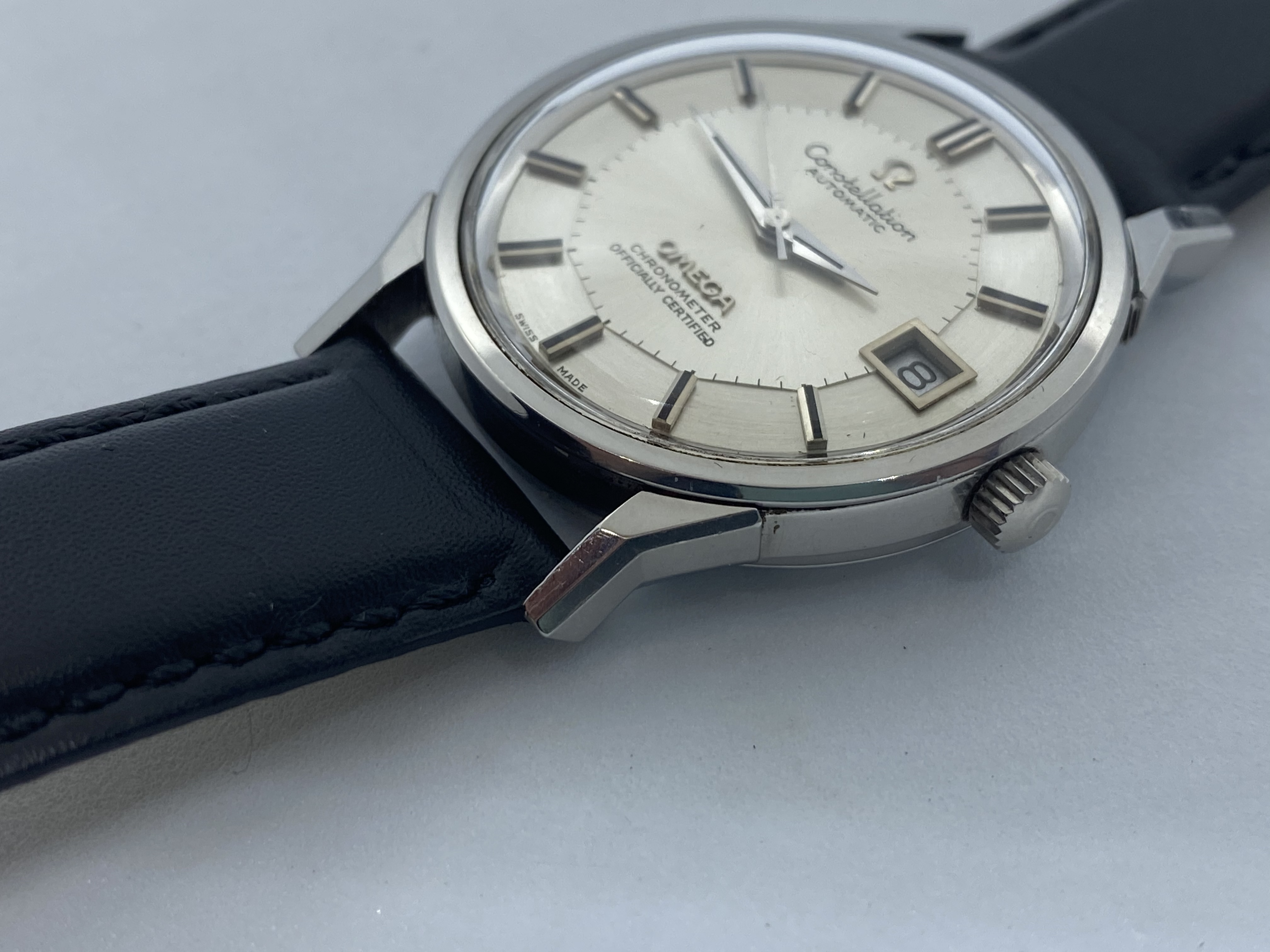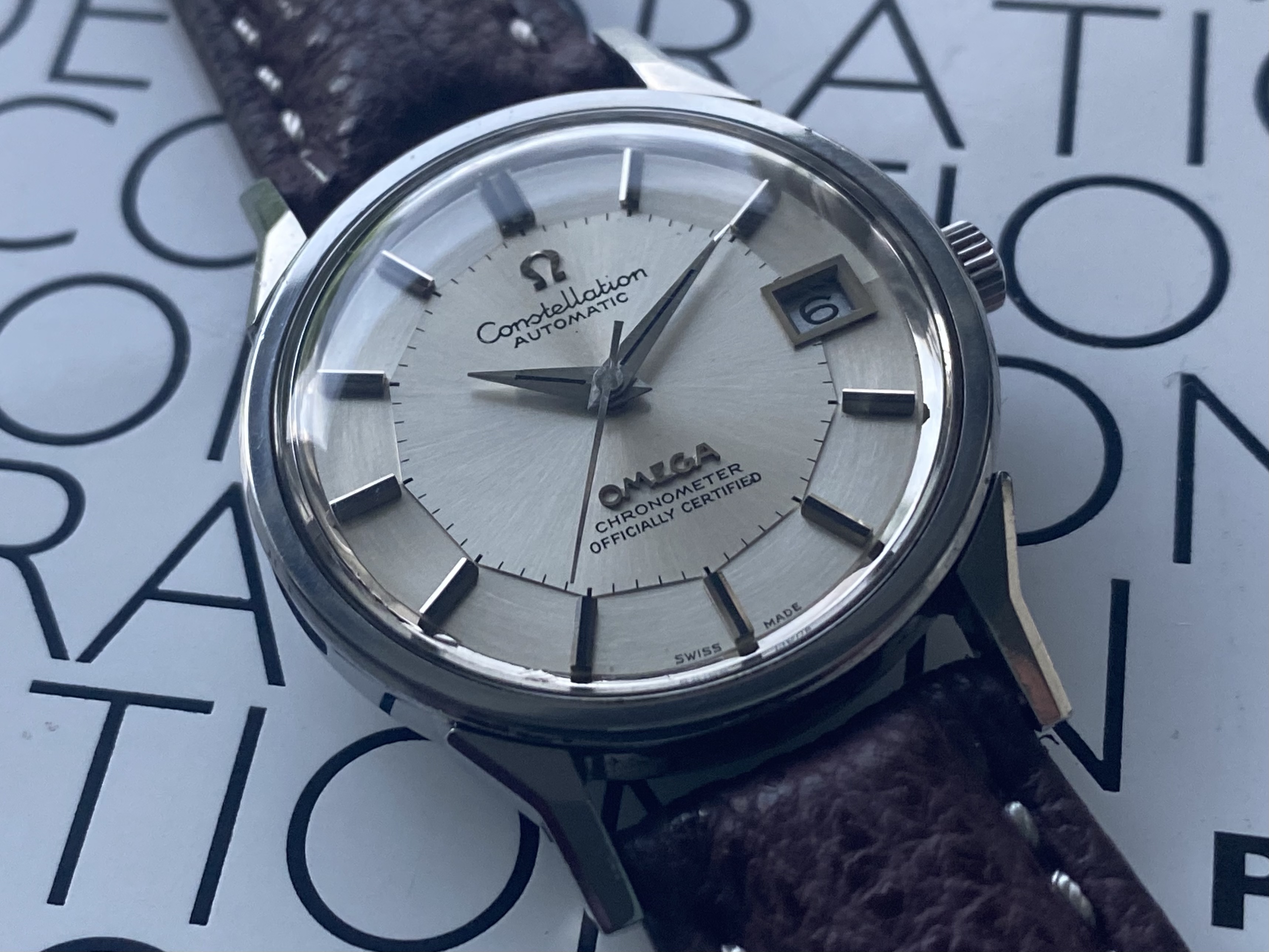 Case: Original 34mm stainless steel case in good, sharp condition. Very light scratches on the lugs, nothing deep or significant. I’m not one for polishing, if you like they could be polished away easily, though. Case back with the original brushing, constellation medallion is sharp and fully intact.