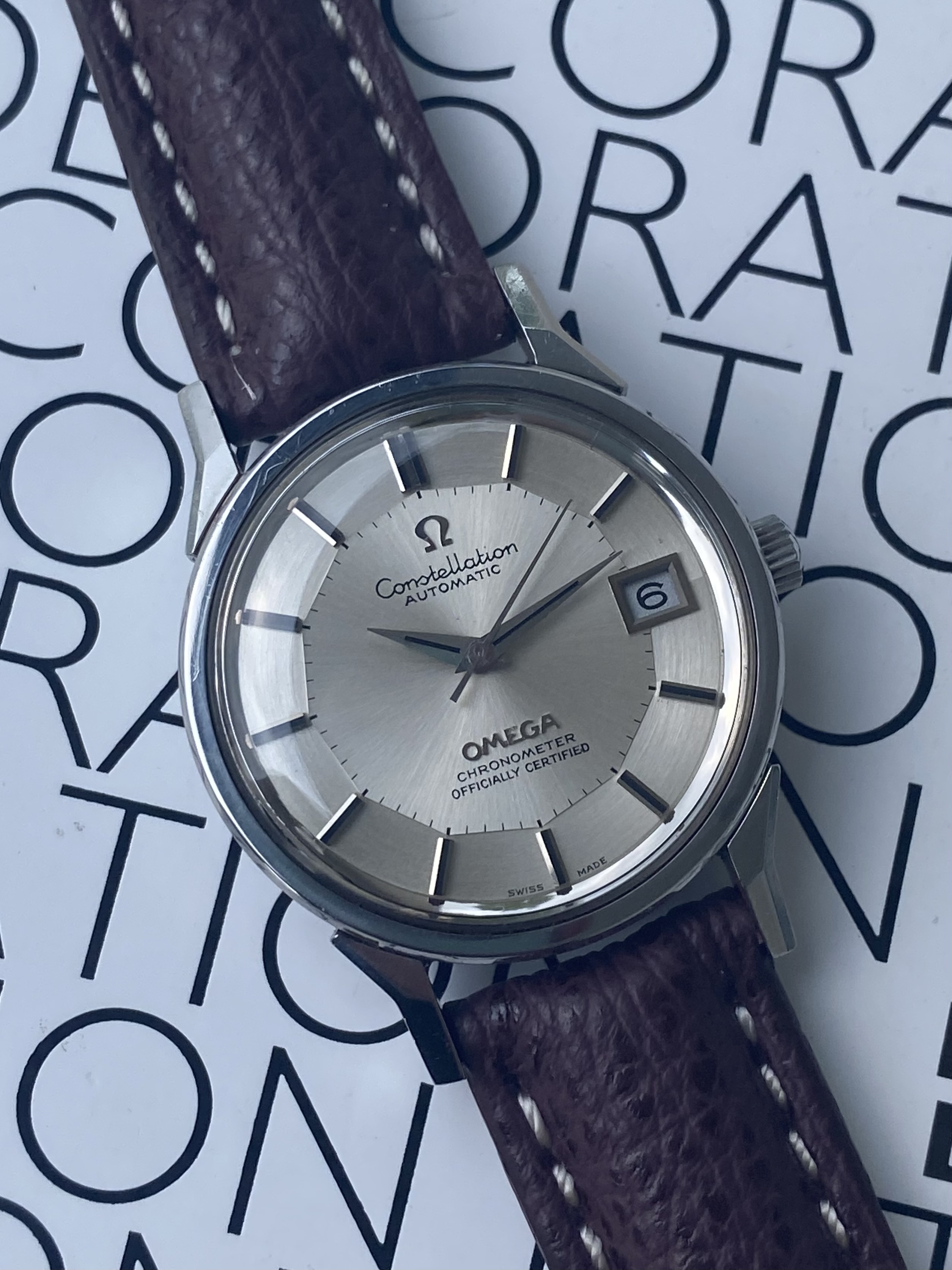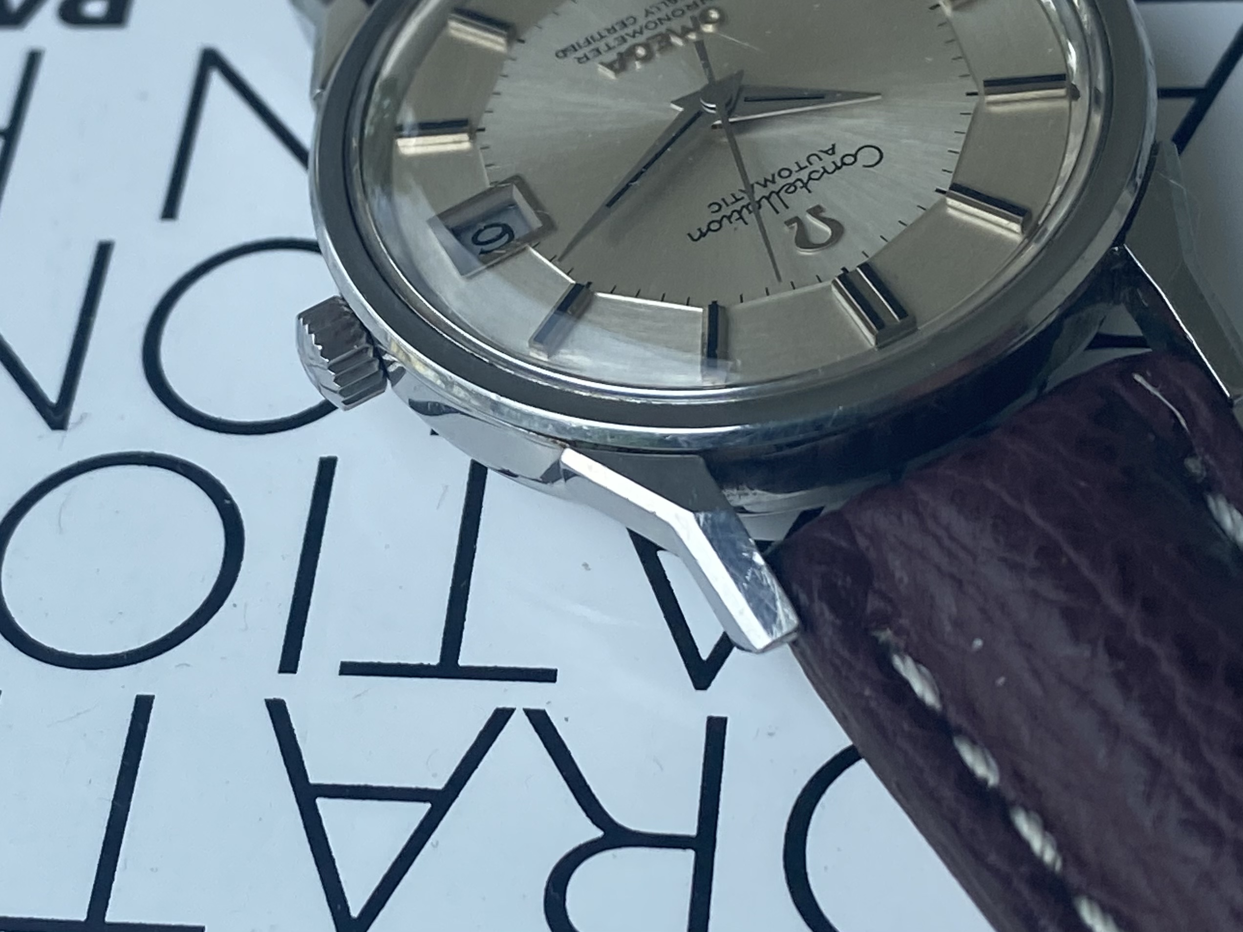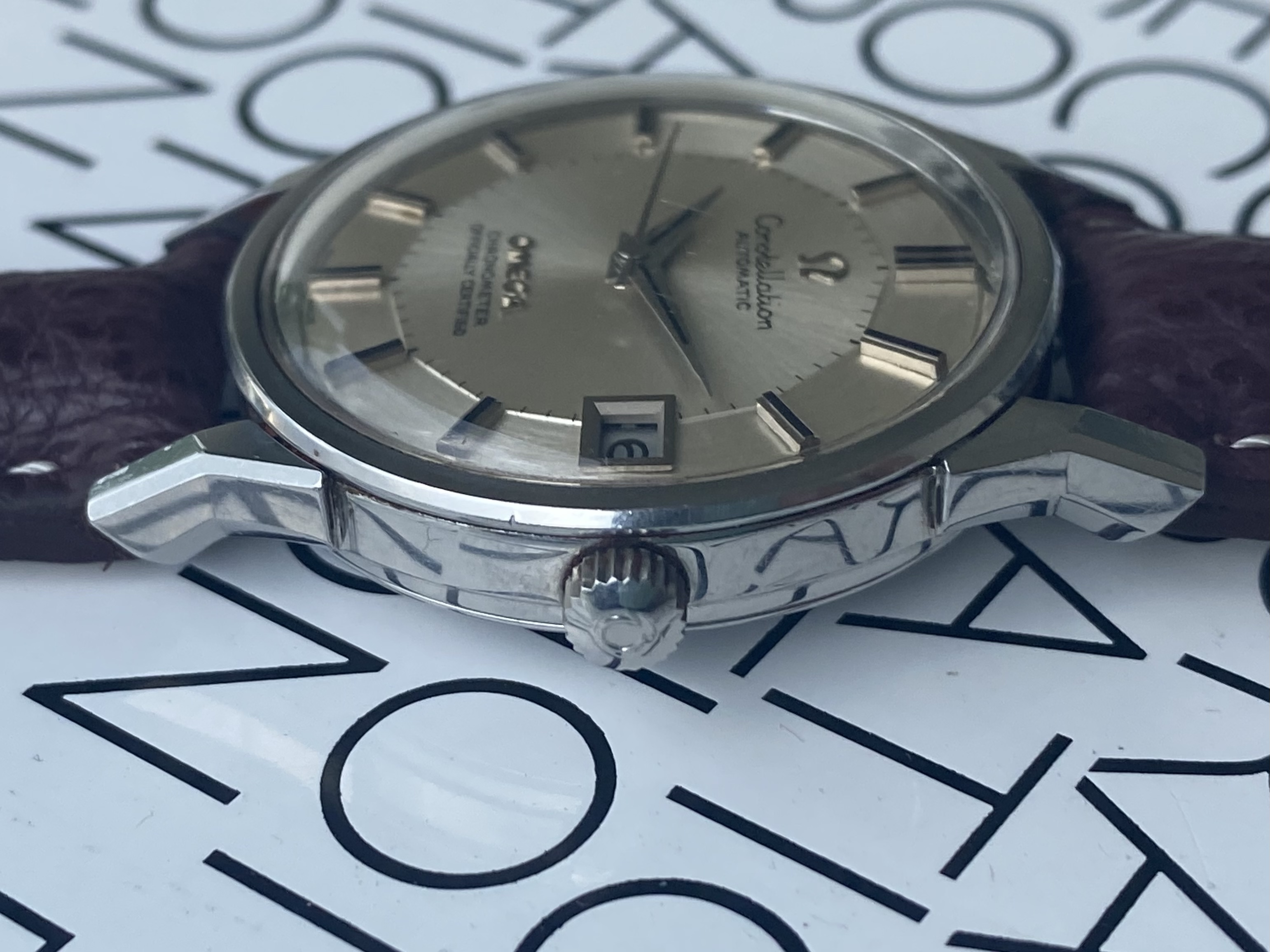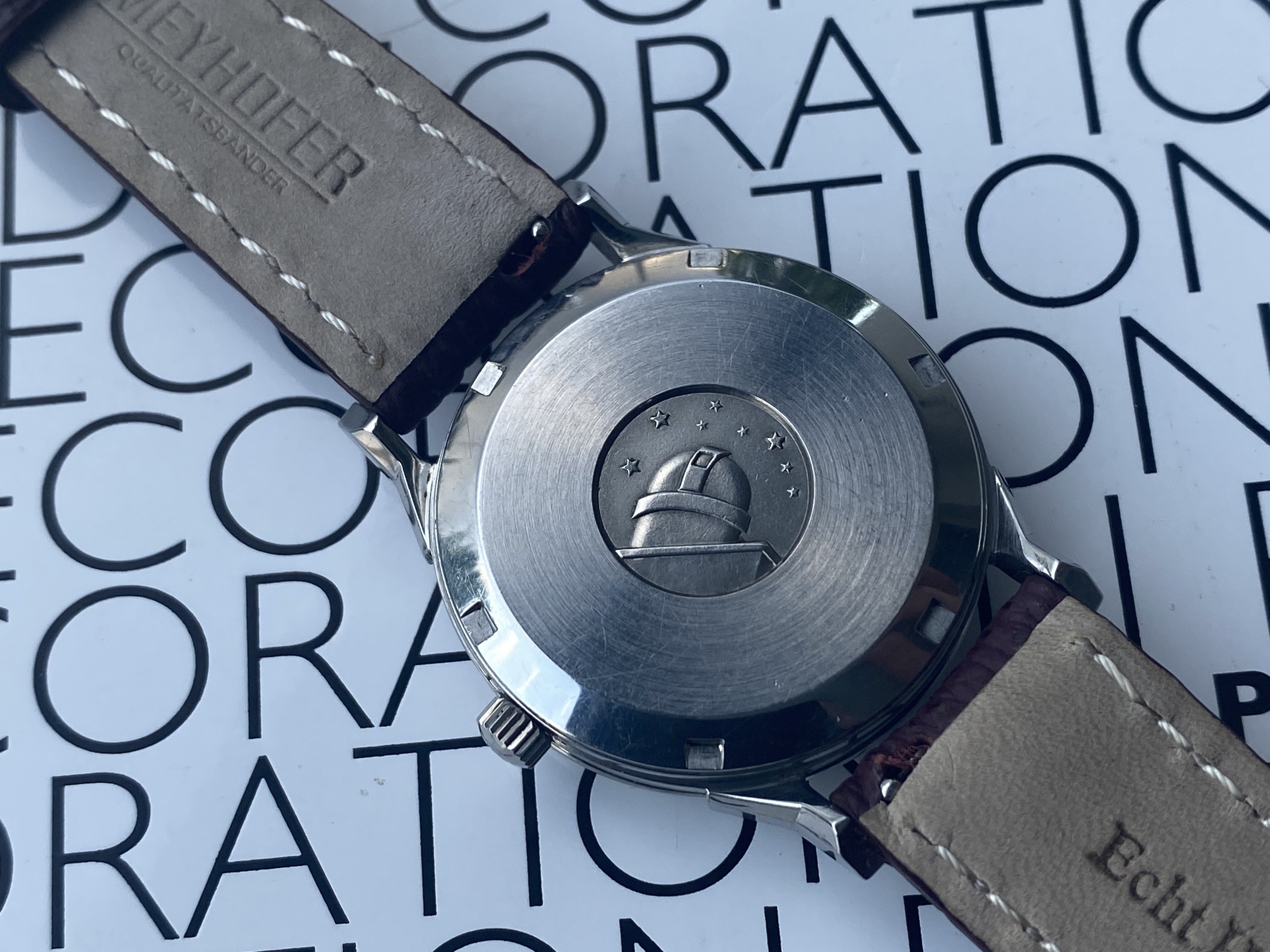 Case: Original 34mm stainless steel case in good, sharp condition. Very light scratches on the lugs, nothing deep or significant. I’m not one for polishing, if you like they could be polished away easily, though. Case back with the original brushing, constellation medallion is sharp and fully intact.