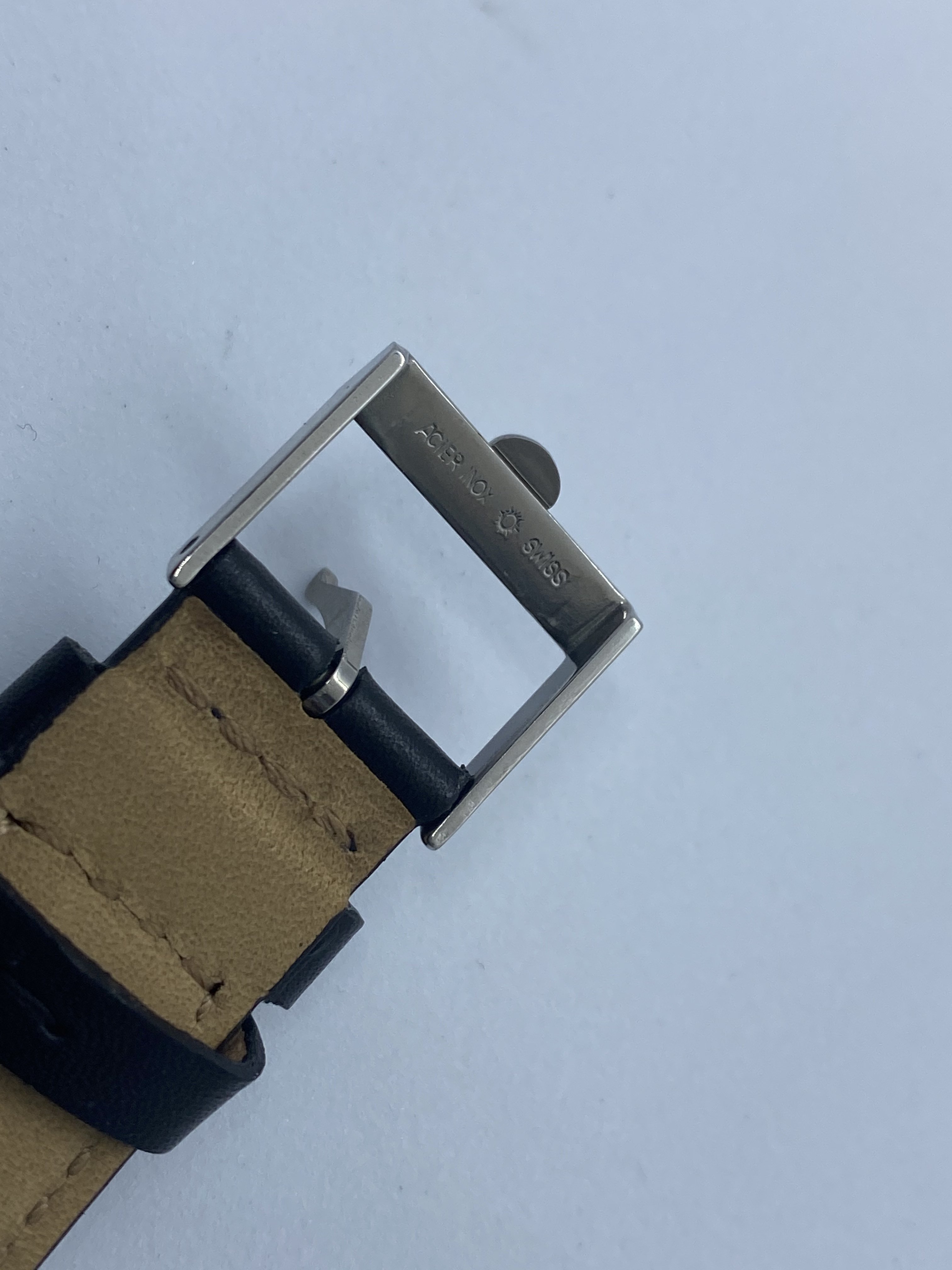 Strap: Both the brown shark skin and the black calf leather strap are brand new, your choice. The Omega buckle will be included either way.