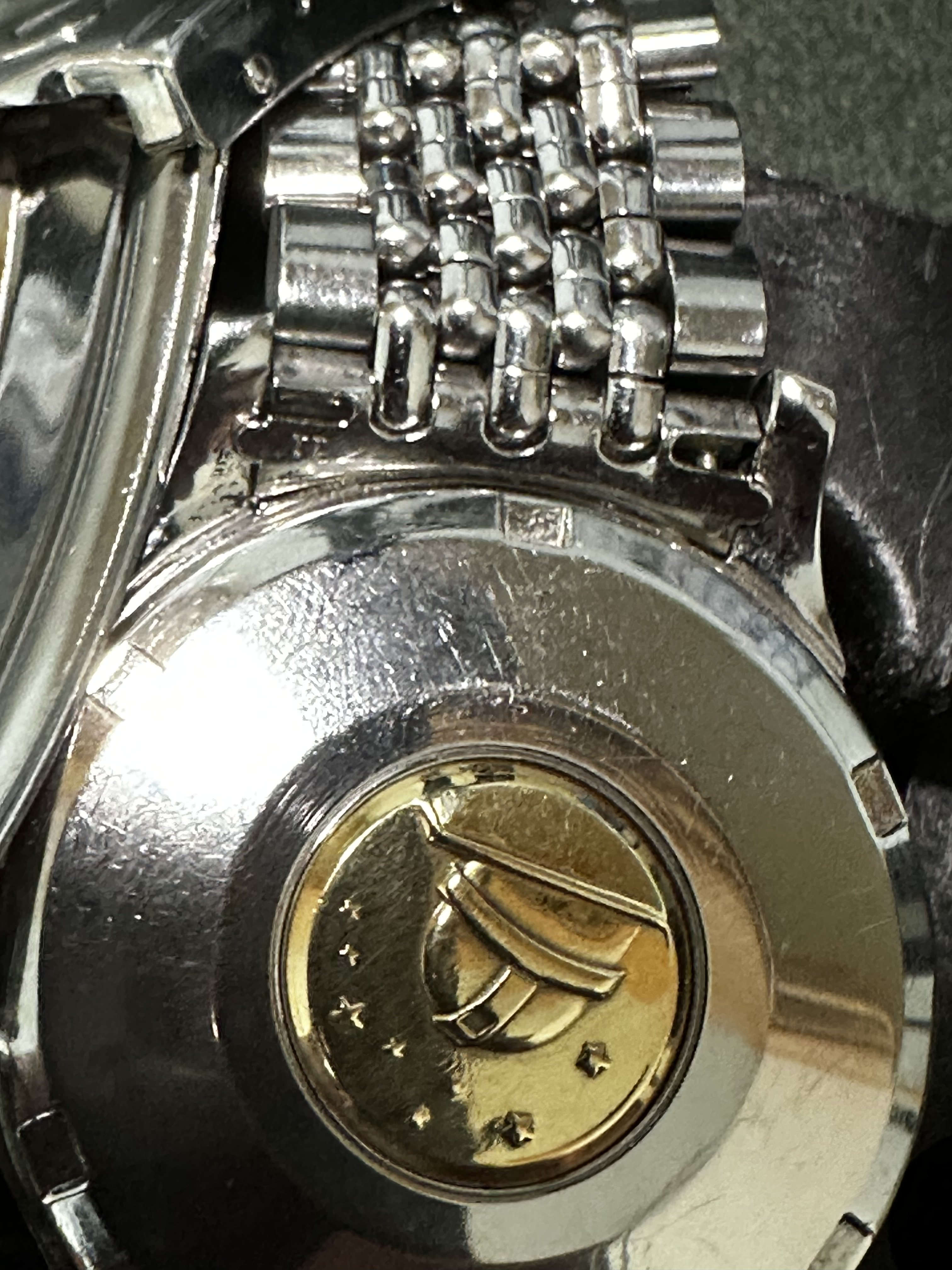 The caseback has the gold observatory on it. Its condition is good. Photos show it has some scratches on the back and on the back of the lugs Which was caused by my clumsy attempts to remove the case back. It was a desk diver in my years of ownership. I’ve posted about this watch in “what are you wearing today?” thread. And if you search my post history, you can find other examples of a discussion about it on the vintage watch thread.