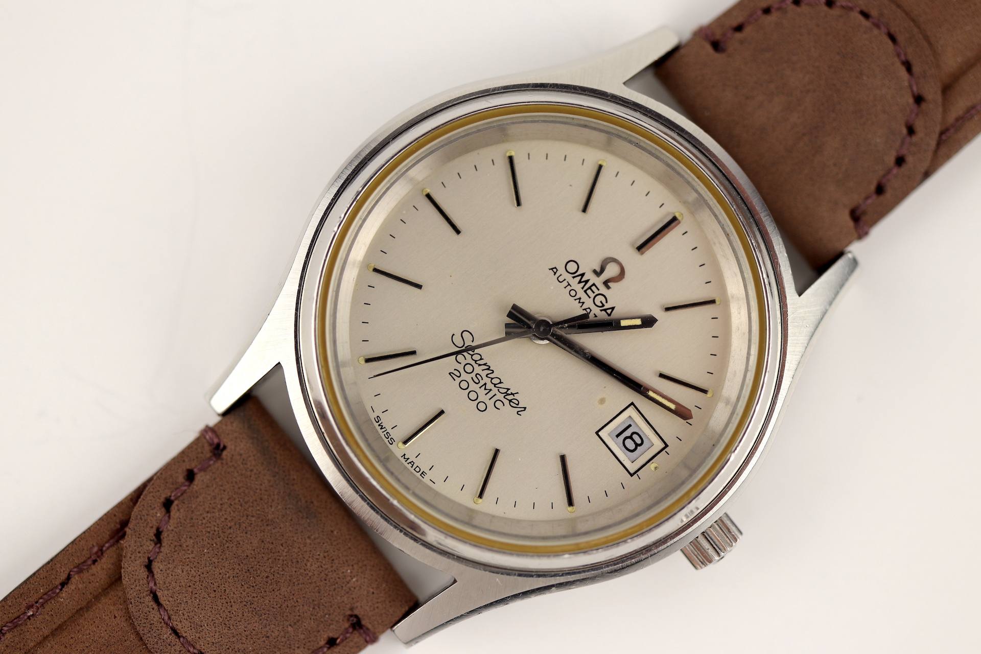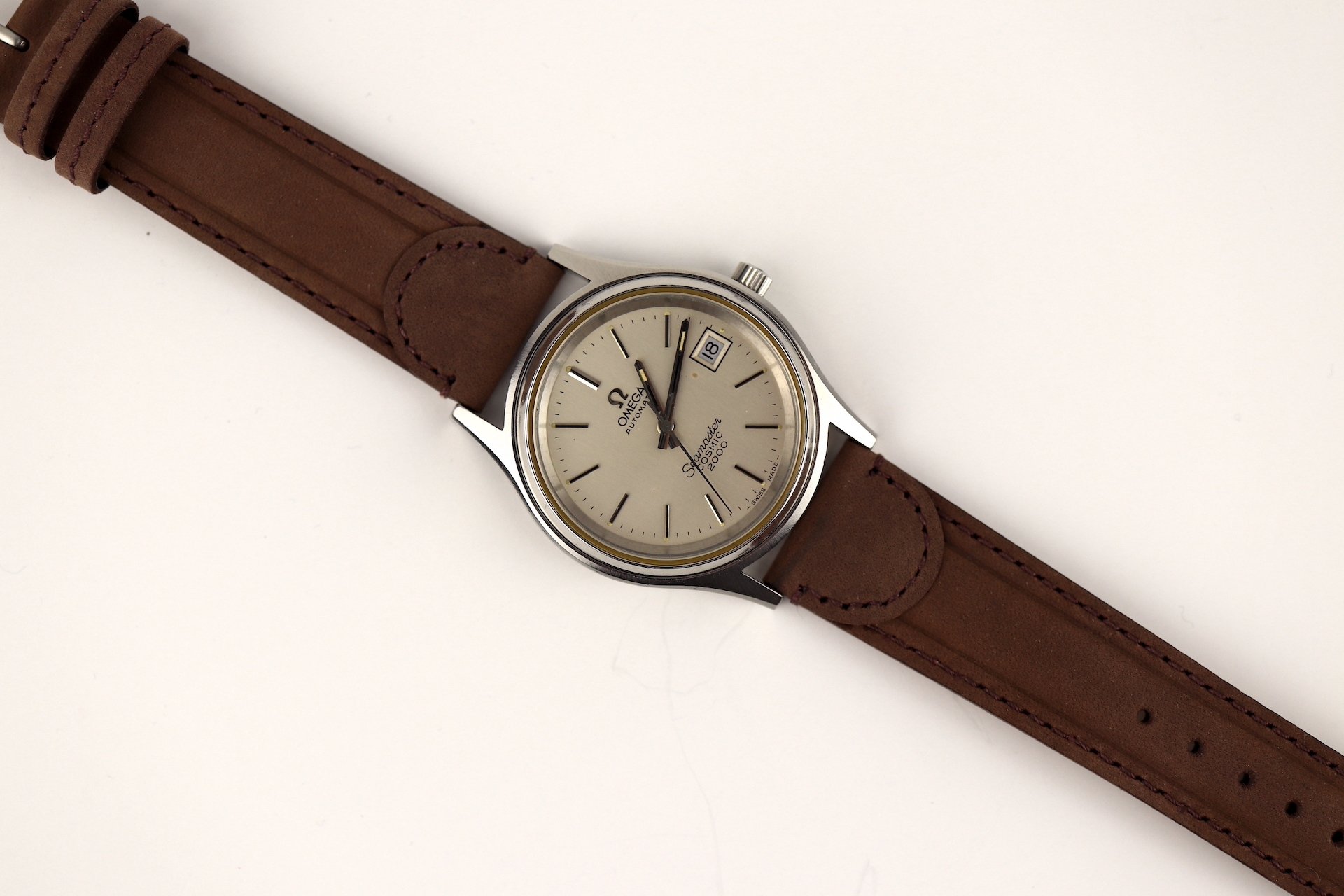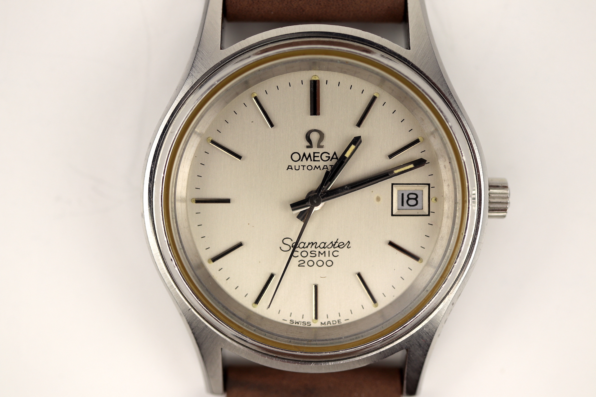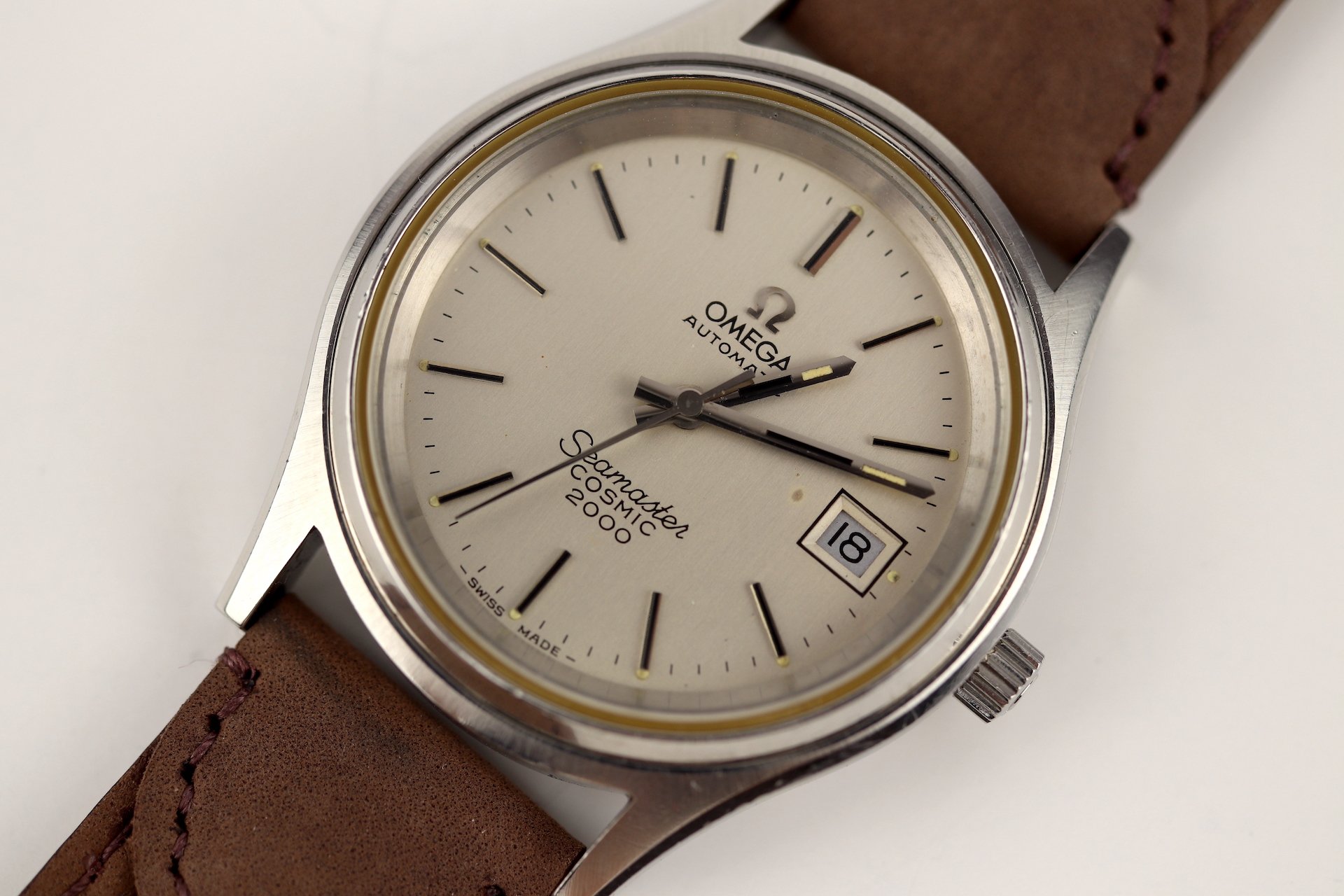 ·For sale, I have an Omega Seamaster Cosmic 2000 Ref: 166.128 It has the Caliber 1012 which is an automatic movement. From the early '70s, this is a very nice size watch for everyday wear. Case measure 38mm without the crown. The watch just came back from service and is ready to be worn. I can't open this type of case so unfortunately, I can not provide any movement pictures. The watch will come with a new tan leather strap. Bracelet is also available for an additional cost.
