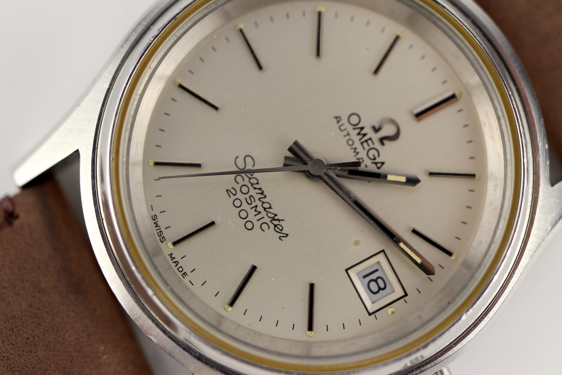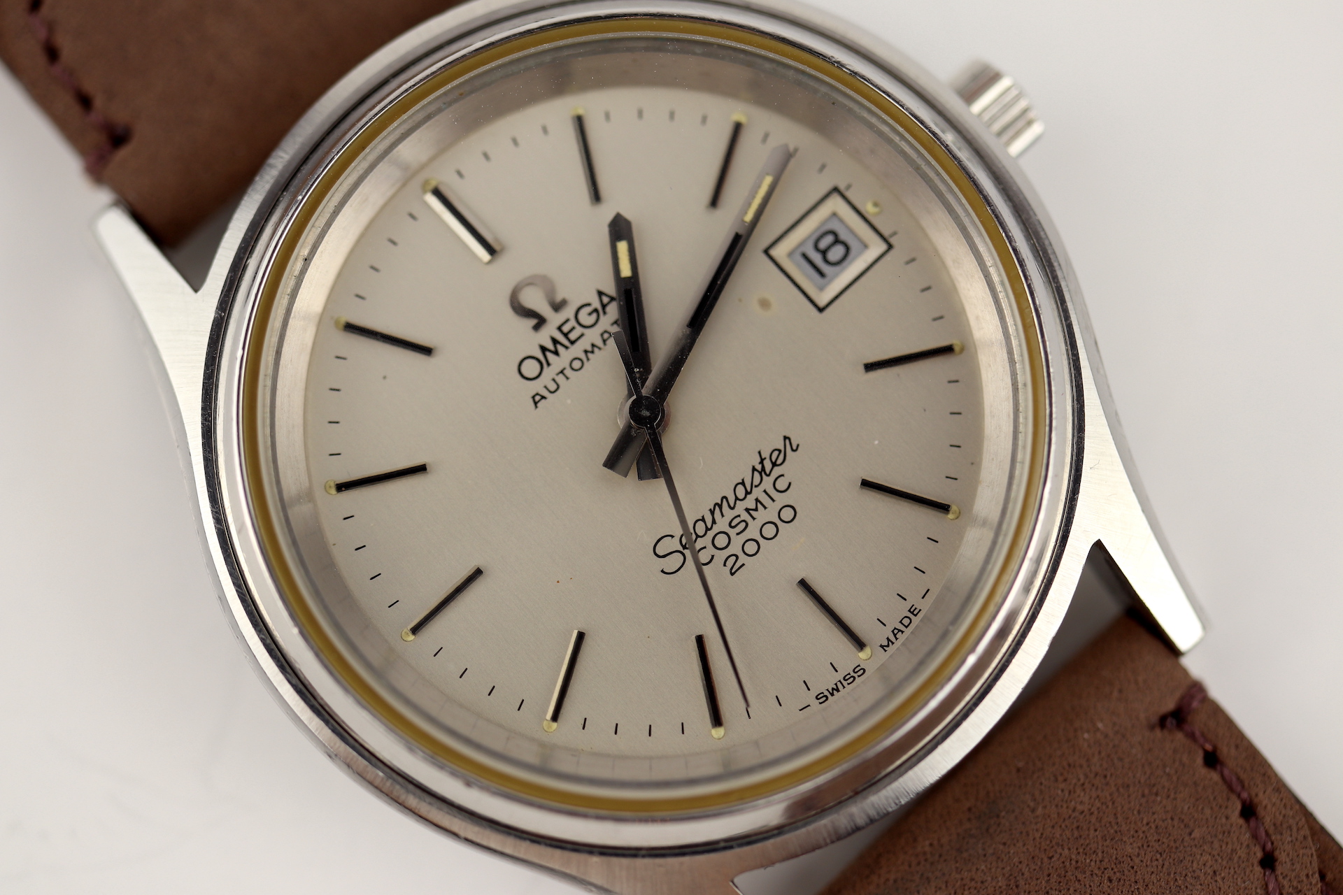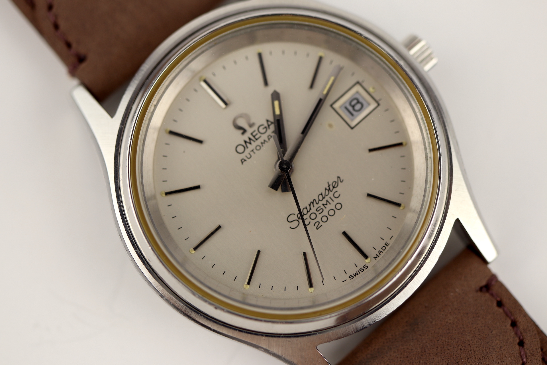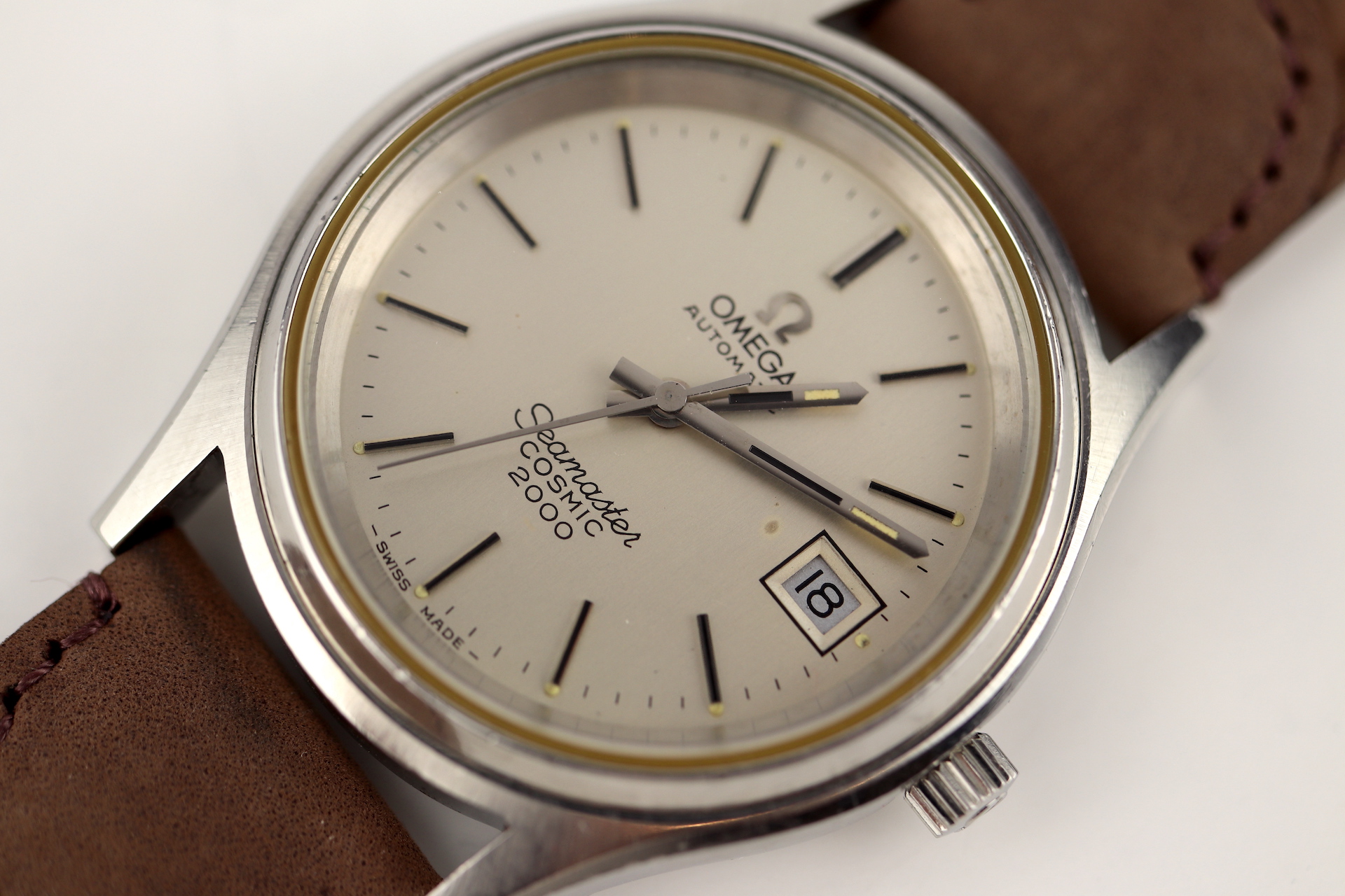 ·For sale, I have an Omega Seamaster Cosmic 2000 Ref: 166.128 It has the Caliber 1012 which is an automatic movement. From the early '70s, this is a very nice size watch for everyday wear. Case measure 38mm without the crown. The watch just came back from service and is ready to be worn. I can't open this type of case so unfortunately, I can not provide any movement pictures. The watch will come with a new tan leather strap. Bracelet is also available for an additional cost.