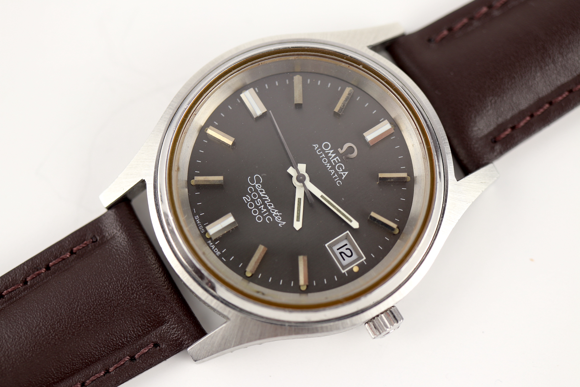 ·For sale, I have an Omega Seamaster Cosmic 2000 Ref: 166.128 It has the Caliber 1012 which is an automatic movement. From the early '70s, this is a very nice size watch for everyday wear. Case measure 38mm without the crown. The watch just came back from service and is ready to be worn. I can't open this type of case so unfortunately, I can not provide any movement pictures. The watch will come with a new leather strap. Bracelet is also available for an additional cost.