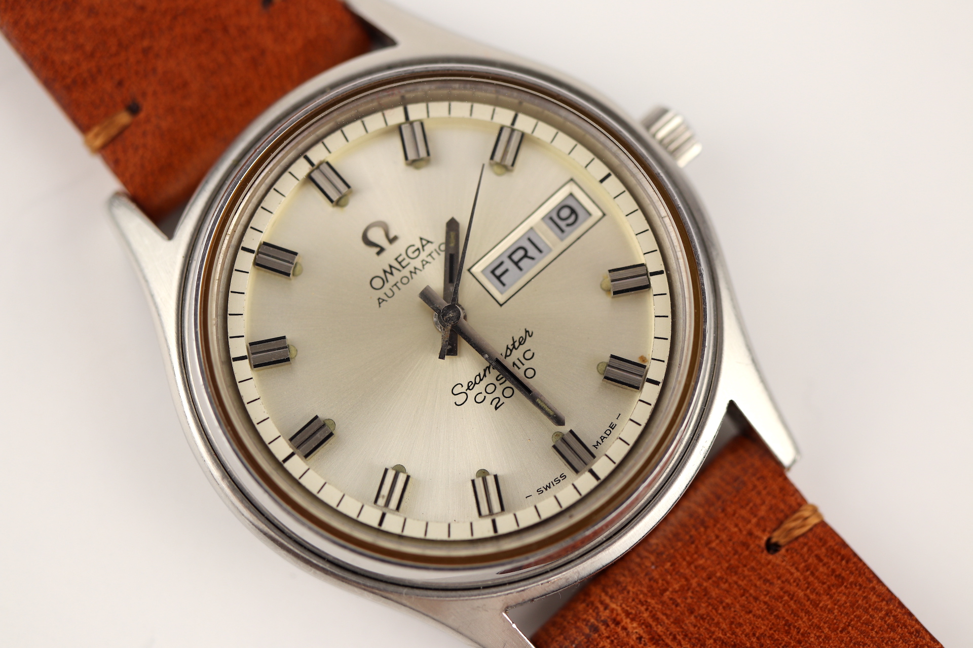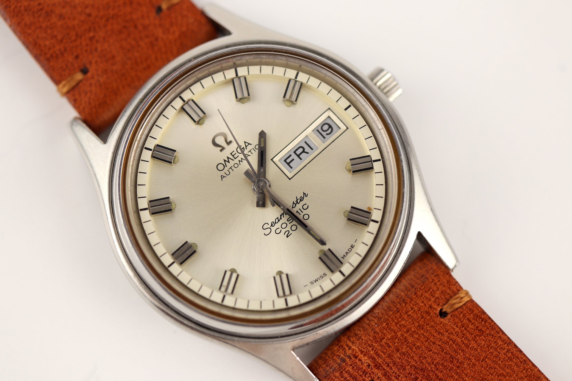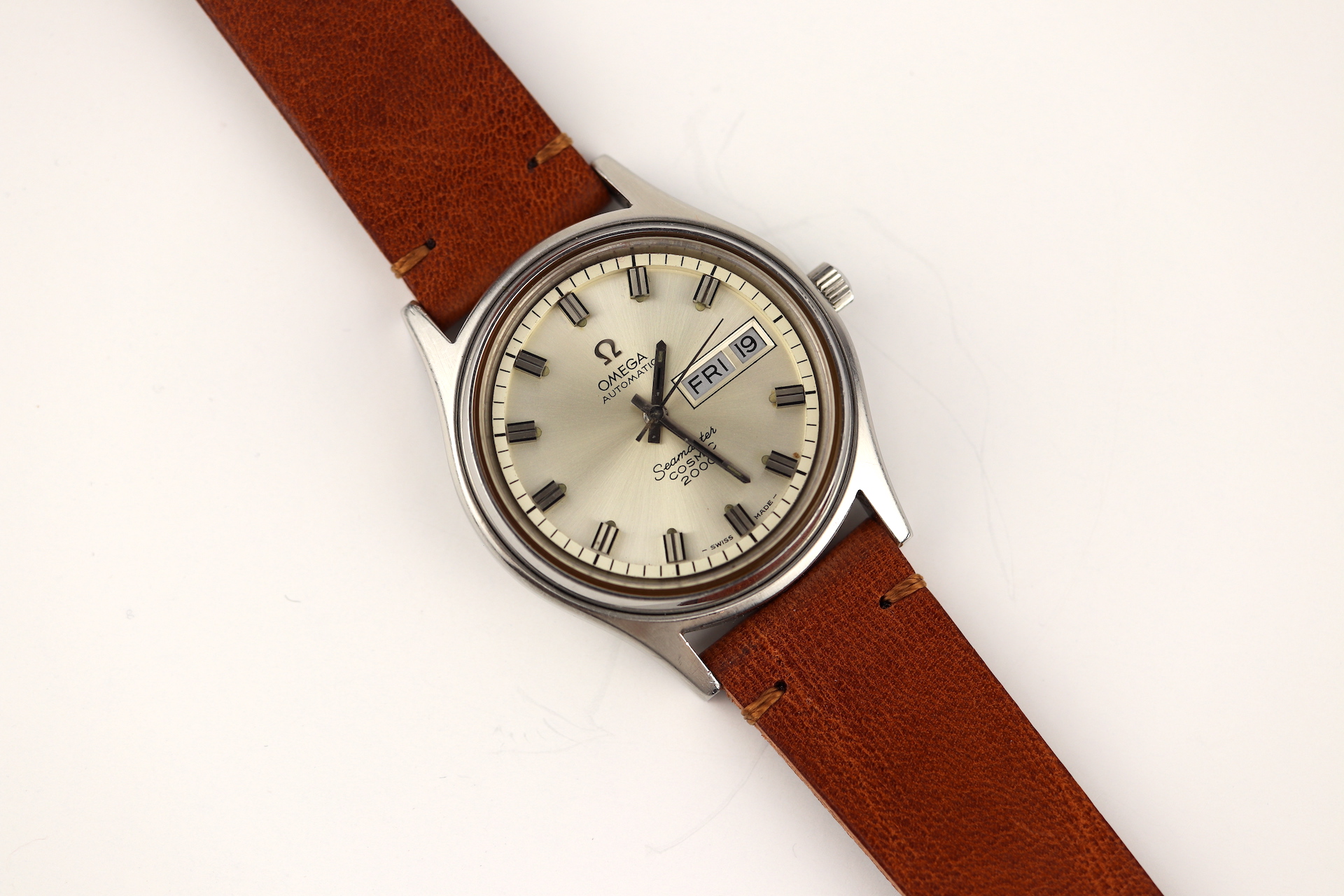 ·For sale, I have an Omega Seamaster Cosmic 2000 Ref: 166.129 It has the Caliber 1022 which is an automatic movement. From the early '70s, this is a very nice size watch for everyday wear. Case measure 38mm without the crown. The watch just came back from service and is ready to be worn. I can't open this type of case so unfortunately, I can not provide any movement pictures. The watch will come with a new tan leather strap. Bracelet is also available for an additional cost.