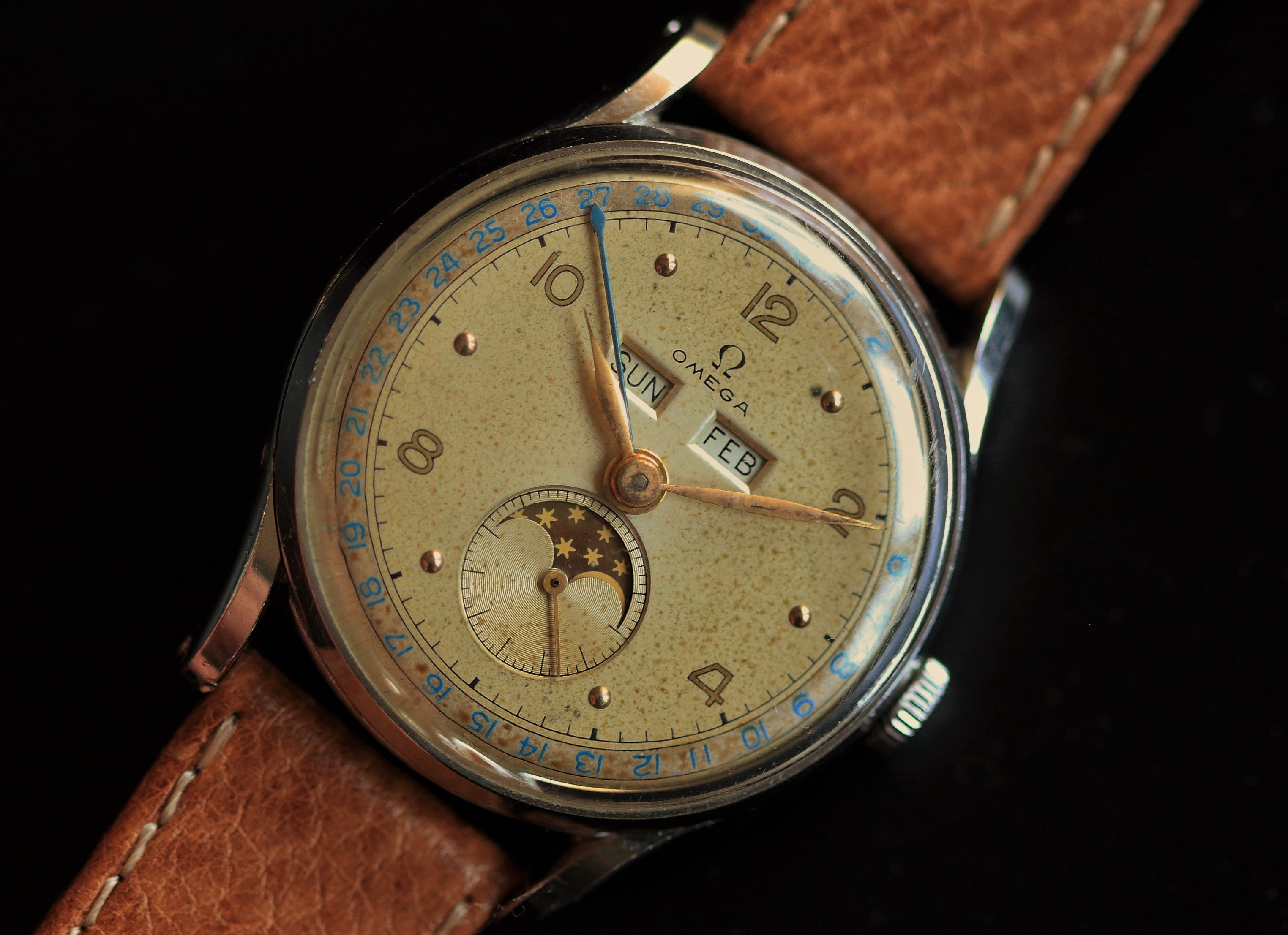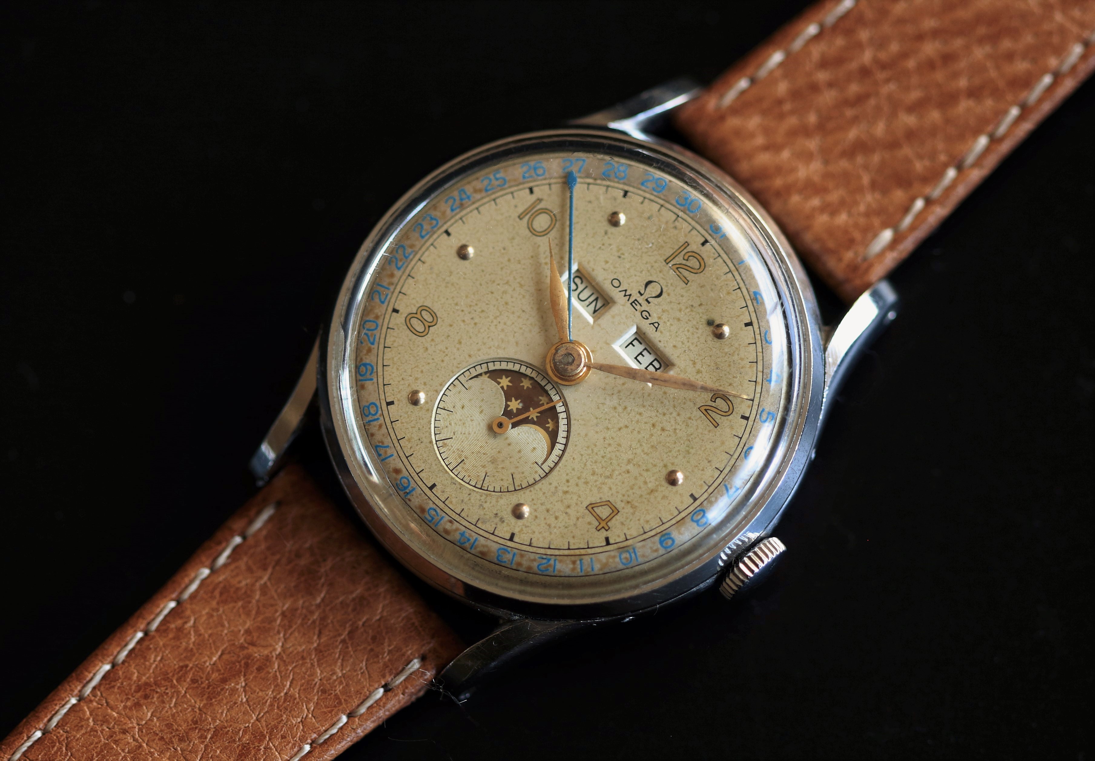 ·Today I’m selling this beautiful Omega Cosmic triple date moon phase CK2471 from the 1940's. These are amongst my favourite Omegas to collect due to the many interesting dial variations to be found under the same reference numbers and the difficulty in finding nice original examples.