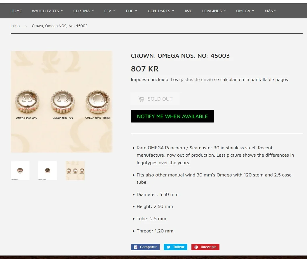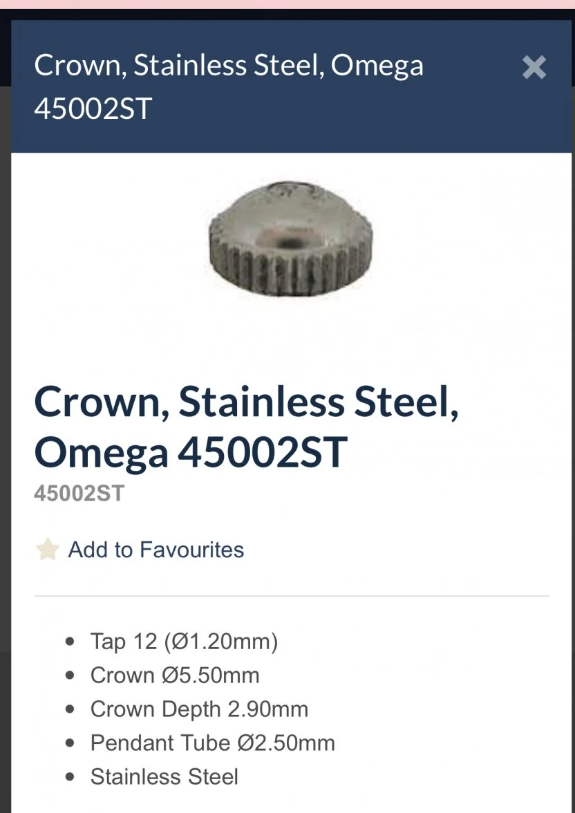 Posts 281 Likes 64 SerP ·Oct 9, 2024 Good evening. Please tell me if I am right in attributing the crown: I believe that this is a crown for Ranchero 2990-1. Dimensions: 5.5x2.9mm, thread for shaft 1.0mm (not 100% sure that this is M1, as I don't have a suitable shaft at hand).. Thank you..