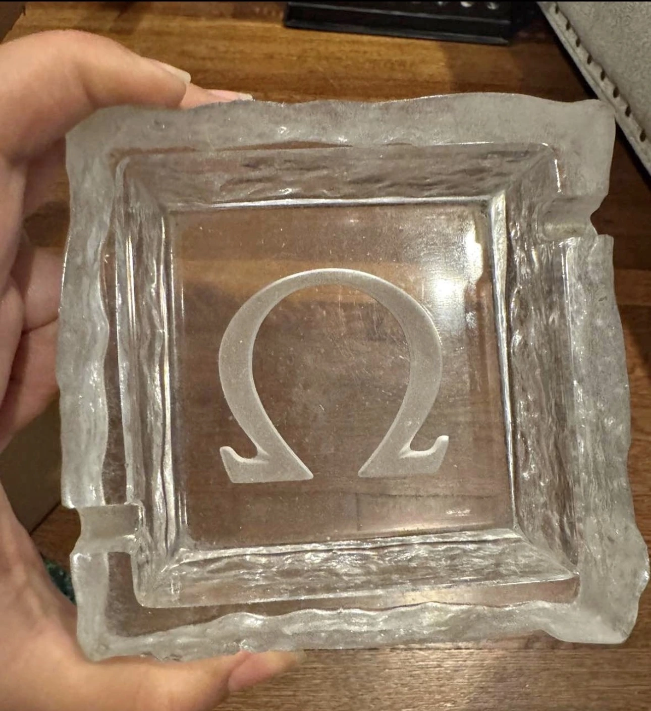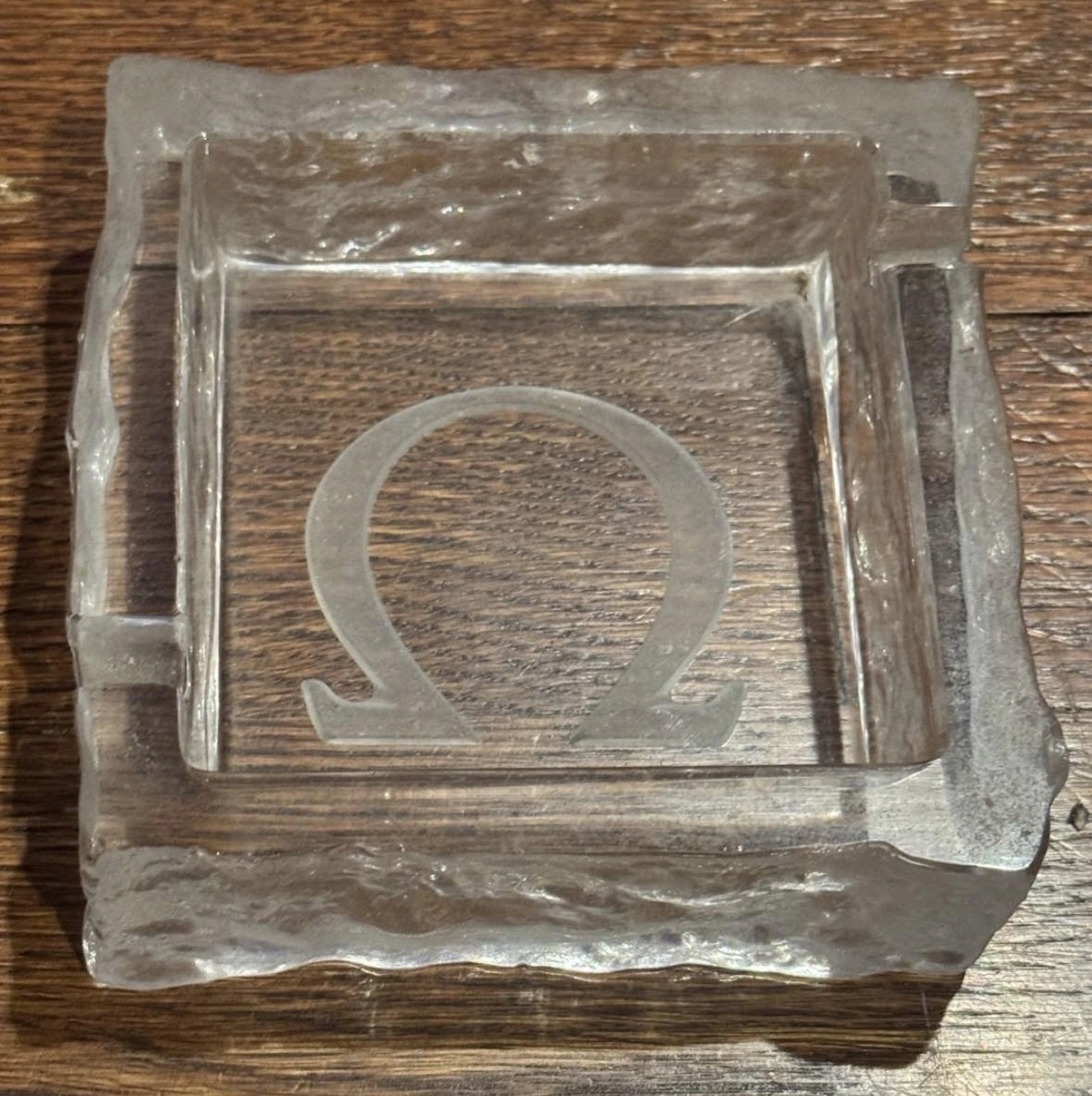 Posts 4,643 Likes 9,350 Bill Sohne ·Oct 21, 2025·Bill @ ΩF Hi Vintage Omega Crystal glass ash tray . Was used has wear …. And think it’s from the 1980s . Weights about 1 pound. Approx 4.25L x 4.25 w inches and 1.125 inches in height. Final sale . See photos of actual item . 350$ plus shipping Good Hunting Bill Sohne
