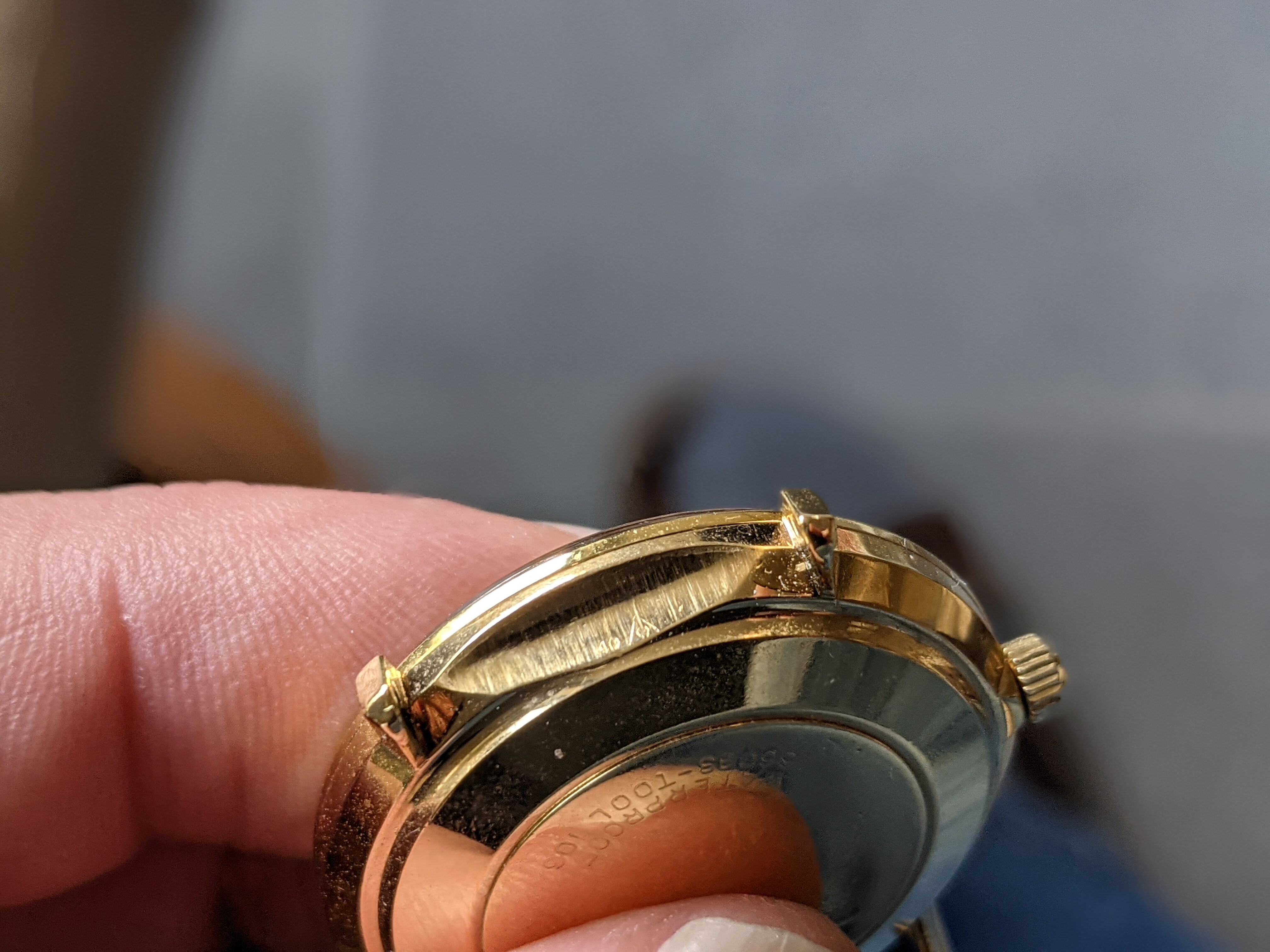 It's this De Ville De Ville 166.0033 from 1964. The owner is calling the watch gold plated, but the watches I can find online of this reference in gold are all solid gold. Any thoughts on this? (and more general thoughts on the watch) The gold caseback is what is confusing me at the moment.