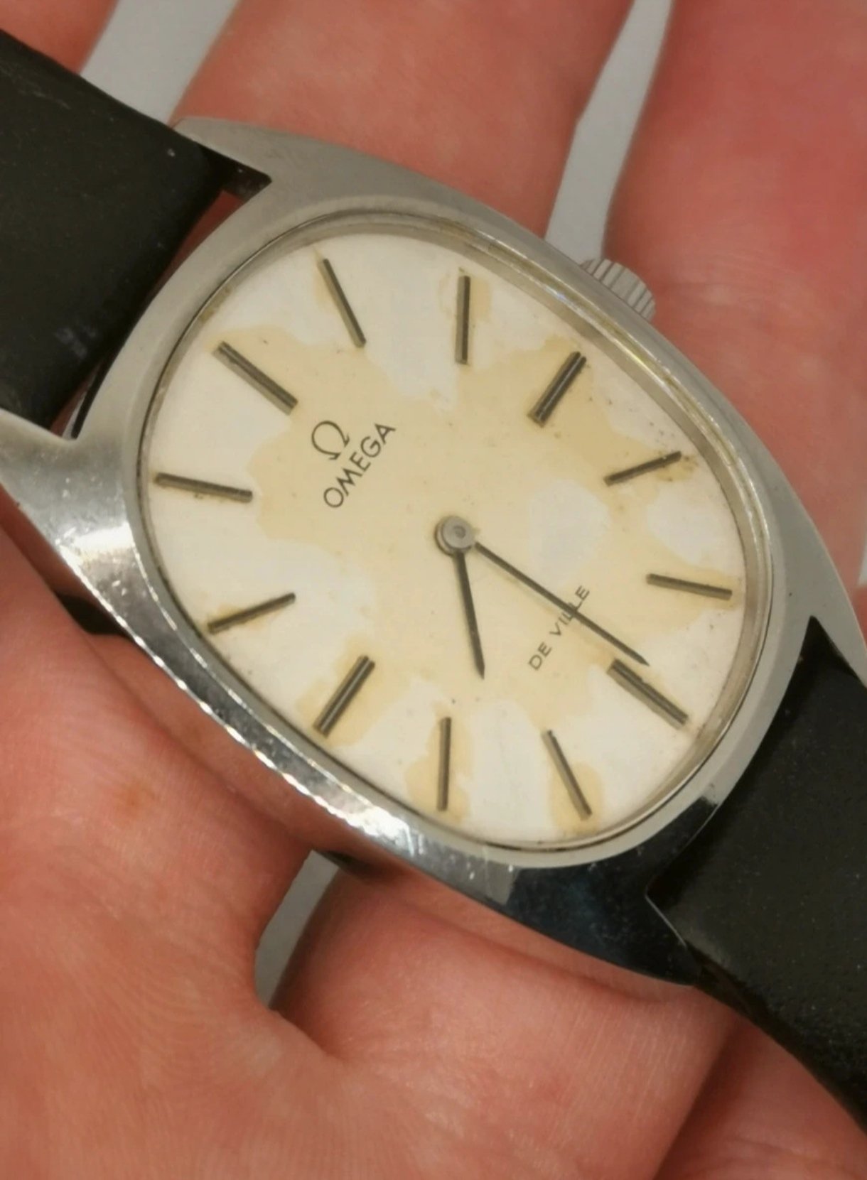 I might be interested in this Omega De Ville (1975) cal. 625. As you can see the dial looks bad, and the "Swiss Made" mark is gone (seller said damage on the dial caused this). Do you guys think this might be a redial?