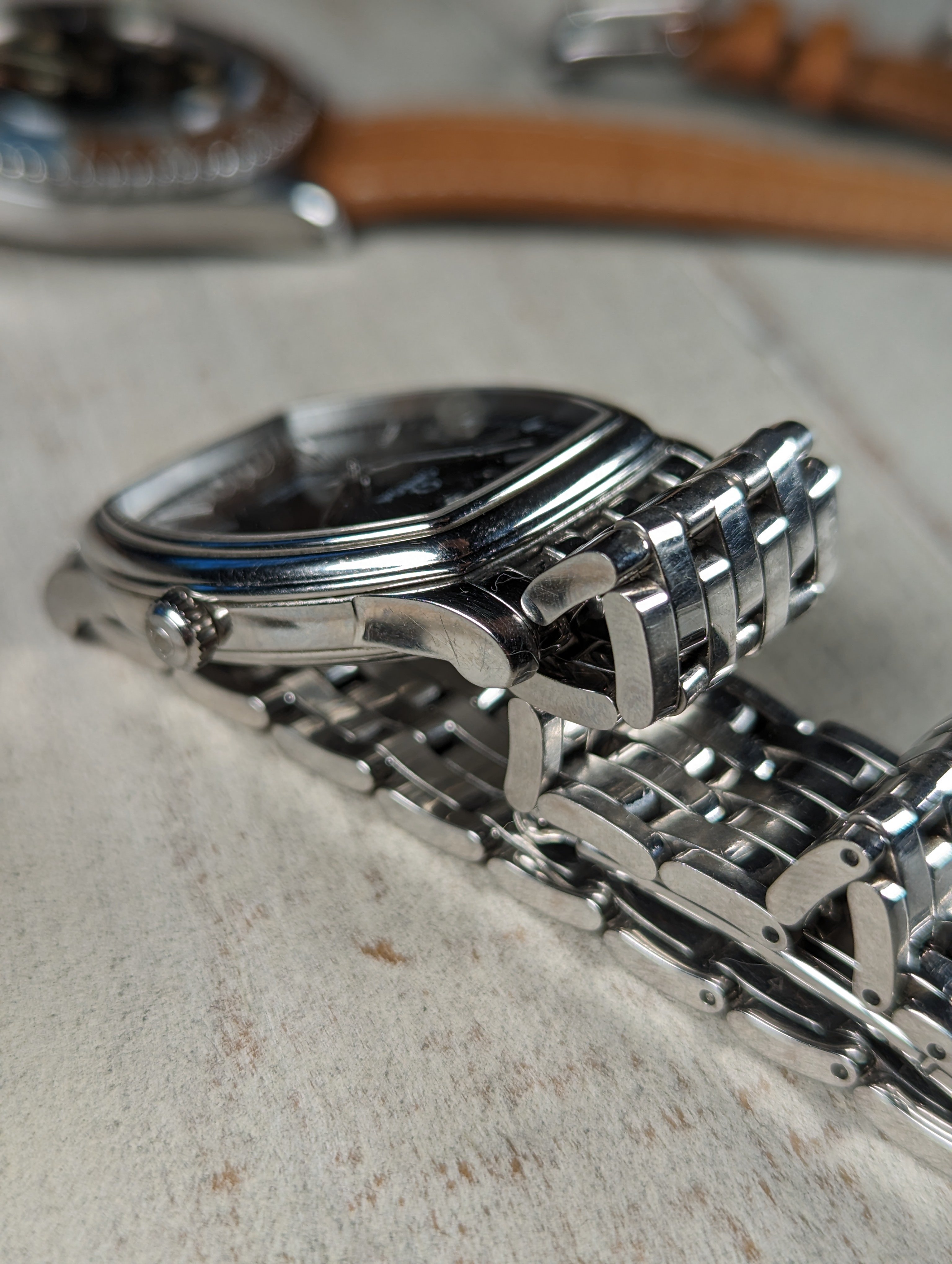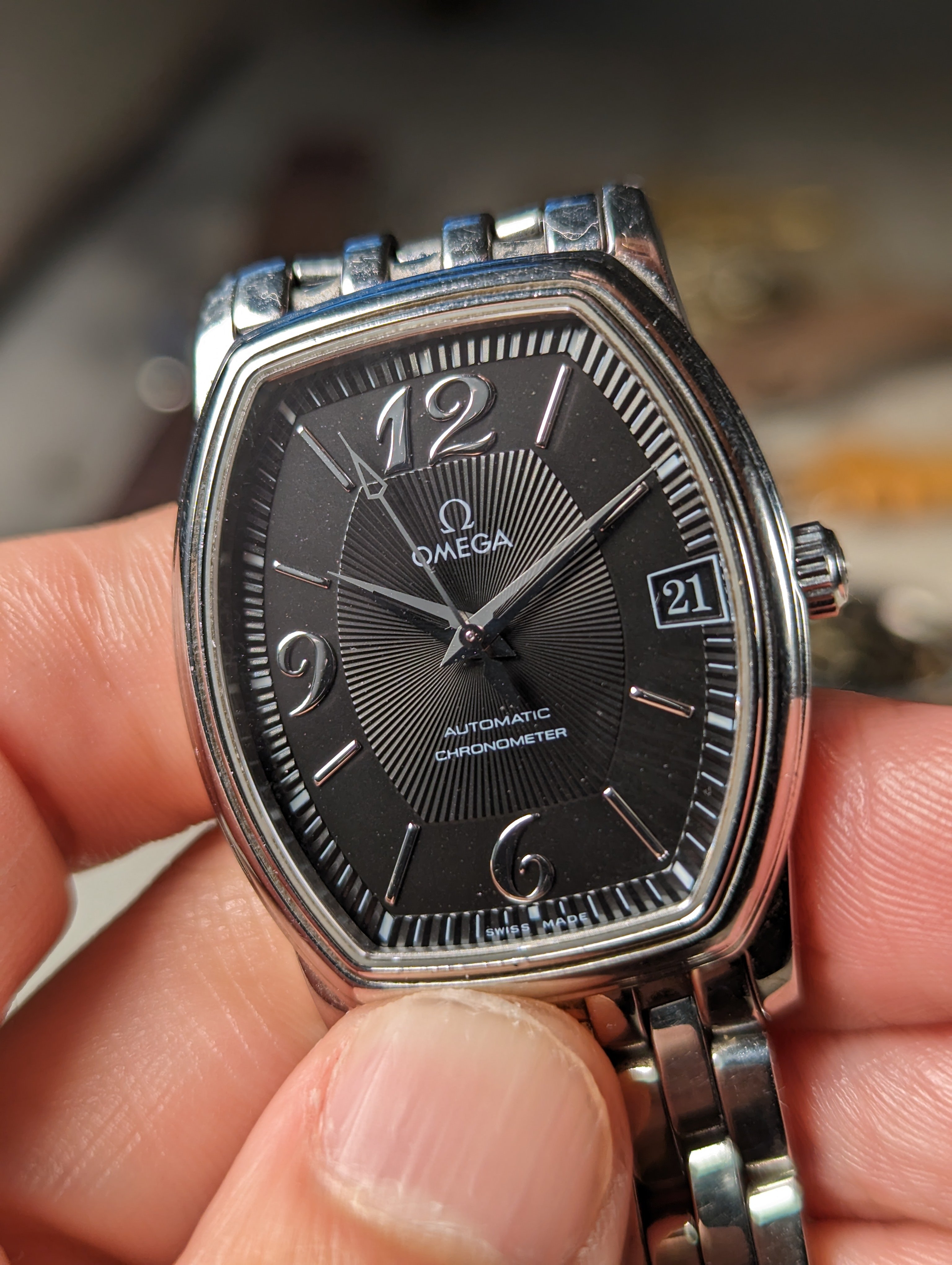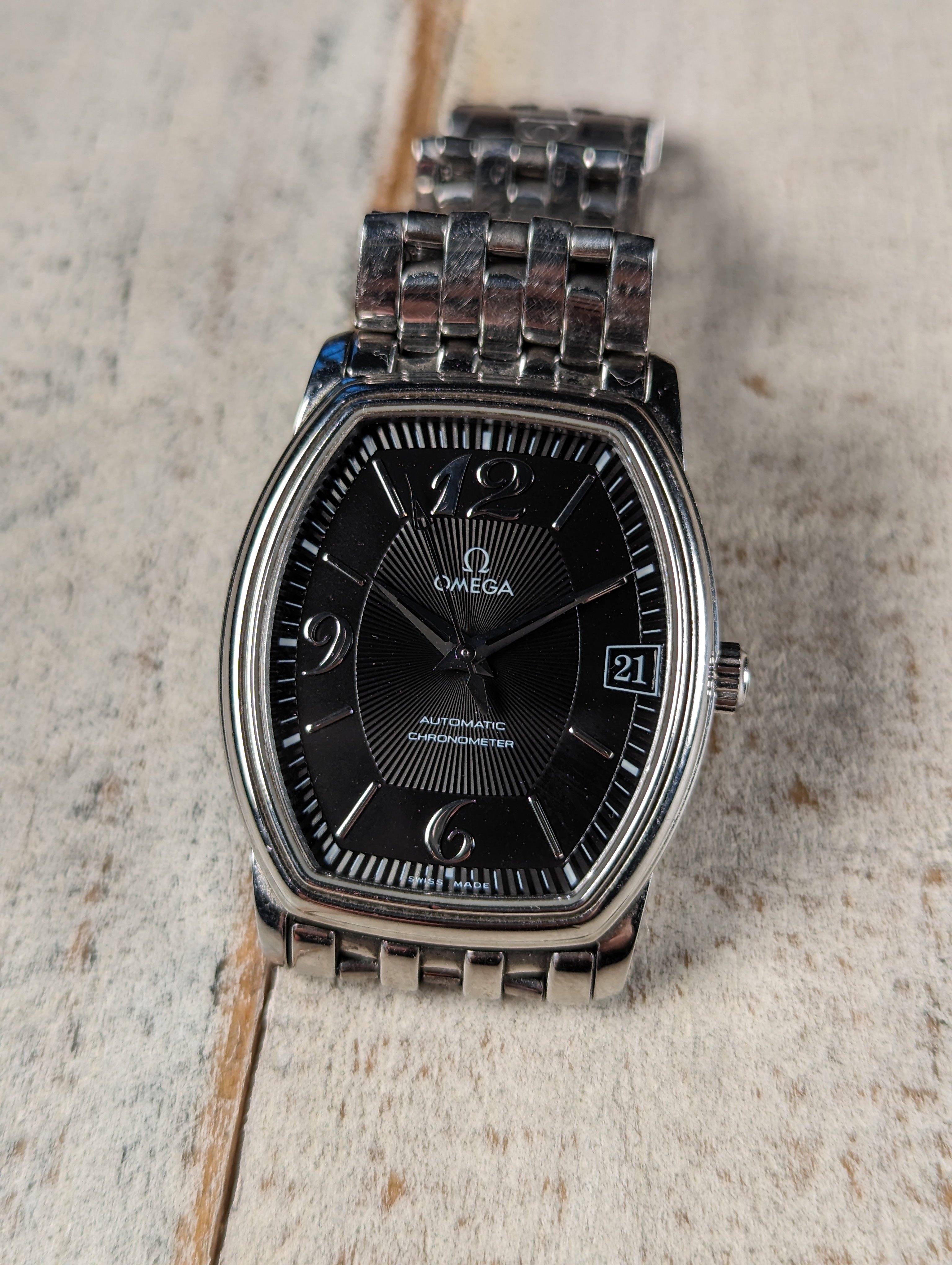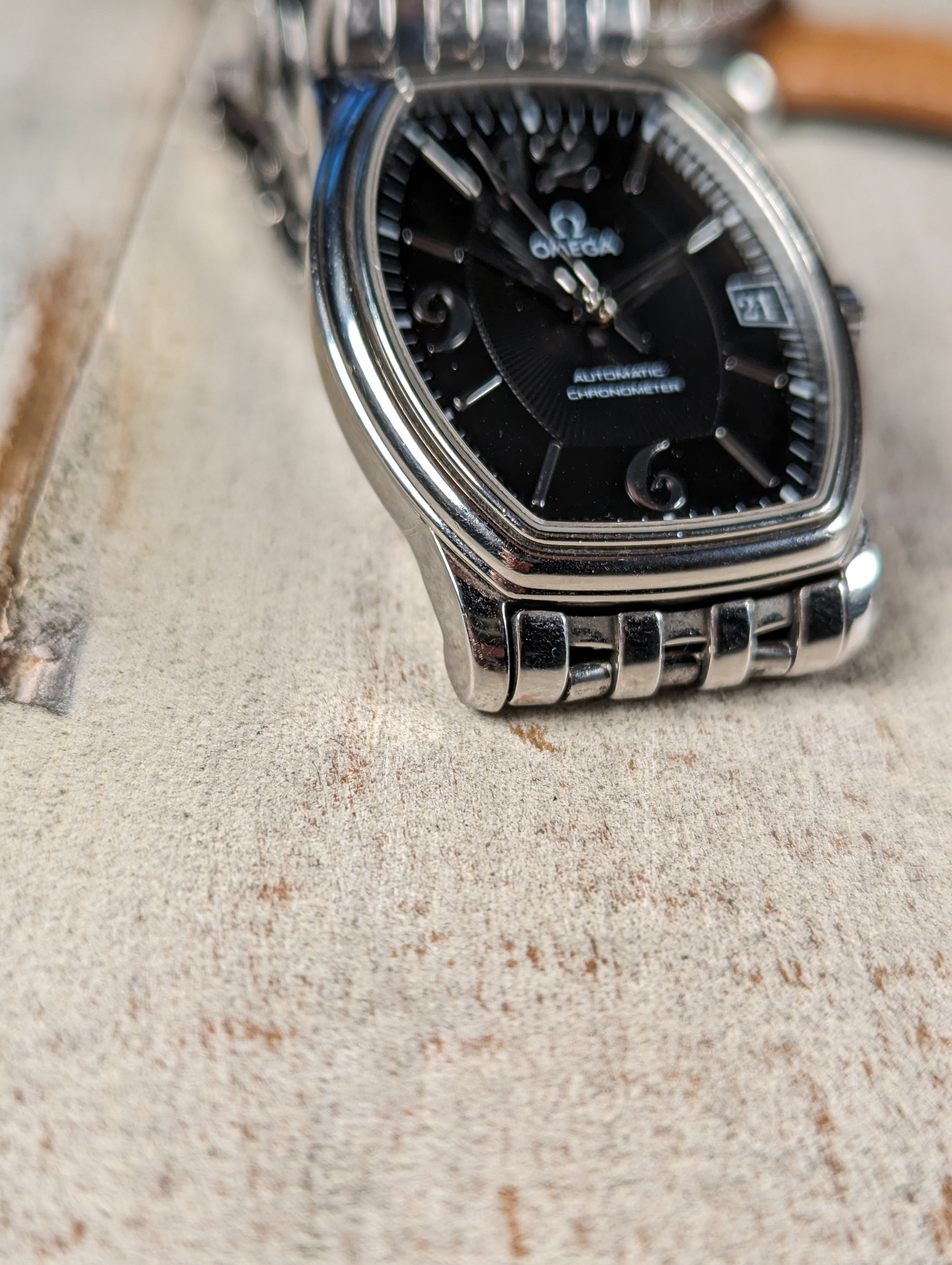 CASE: 31.2 x 35.6 mm steel, tonneau shaped case.