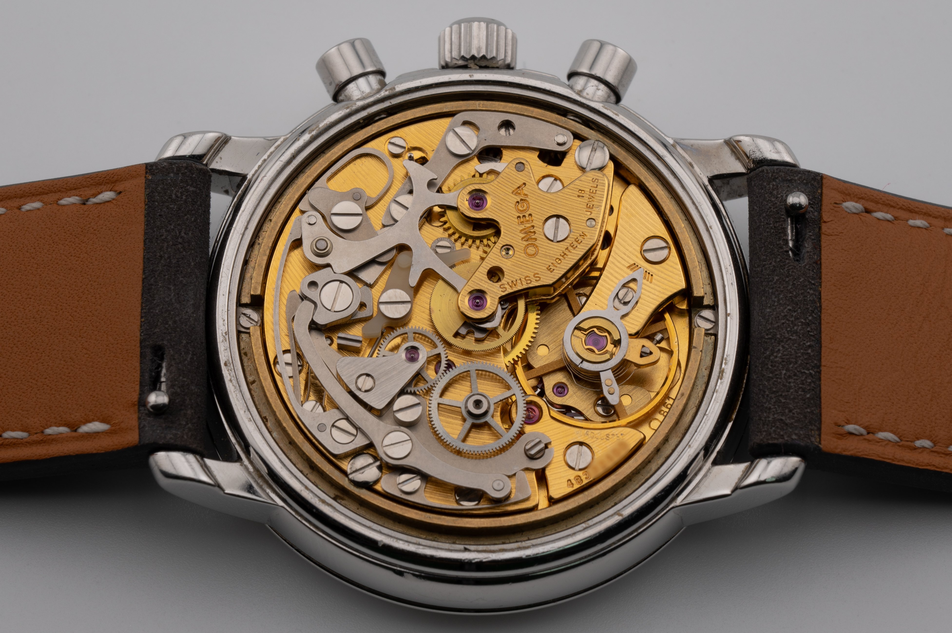 Movement looks clean. This is the 18 jewels variant of the cal. 861. It keeps decent time and the chronograph functions work as expected.