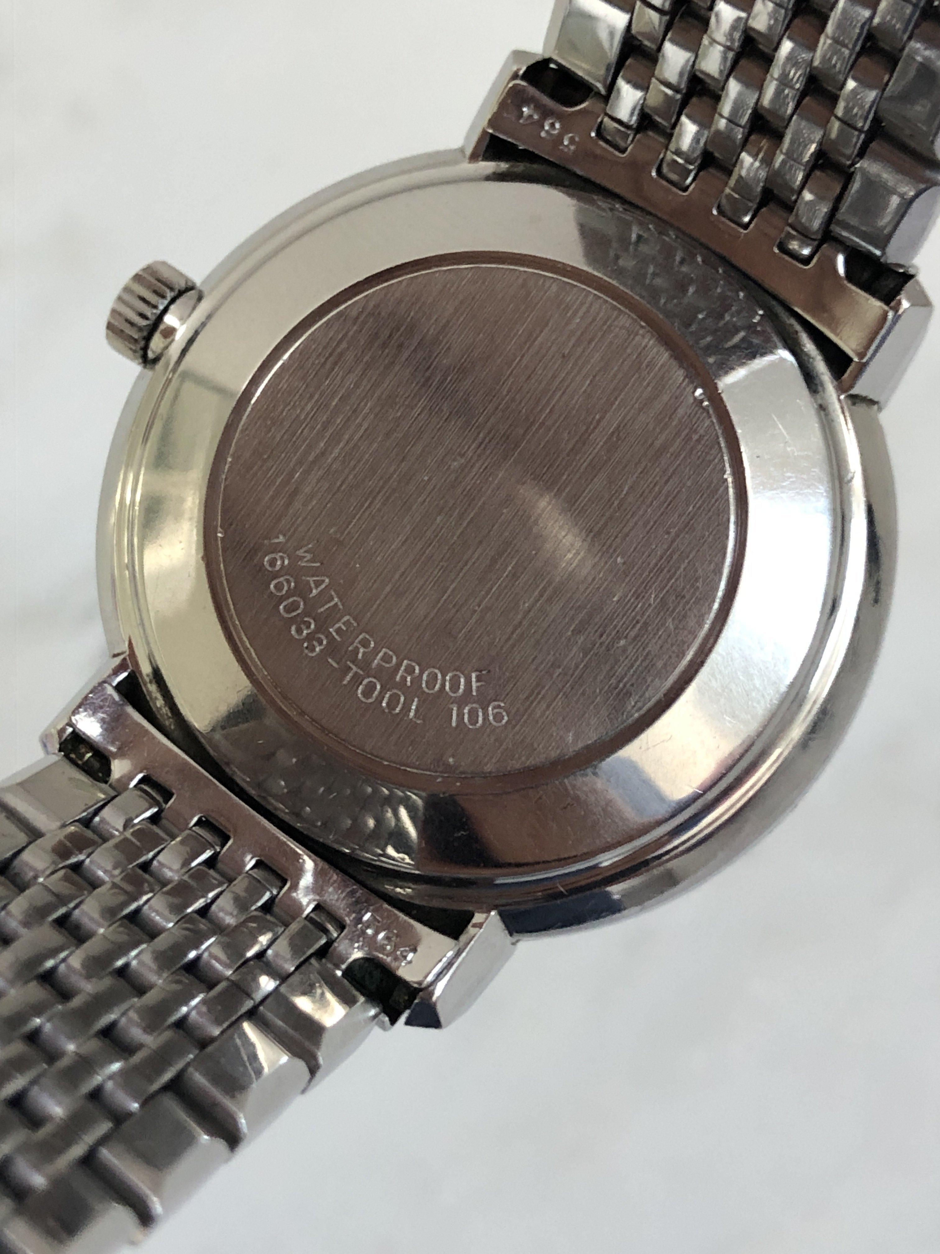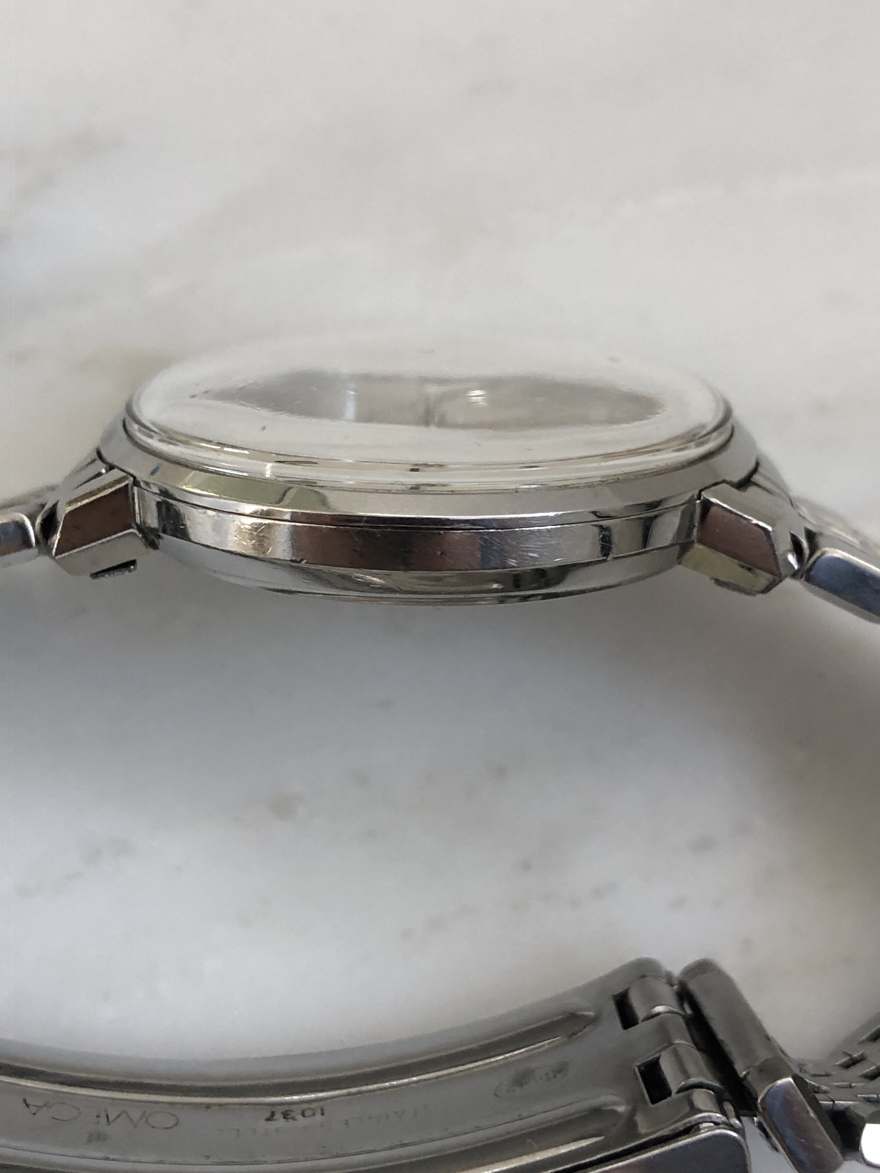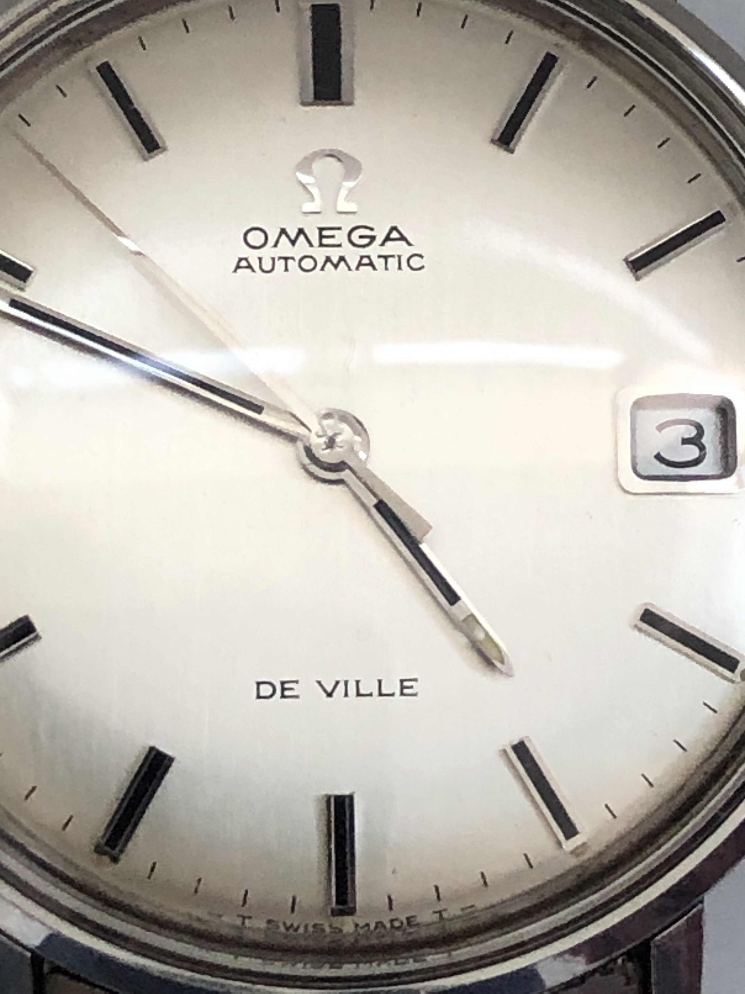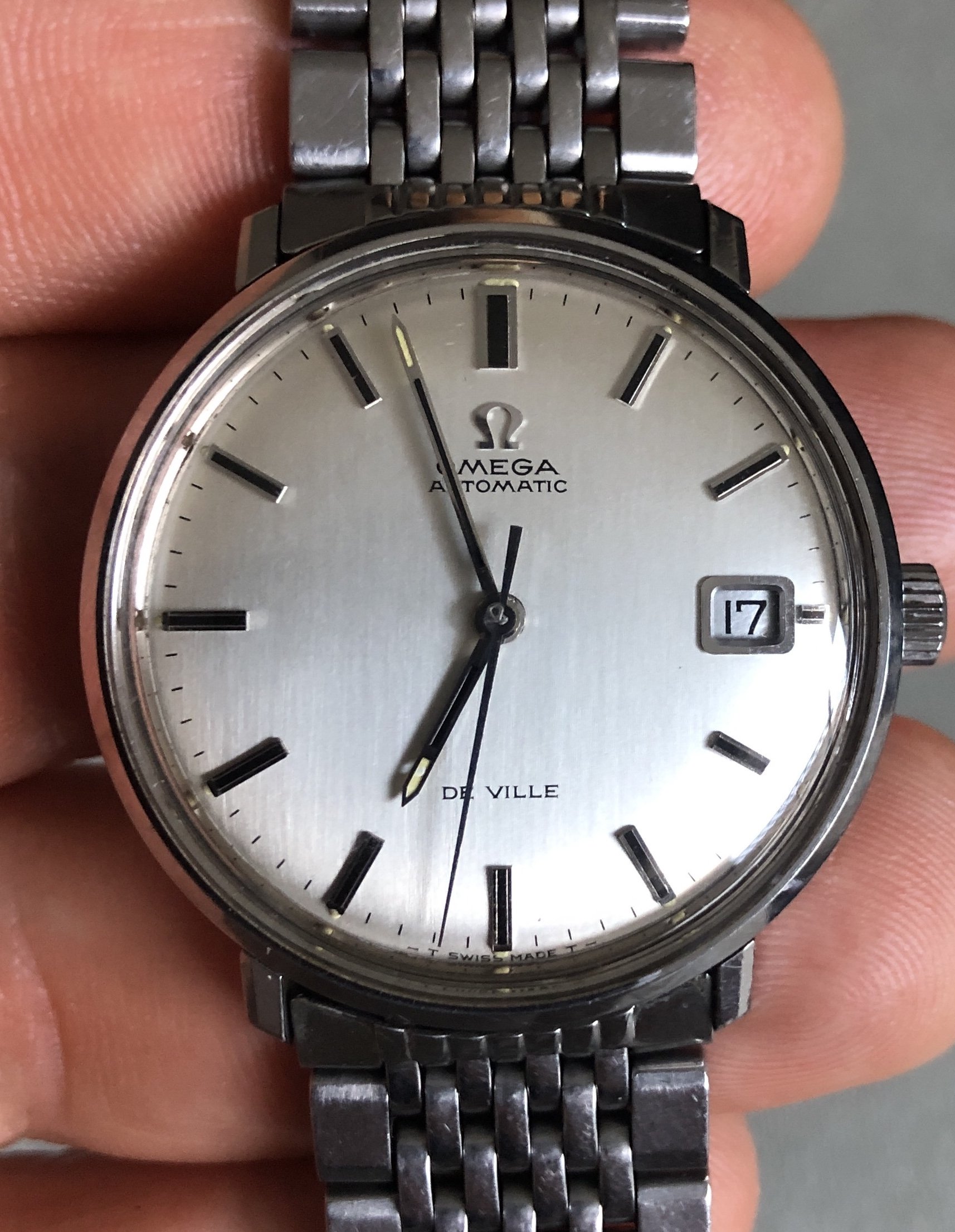 ·Omega stainless steel De Ville automatic with date ref. 166.033. Silverish dial with applied indexes and logo, pencil hands and date window. Signed acrylic crystal. Omega rice link bracelet with deployment clasp. All functions work as they should, including the quickset date.