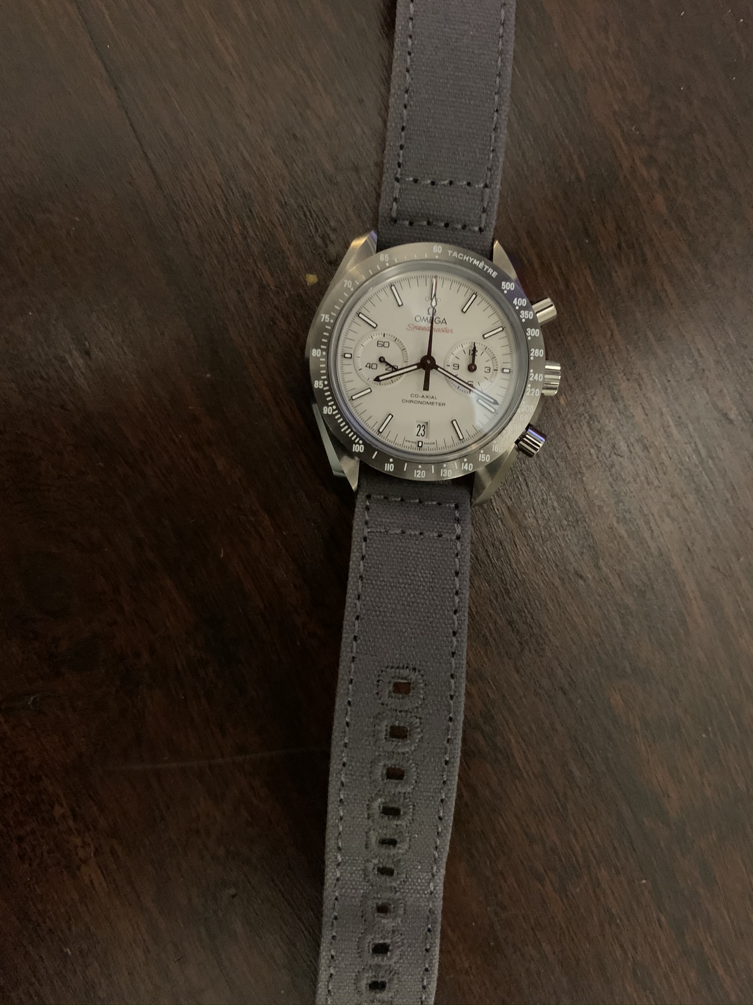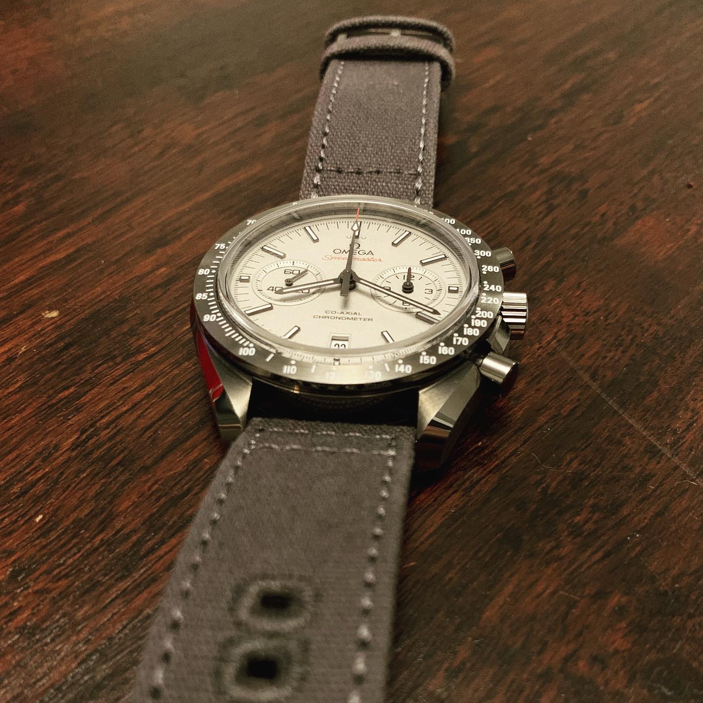 It’s a Barton canvas strap in smoke grey. (Barton watch bands) You can get it from their website or from amazon. 20 euros, quick release and they come in 21mm.