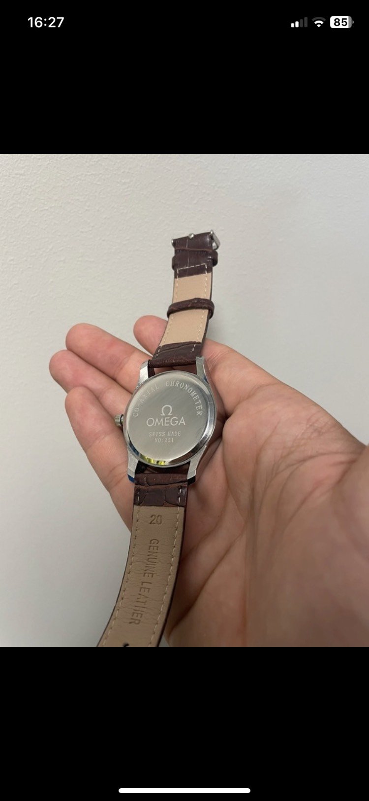 Cheap materials and finishing, looks nothing like any real Omega model, has a 24 hour scale on the dial but no GMT hand, just bad all around. Locking thread since it has been answered.