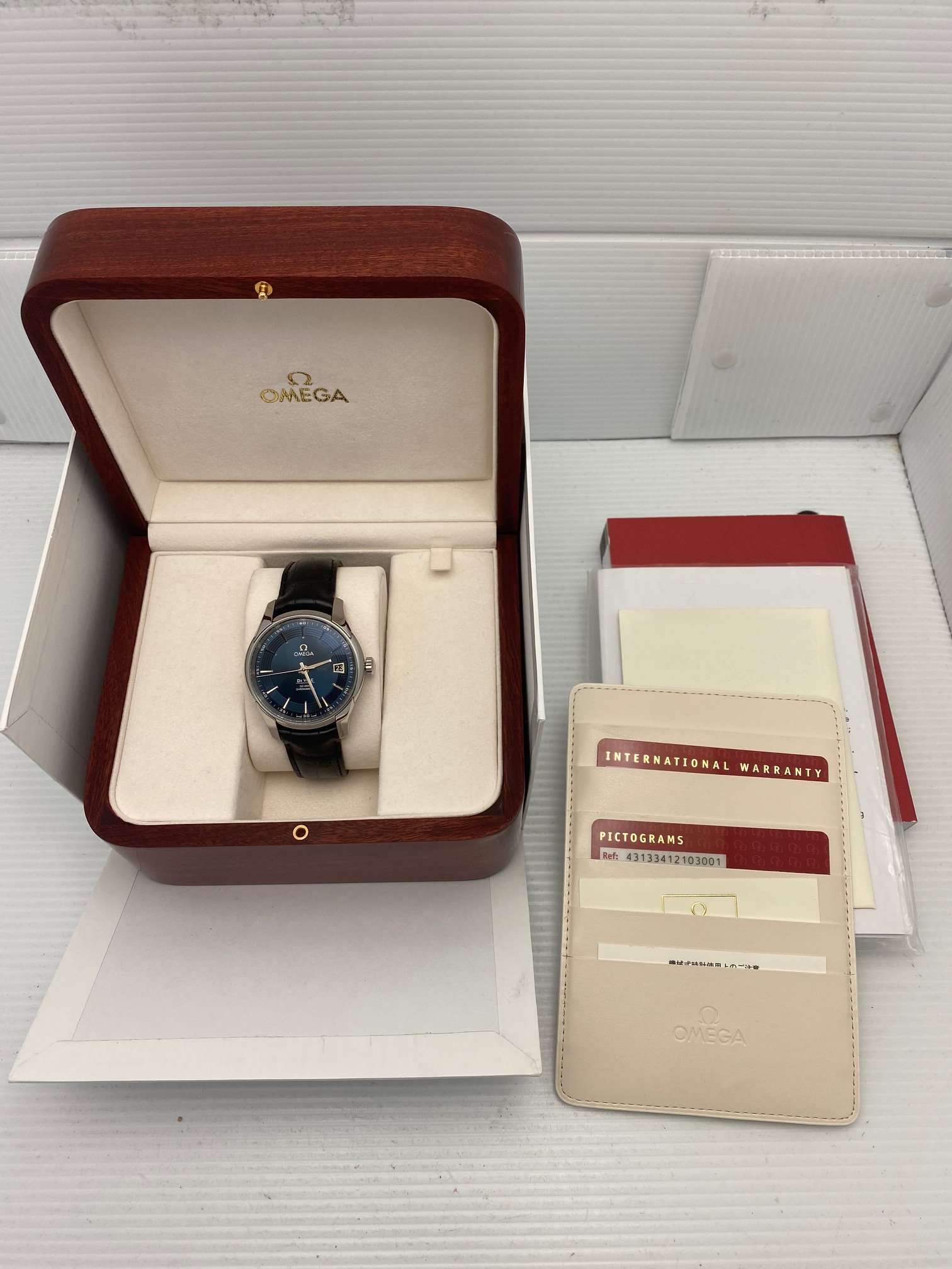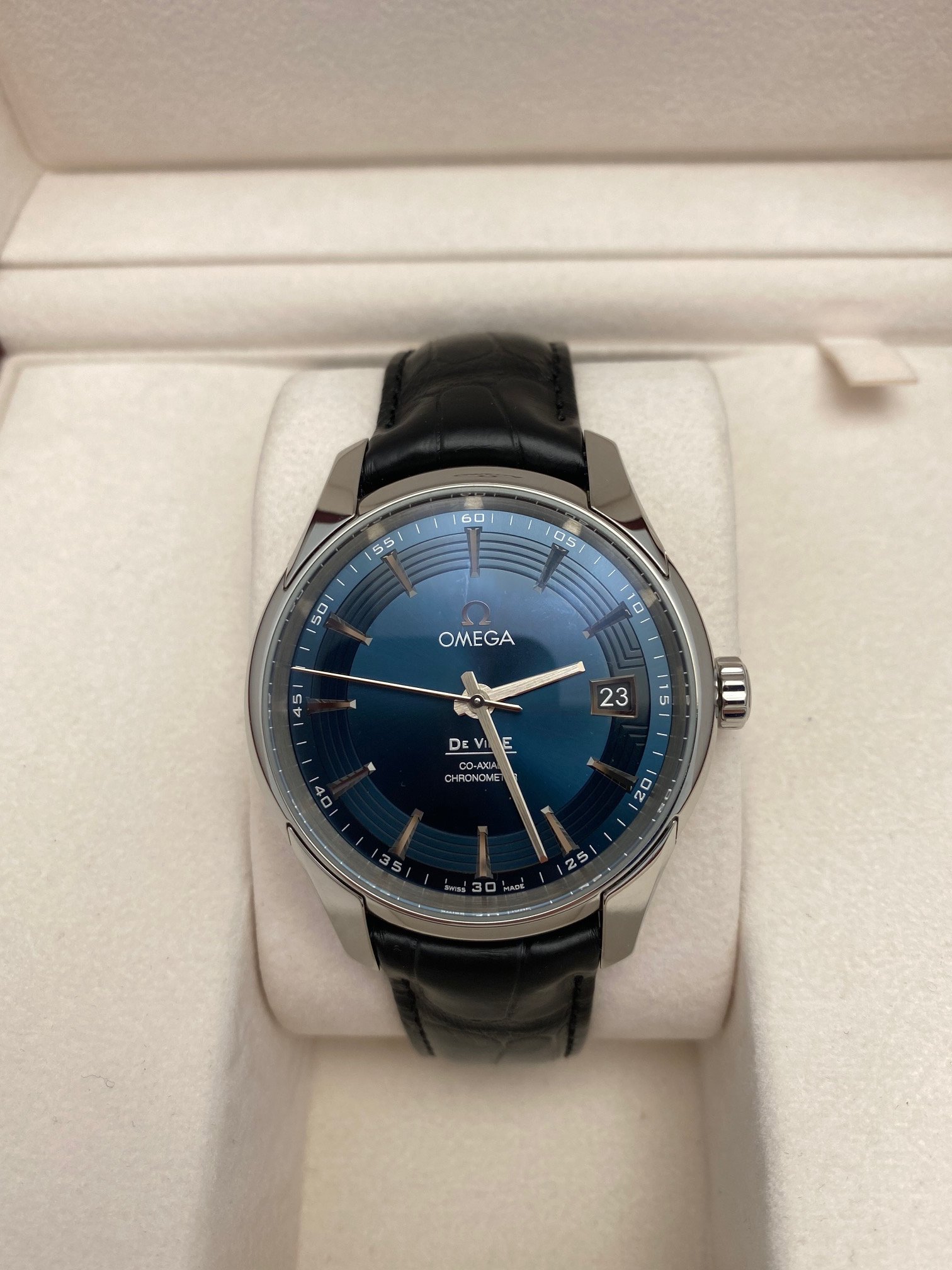 I have a Omega Deville Hour Vision Blue 431.33.41.22.03.001 for sale. Please take a look at photos for condition.