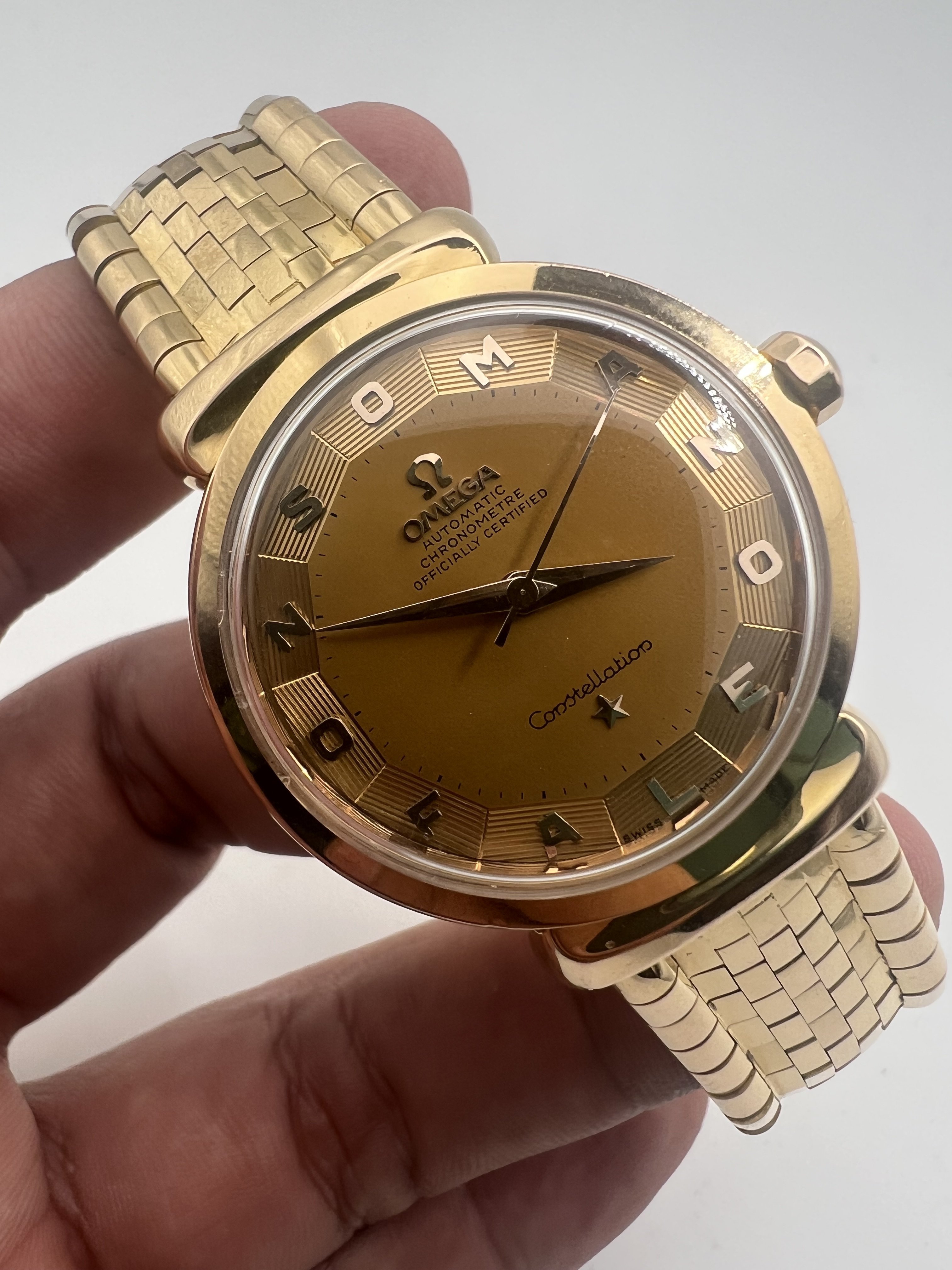 In 1966 he ordered an OMEGA REF. 14365 CONSTELLATION GRANDE LUXE PINK GOLD Omega with case No. 101801, Ref. 14365 SC. Made circa 1966