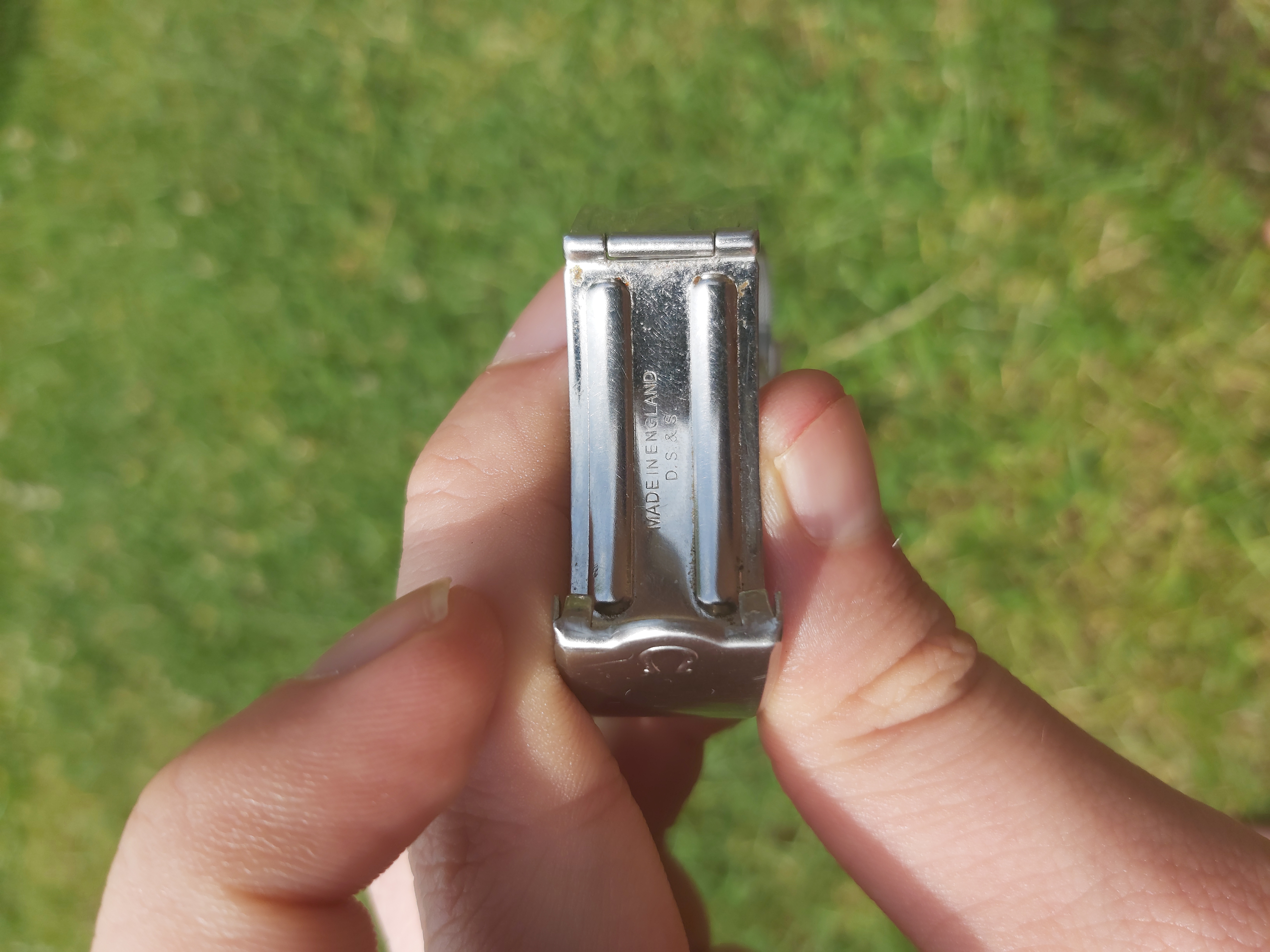 Show the backside. That bracelet, made in London by Shackman by the way, has tabs that locate it, they often break off. If you have the tabs intact it is rather more useful. I have one, it is very nice but not so great if it isnt located properly.