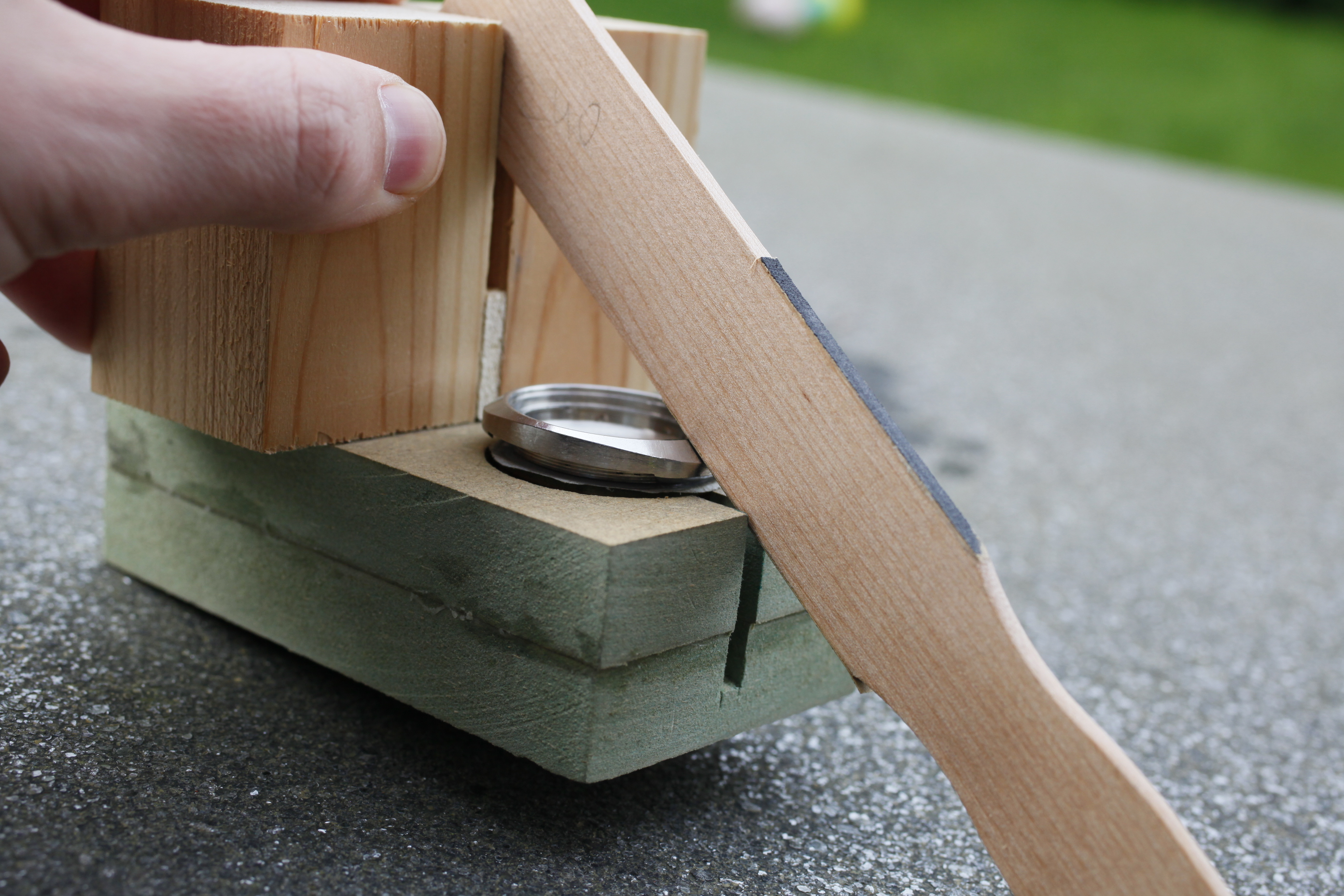 The solution I came up with was rather simple one: A paint stir stick with 240 gritt wet and dry sandpaper on the side, guided in the center between 2 slots. The case itself sits on a little turntable.