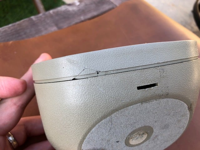 Besides the motor, the case isn't in the best condition. There are cracks on the bottom, glued pieces, and the tabs that hold the bezel/clock to the back case are missing. BUT because of it's design, it still sits well on the desk since all the weight holds it bezel to the back. But you might want to add some velcro or something for a more secure fit it will be handled often.