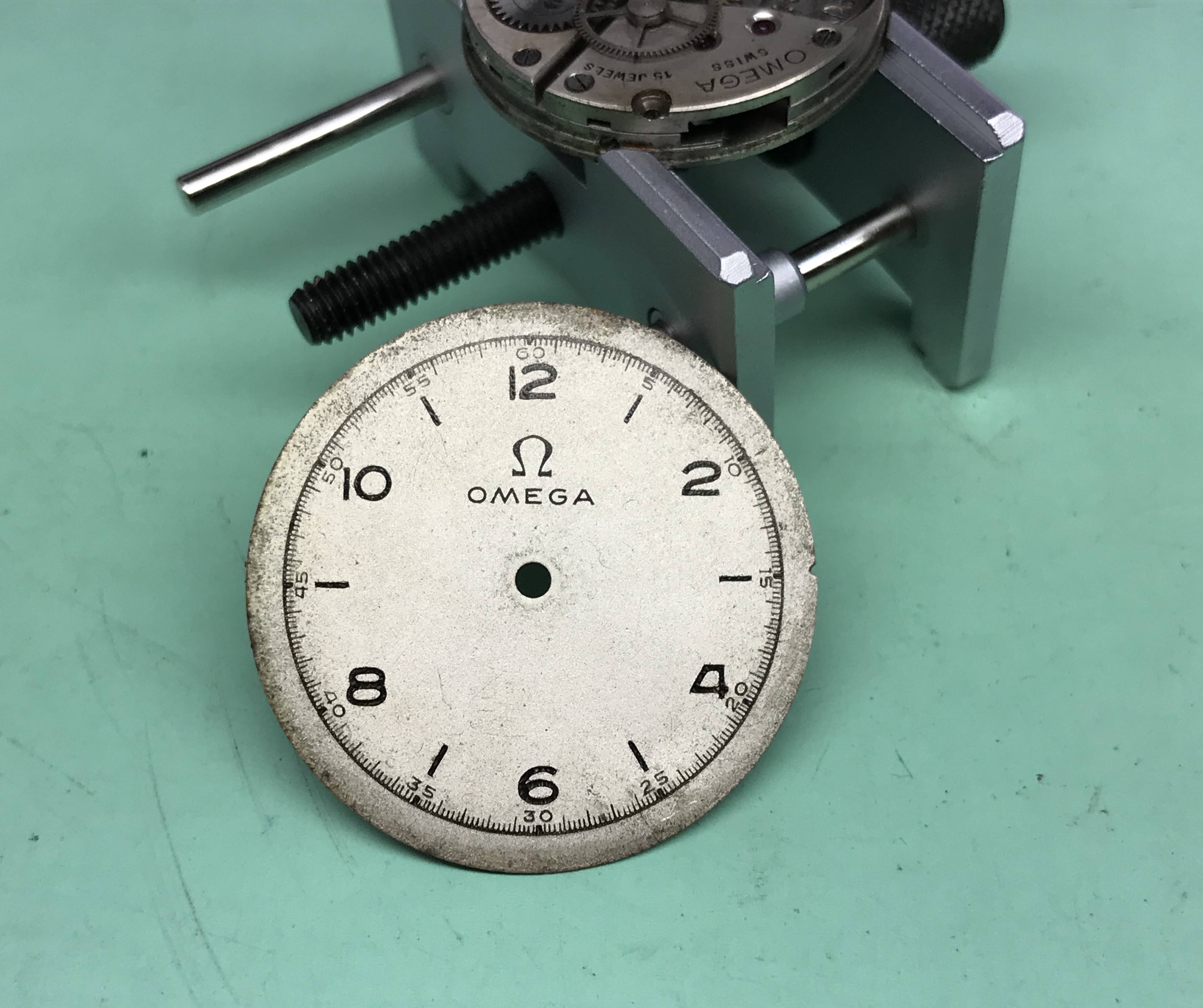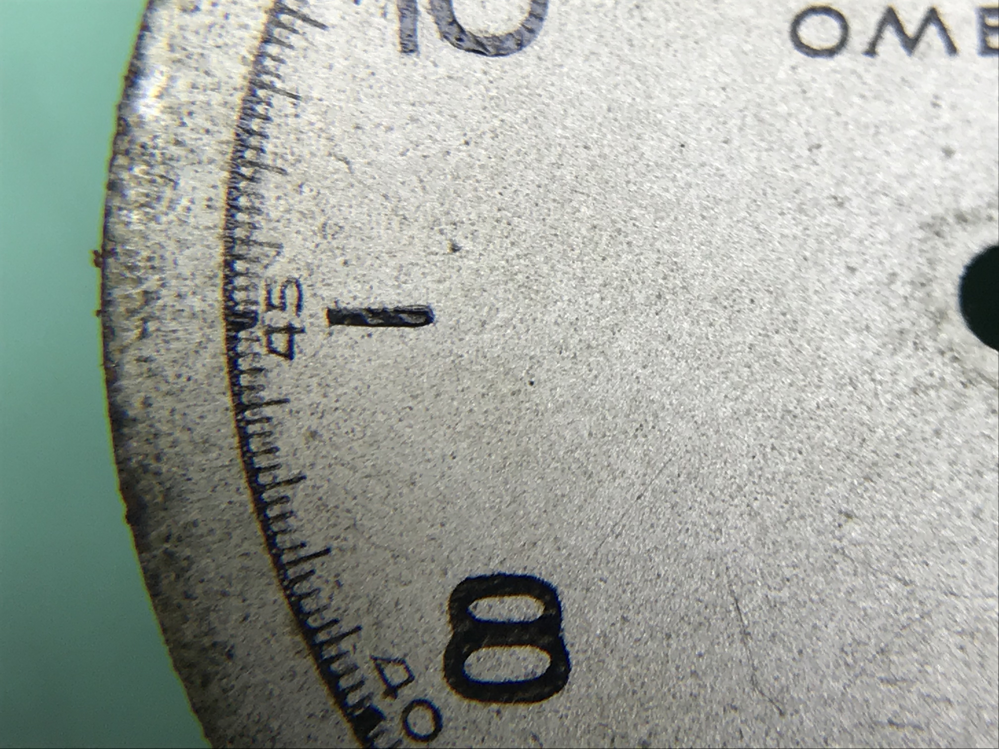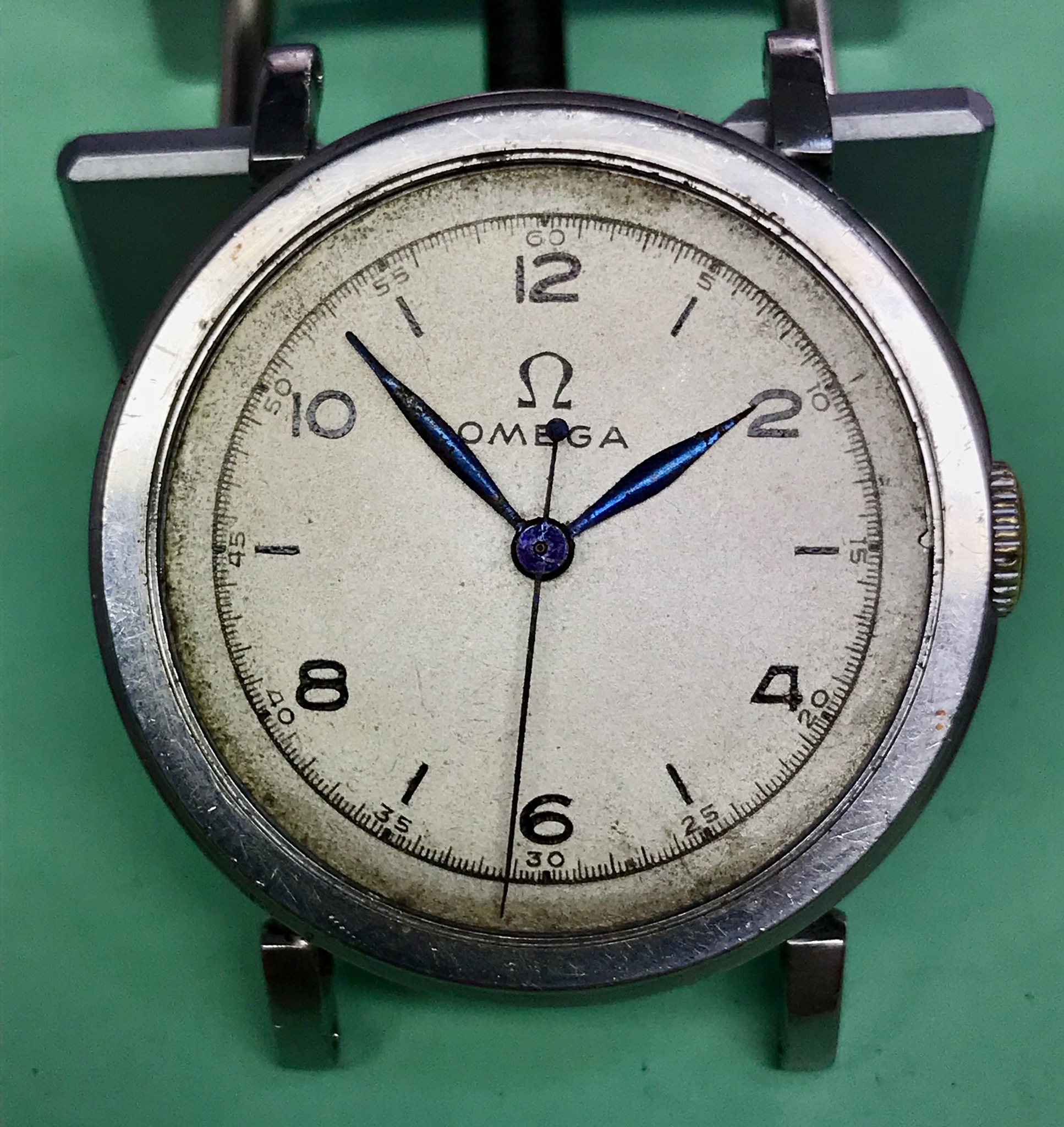 I just picked up a beautiful Omega watch "Fagiolino" from the 40's. It's a very rare and very nice watch. But I'm worried about the dial, it’s look redone to me . The missing of Swiss on the dial is ok for the watches from 30’s-40’s. The seconds scale does not look very clean, but it is a watch from the 40's and probably is not bad. "Omega" logo warries me most. I found several watches caliber 24,5 SC from the end of the 30's - early 40's with the same big “Omega” logo. But the "Fagiolino" watches that I found on the net have a smaller logo. What is your opinion? Original or redon?