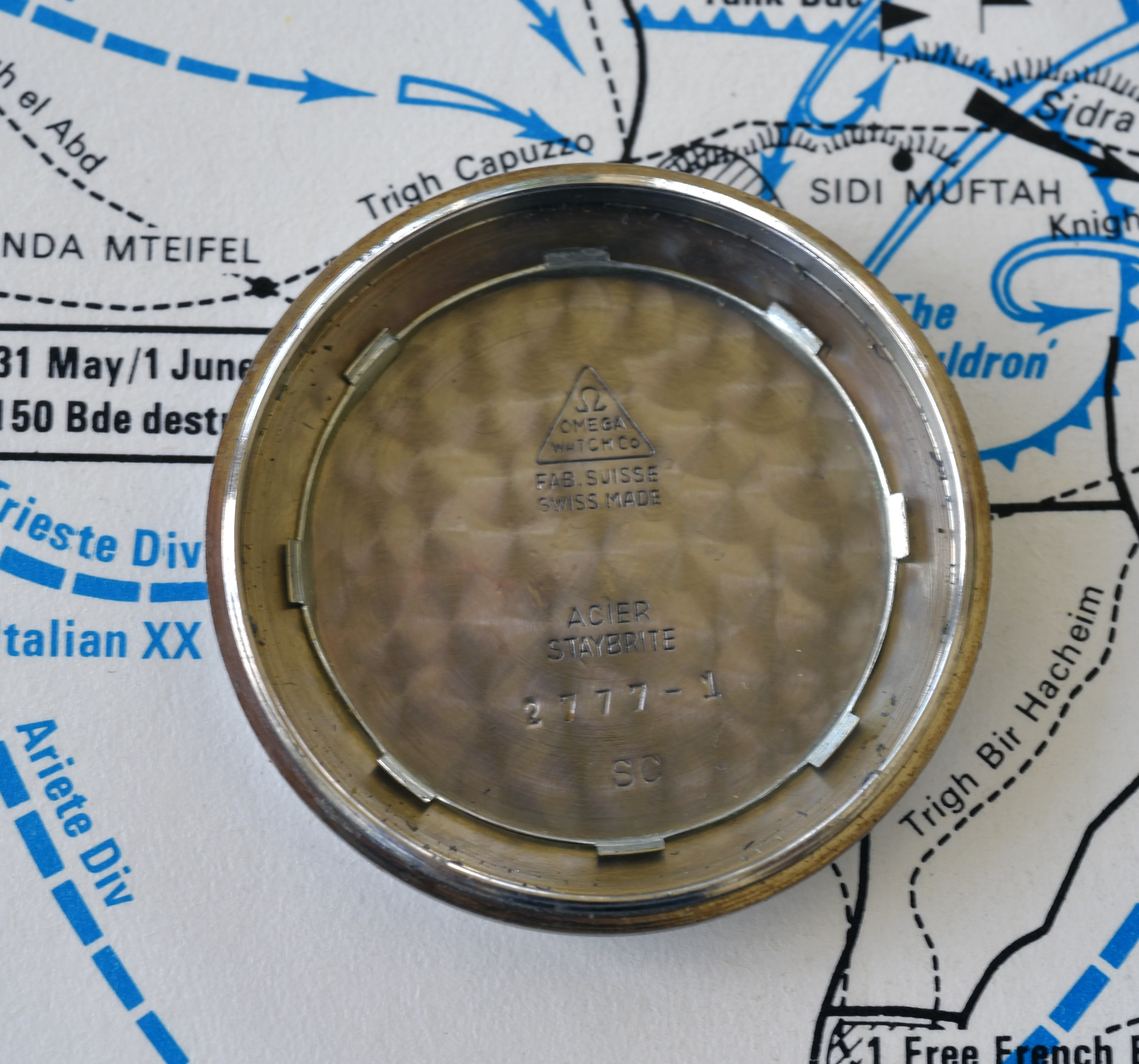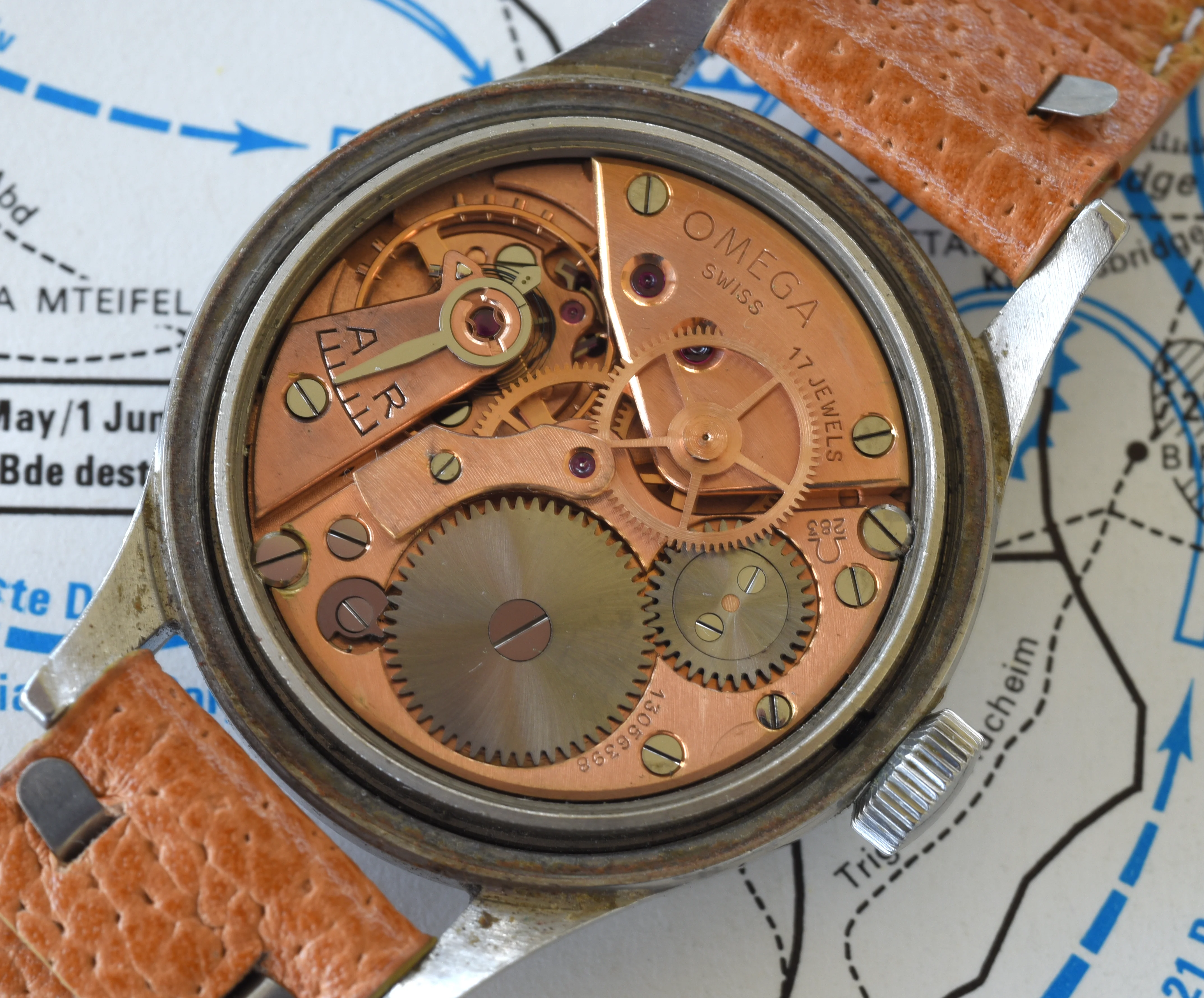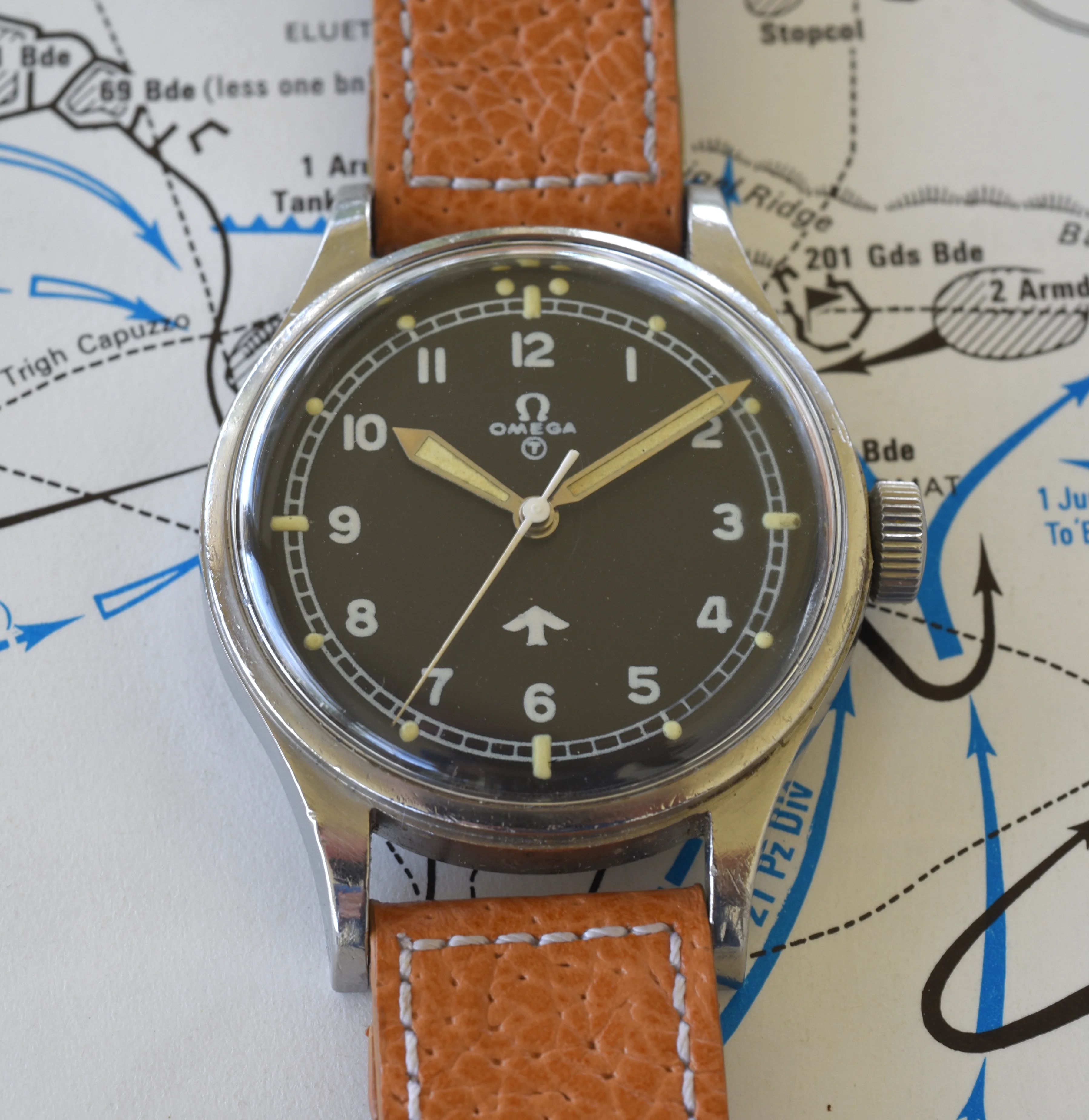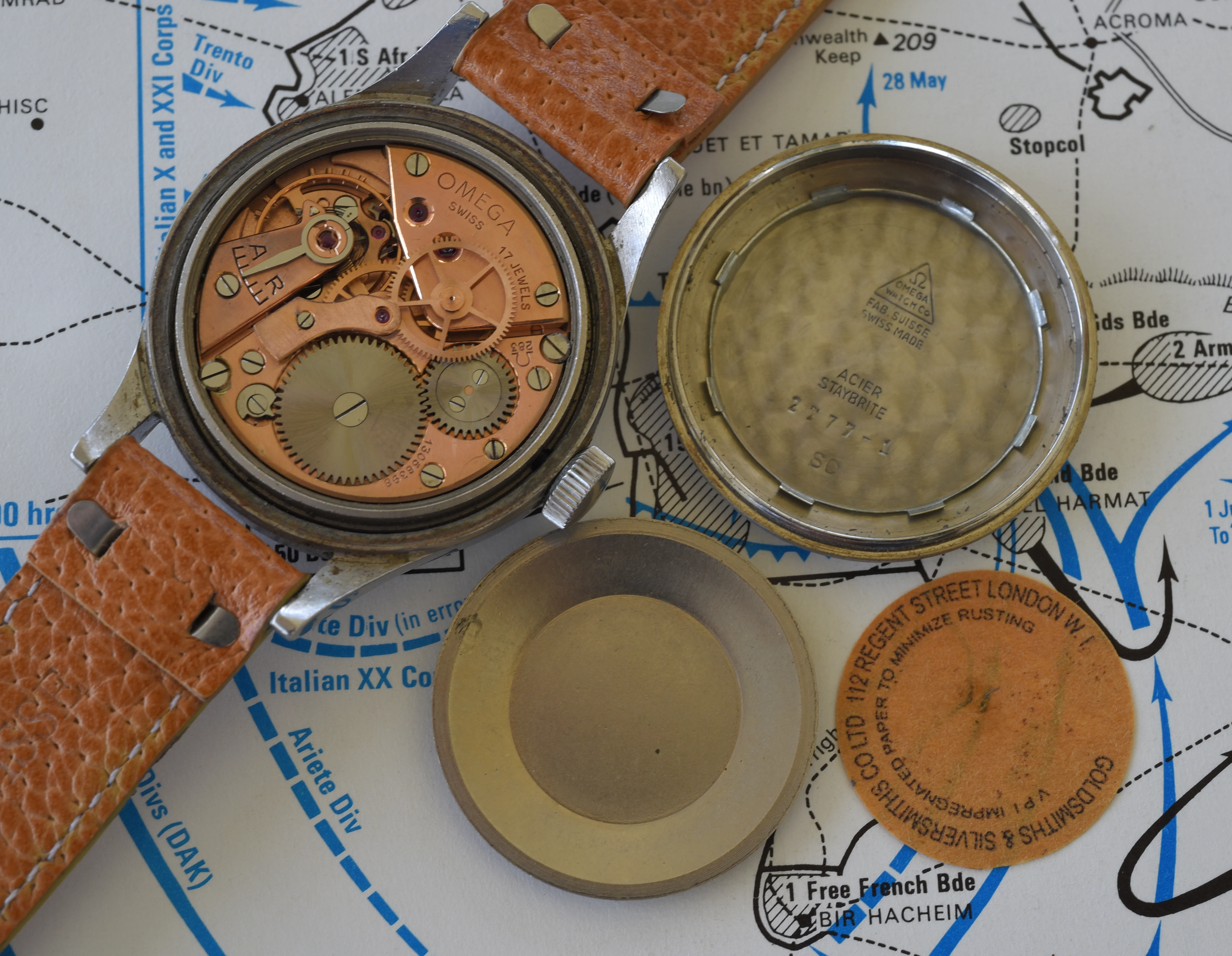 ··Curious about this text thingy below his avatarI am offering for sale my Omega "Fat Arrow" RAF 1953 ref CK2777-1 watch. This is another watch in my collection that does not get worn, so its time to find another home. This is as complete of a watch as you can find which includes the internal dust cover, crown retention ring and the moisture wicking paper insert. The case has fixed lugs and right now is on a strap designed for fixed lug watches. All the issue marks are correct and present. The cases has some small dings and scuffs, as you would expect for this type of purpose issued watch. The watch itself runs strong, but I don't recall when it was last serviced.