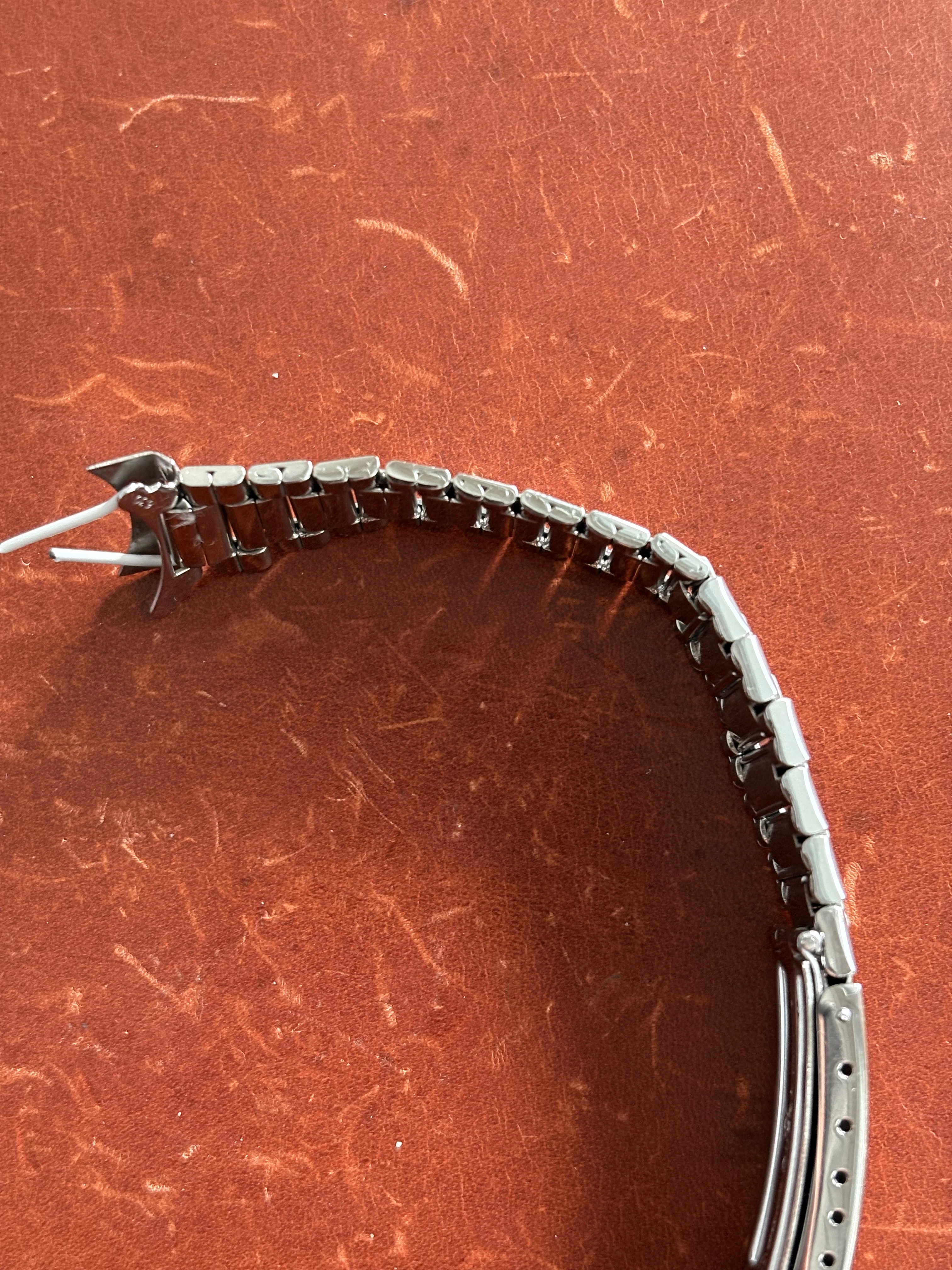 The condition is excellent as you can see on the picture with the combination of the brushed and polished links. Of course I cannot tell whether the bracelet is in the original condition or whether it was professionally refreshed. There has only minimal stretch in line with the overall condition. The only minor imperfections are a few hairline scratches on the clasp.
