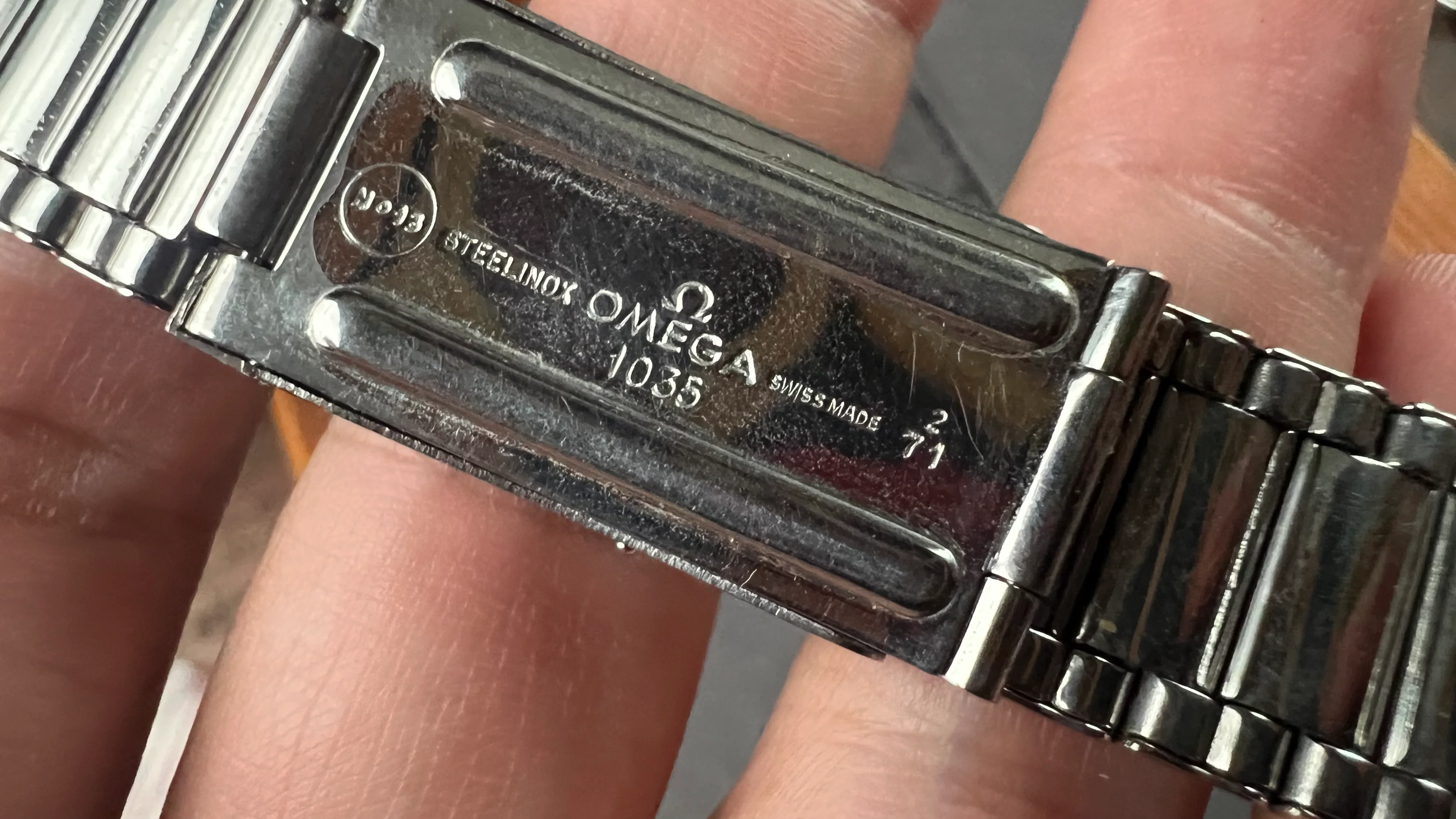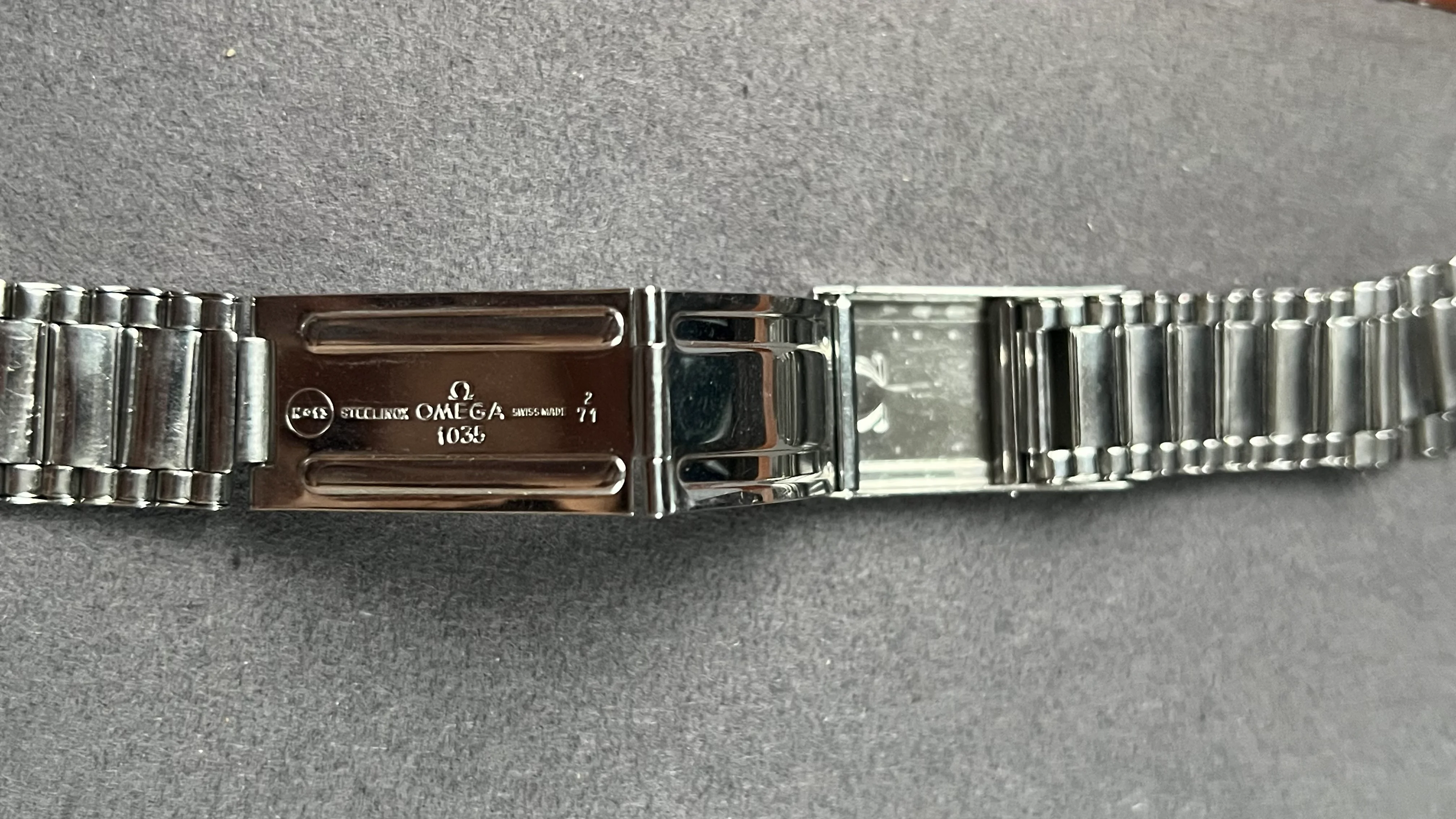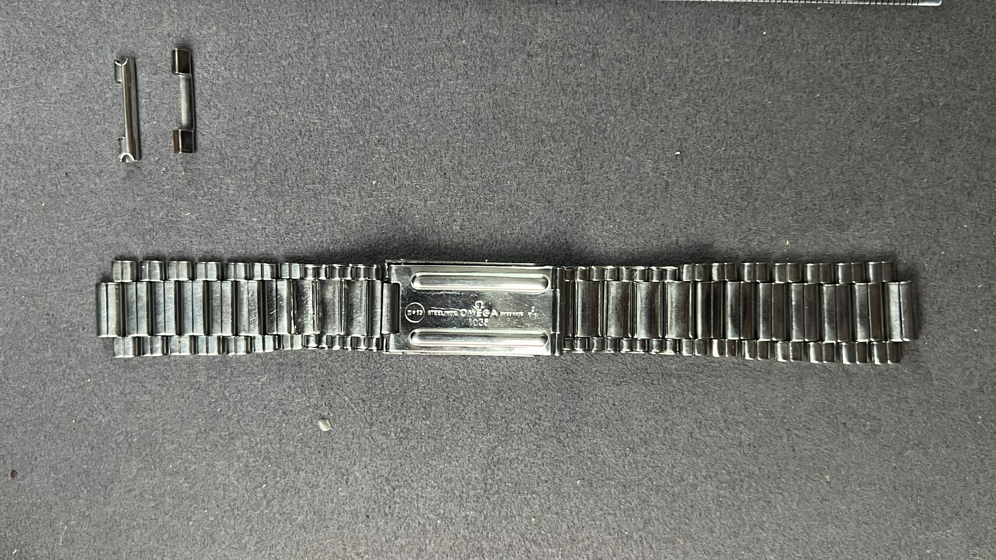 1. Omega flatlink bracelet ref. 1035 with a pair of 571 endlinks dated 2/71