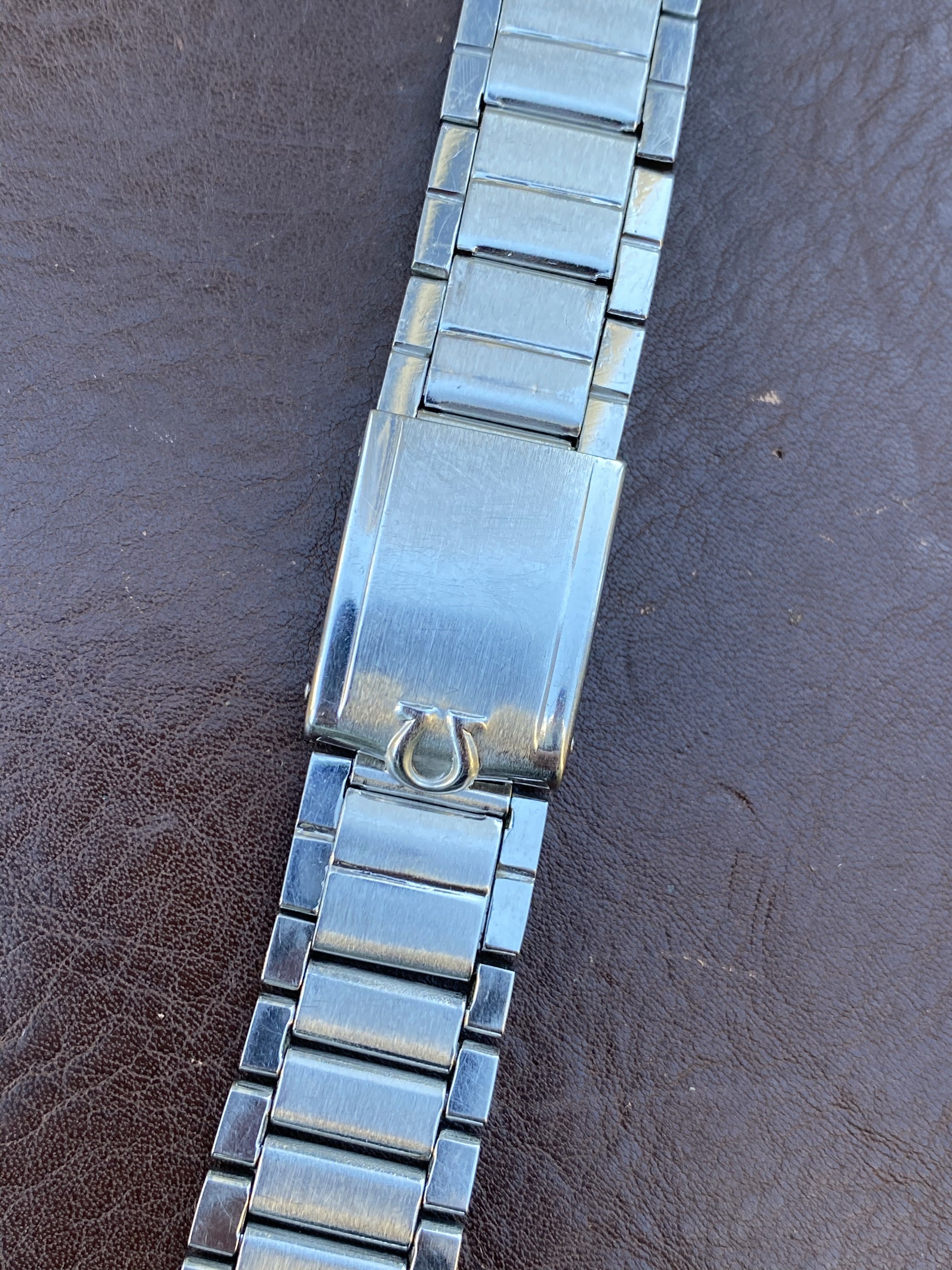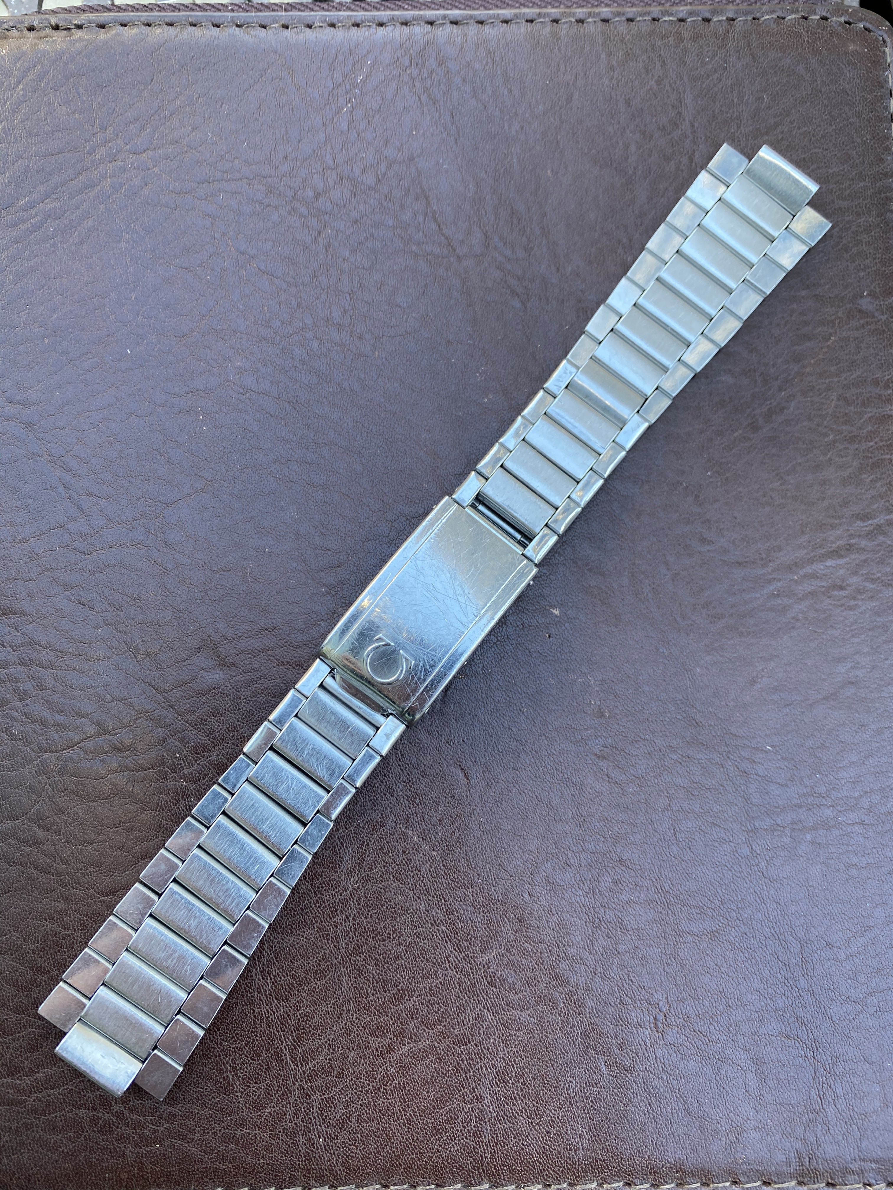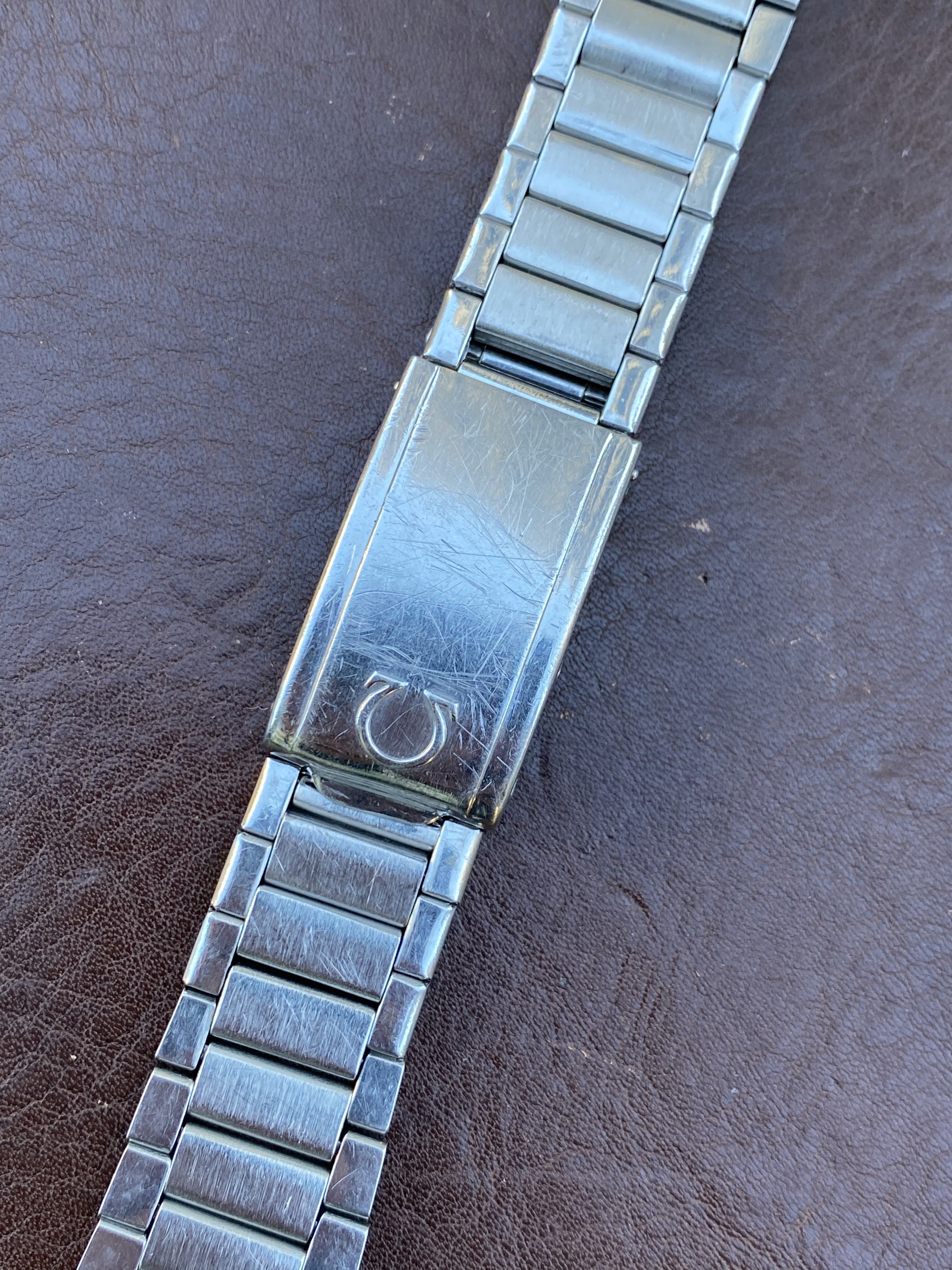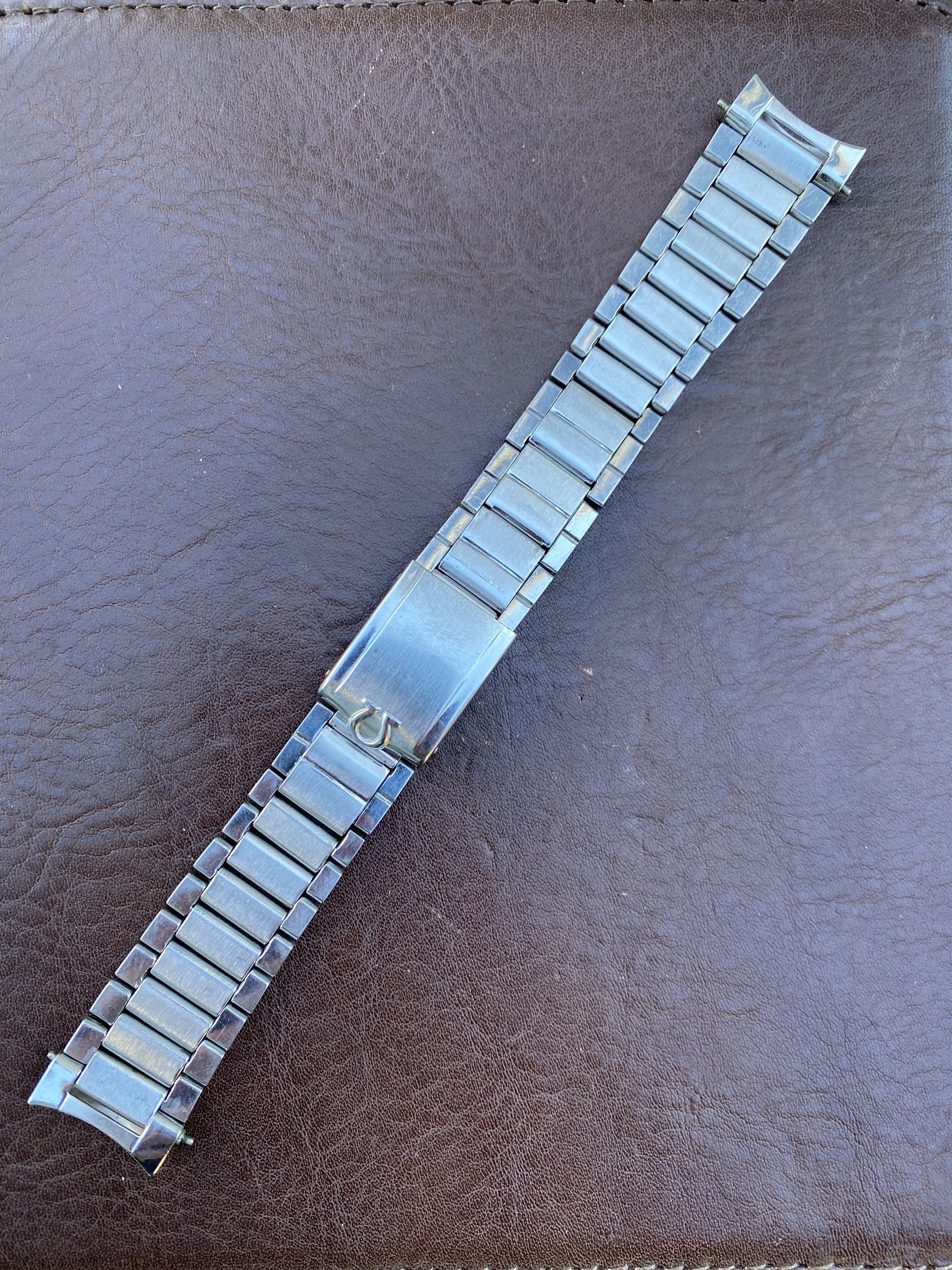 7077 bracelet is in very nice, seemingly unpolished condition with clearly visible original brushing on the center links. There is some wear but nothing too significant (see photos). Features four of the original double spring links, all of which are fully functional (I recently replaced springs in two links). Length is 15cm (unstretched) excluding endlinks. Clasp is fully functional. Bracelet is dated to the 3rd quarter of 1960, making it correct for early Speedmaster (2998), Seamaster 300 (2913), Railmaster (2914), Ranchero (2990), and many Seamaster/Constellation references. Comes with or without the original 18mm #7 endlinks which are also in very nice condition and I believe are correct for a Ranchero but also fit other Seamaster/Constellation references. Also includes the original 18mm spring bars if you buy with the endlinks. Price is $1750 without endlinks, $2000 with #7 endlinks. [Bracelet sold, endlinks still available]