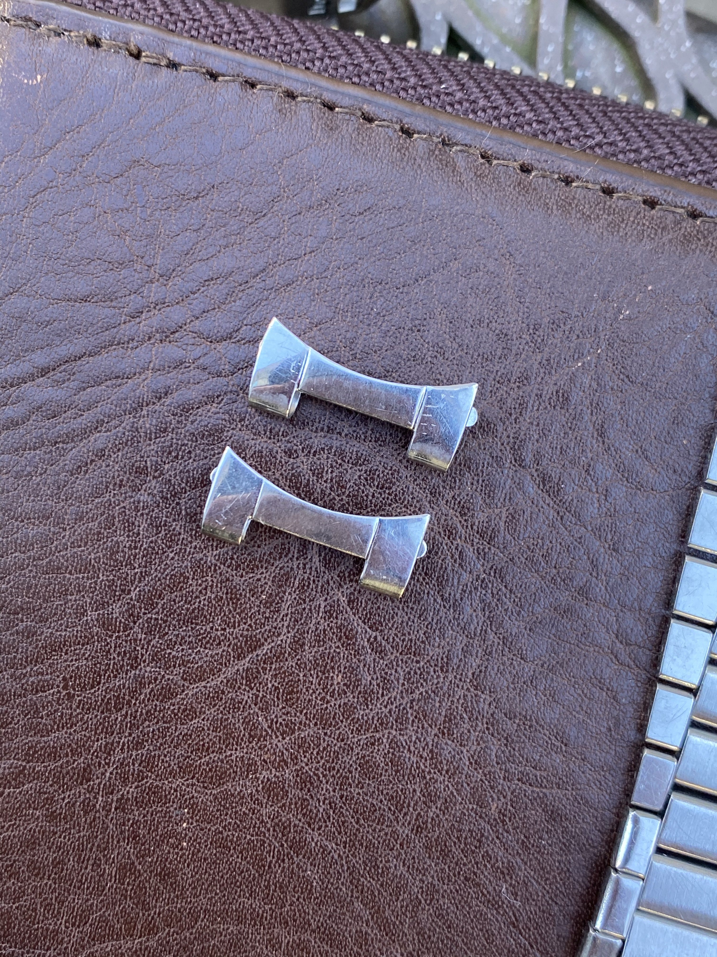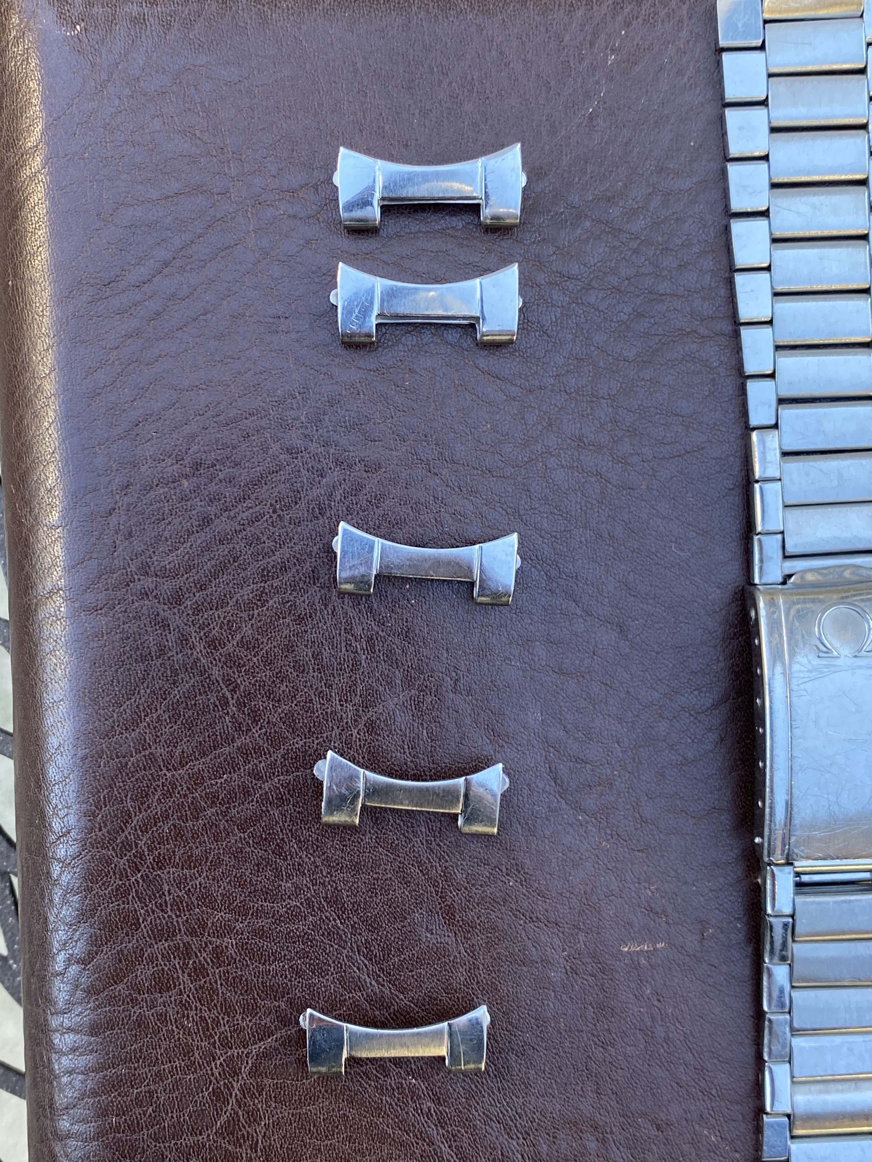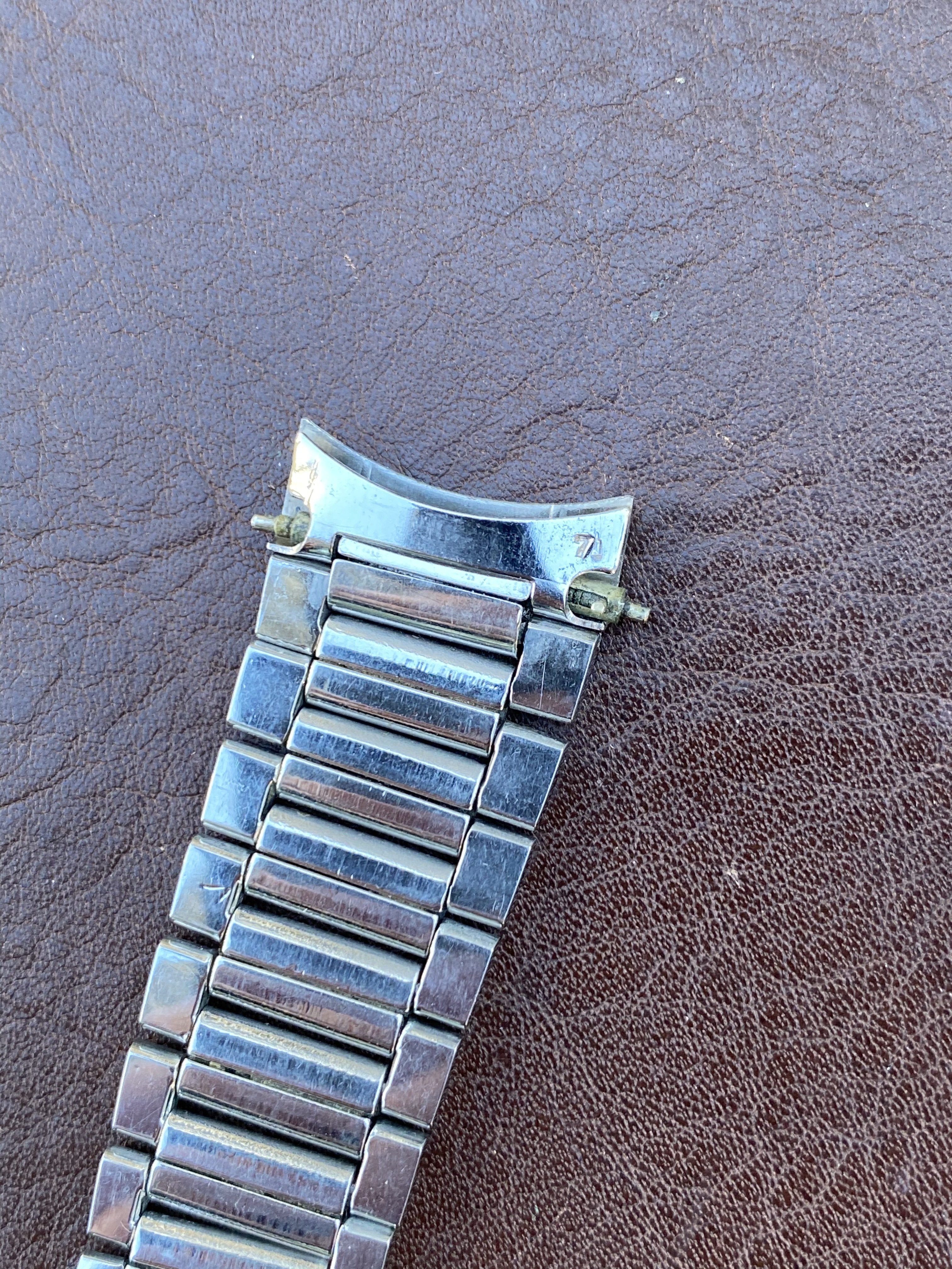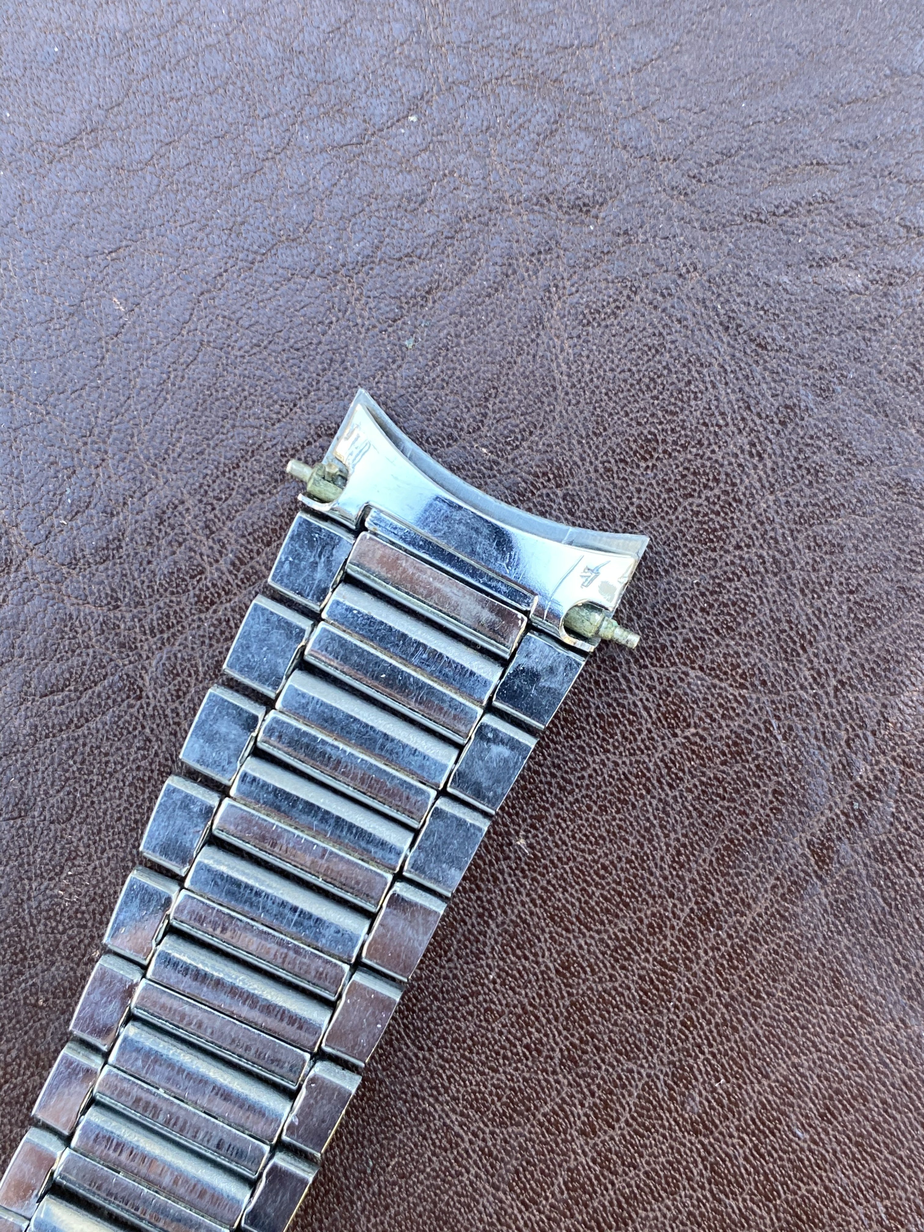 7077 bracelet is in very nice, seemingly unpolished condition with clearly visible original brushing on the center links. There is some wear but nothing too significant (see photos). Features four of the original double spring links, all of which are fully functional (I recently replaced springs in two links). Length is 15cm (unstretched) excluding endlinks. Clasp is fully functional. Bracelet is dated to the 3rd quarter of 1960, making it correct for early Speedmaster (2998), Seamaster 300 (2913), Railmaster (2914), Ranchero (2990), and many Seamaster/Constellation references. Comes with or without the original 18mm #7 endlinks which are also in very nice condition and I believe are correct for a Ranchero but also fit other Seamaster/Constellation references. Also includes the original 18mm spring bars if you buy with the endlinks. Price is $1750 without endlinks, $2000 with #7 endlinks. [Bracelet sold, endlinks still available]