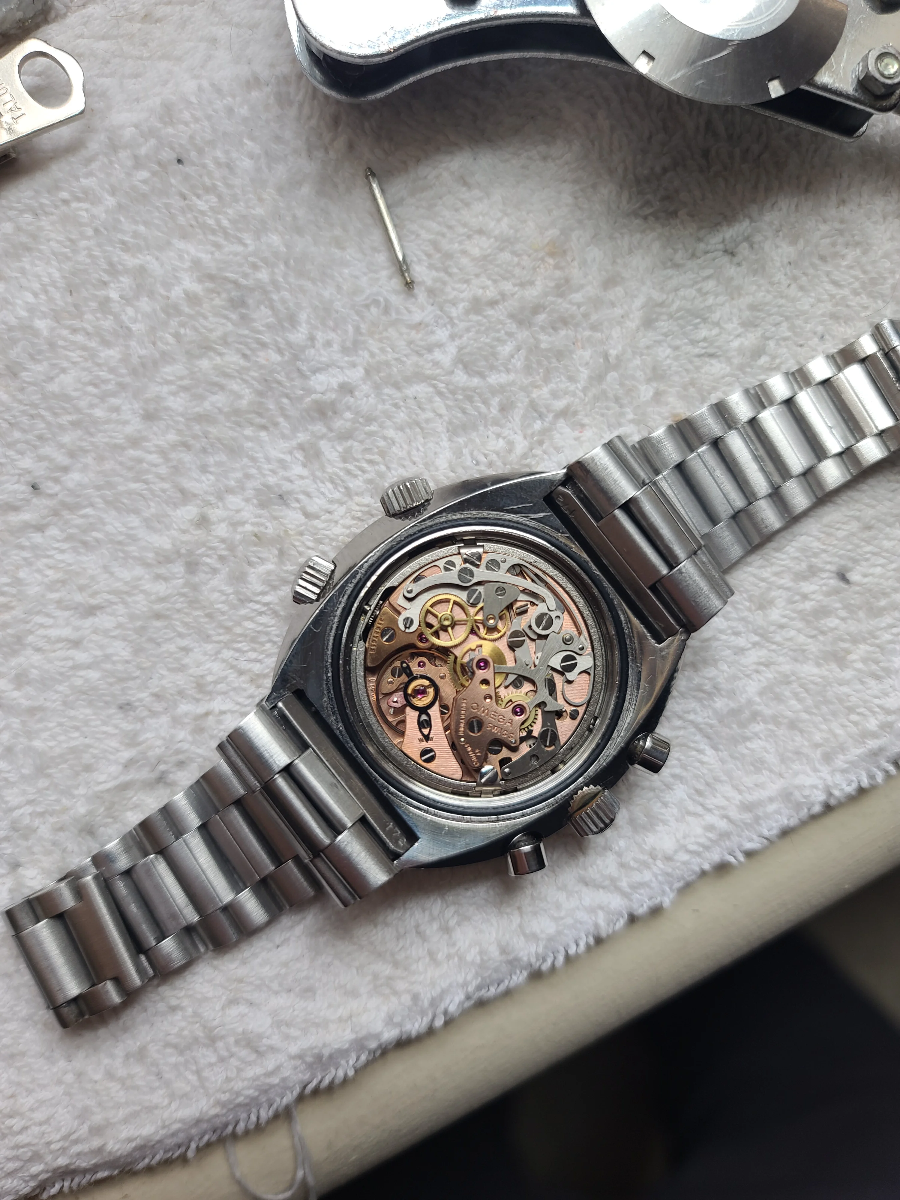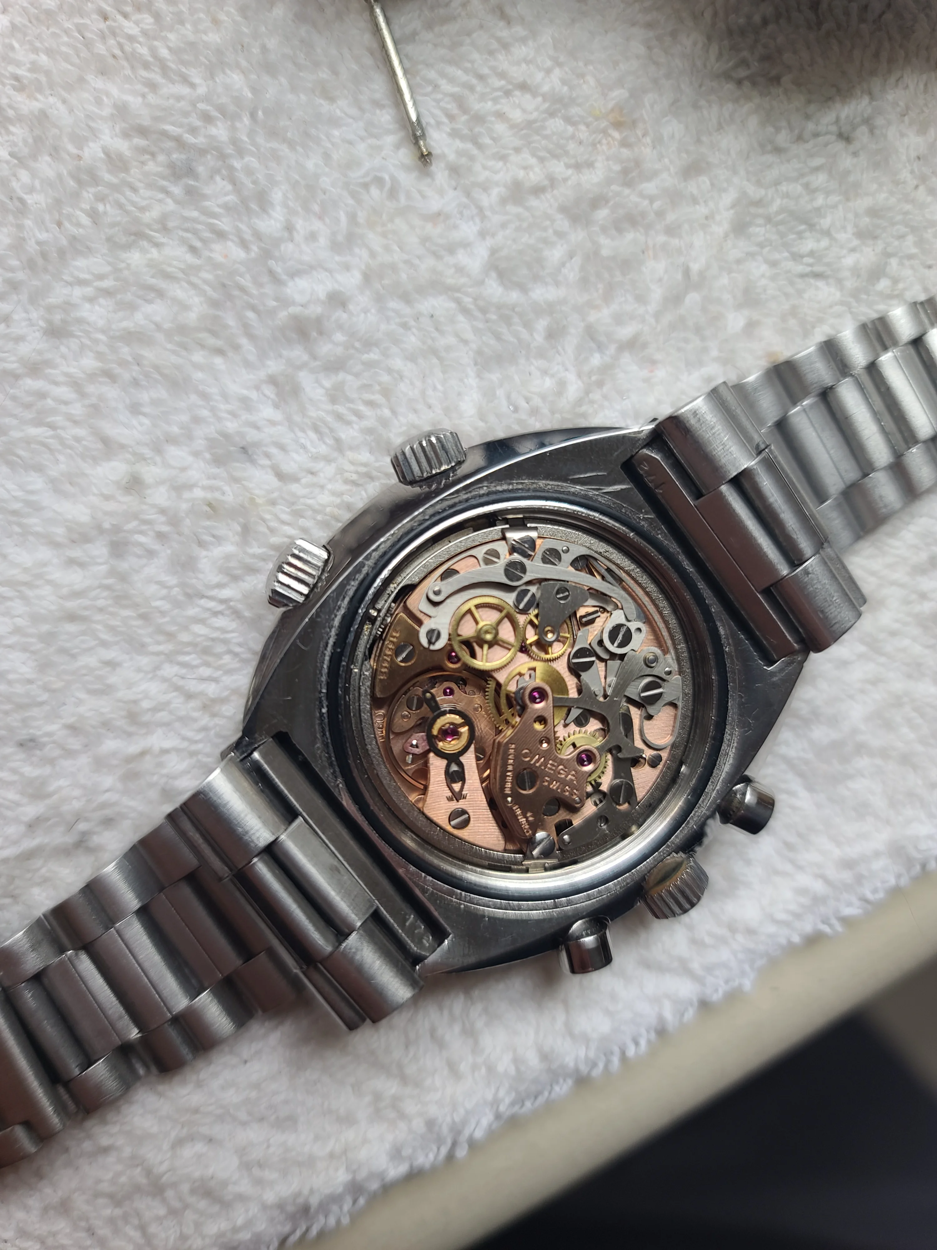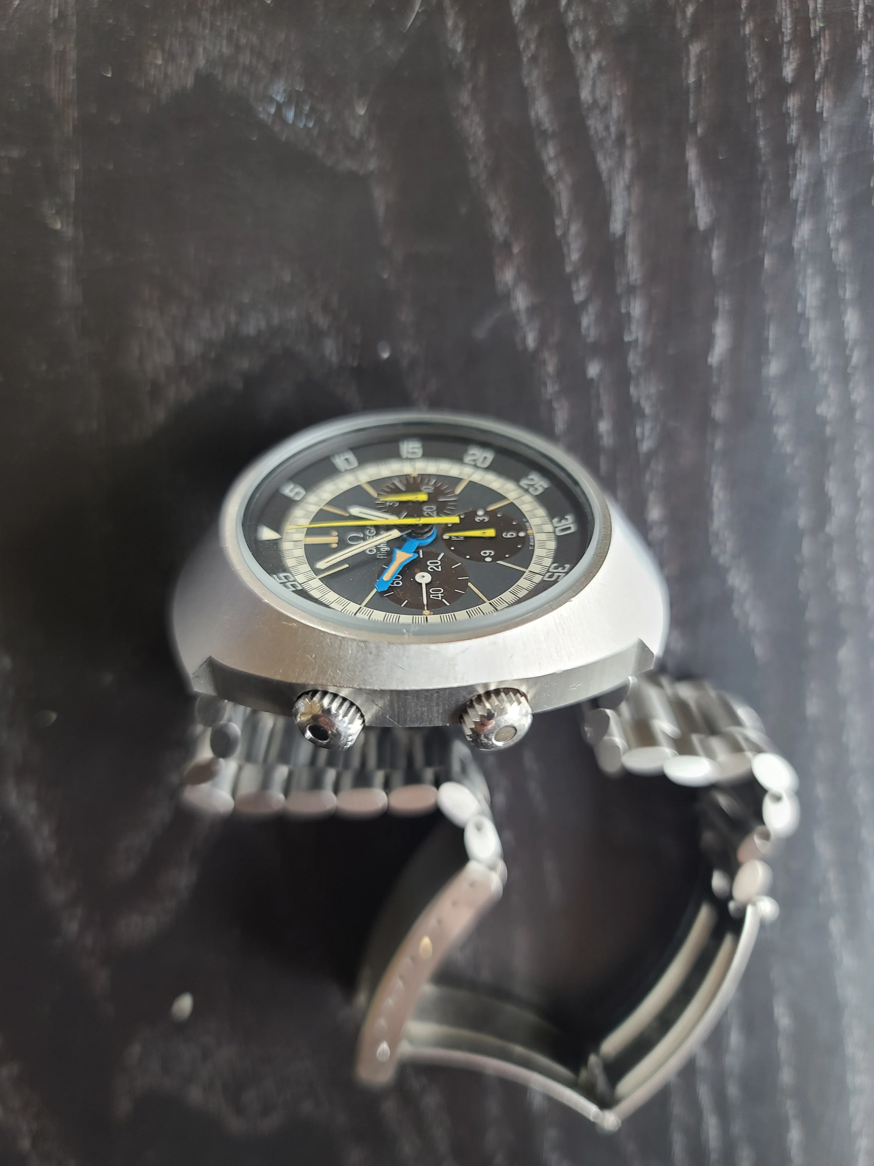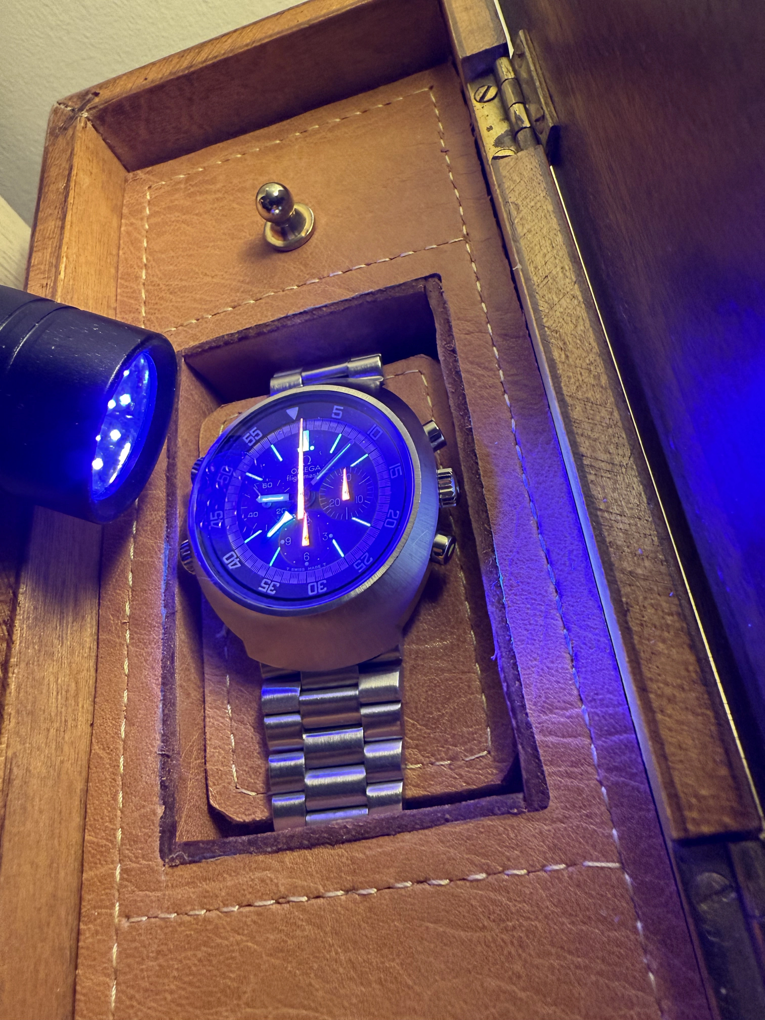 ·I just received this Omega Flightmaster 145.026 watch. It is in stellar condition and everything is original. It is from 1972 according to the serial number. The dial is outstanding and so is the rest. Case is sharp and has never been polished. Movement has just been serviced and looks really clean. I waited for a while to buy my first Flightmaster and it looks like the wait paid off.