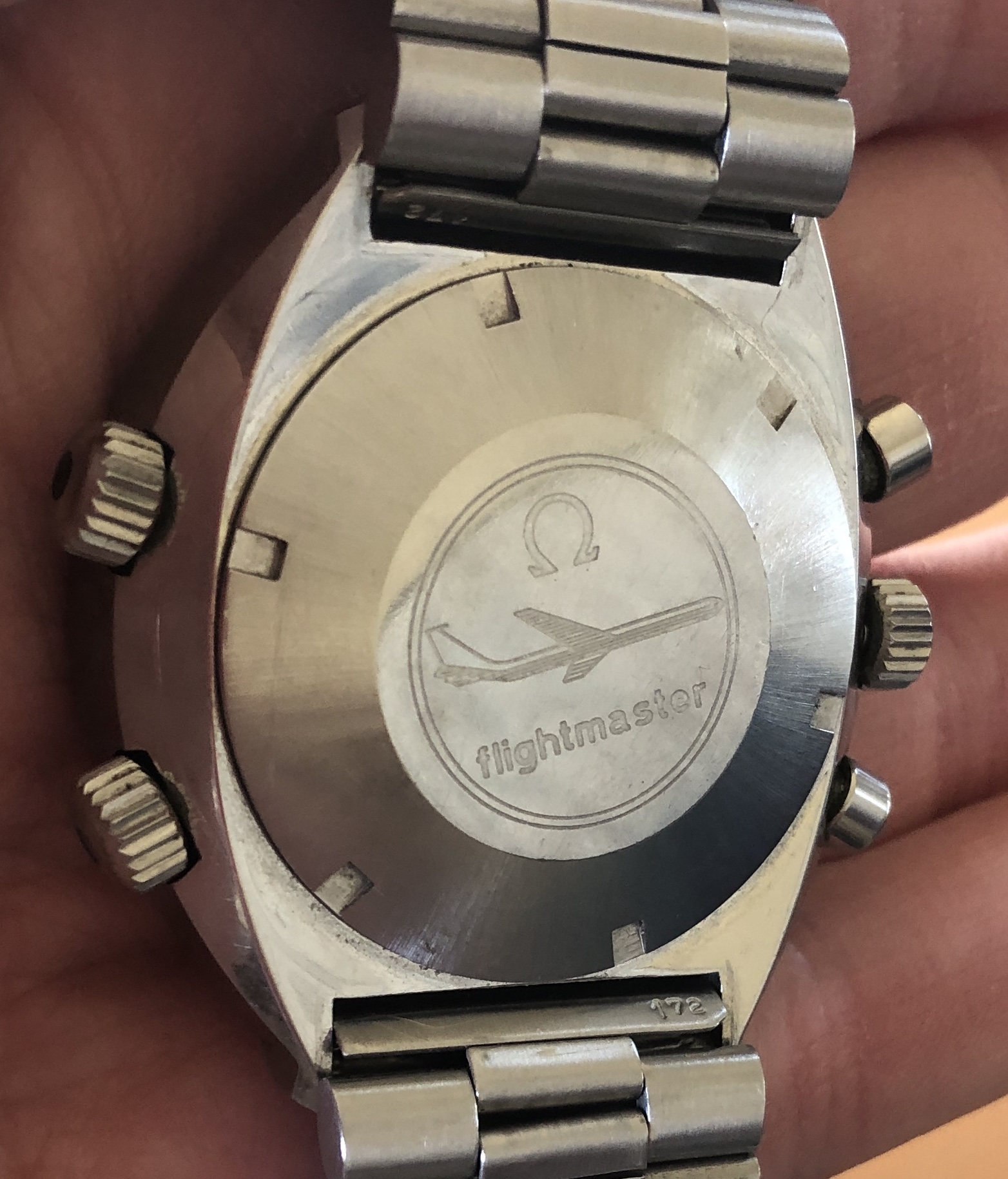 Caseback is in nice condition, also with the original radial brushing on the outer beveled area with the airliner image showing clearly in the center.