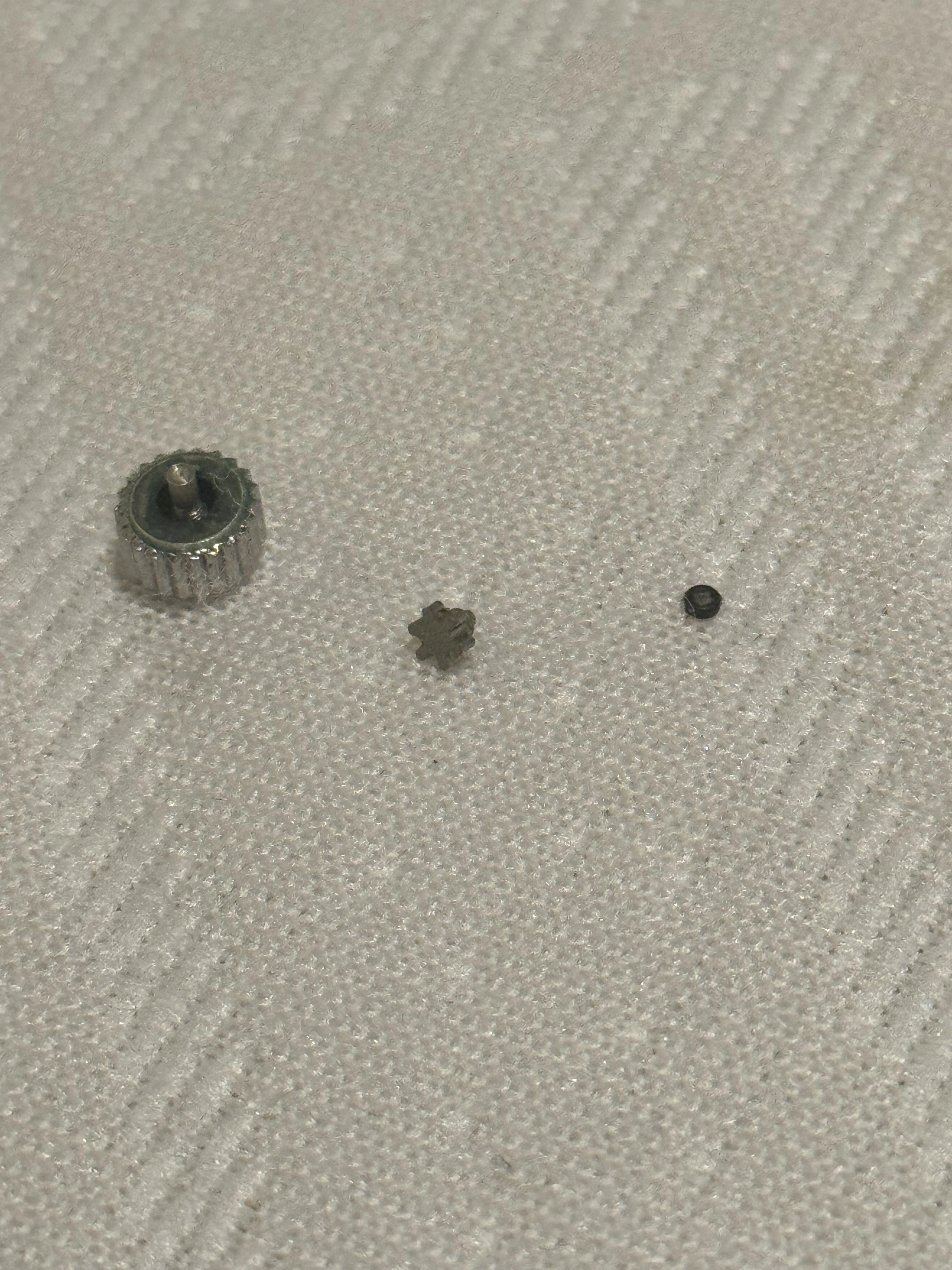 Bottom crown on the left that moves the rotating bezel, has it’s stem broken. All the gear parts are there.