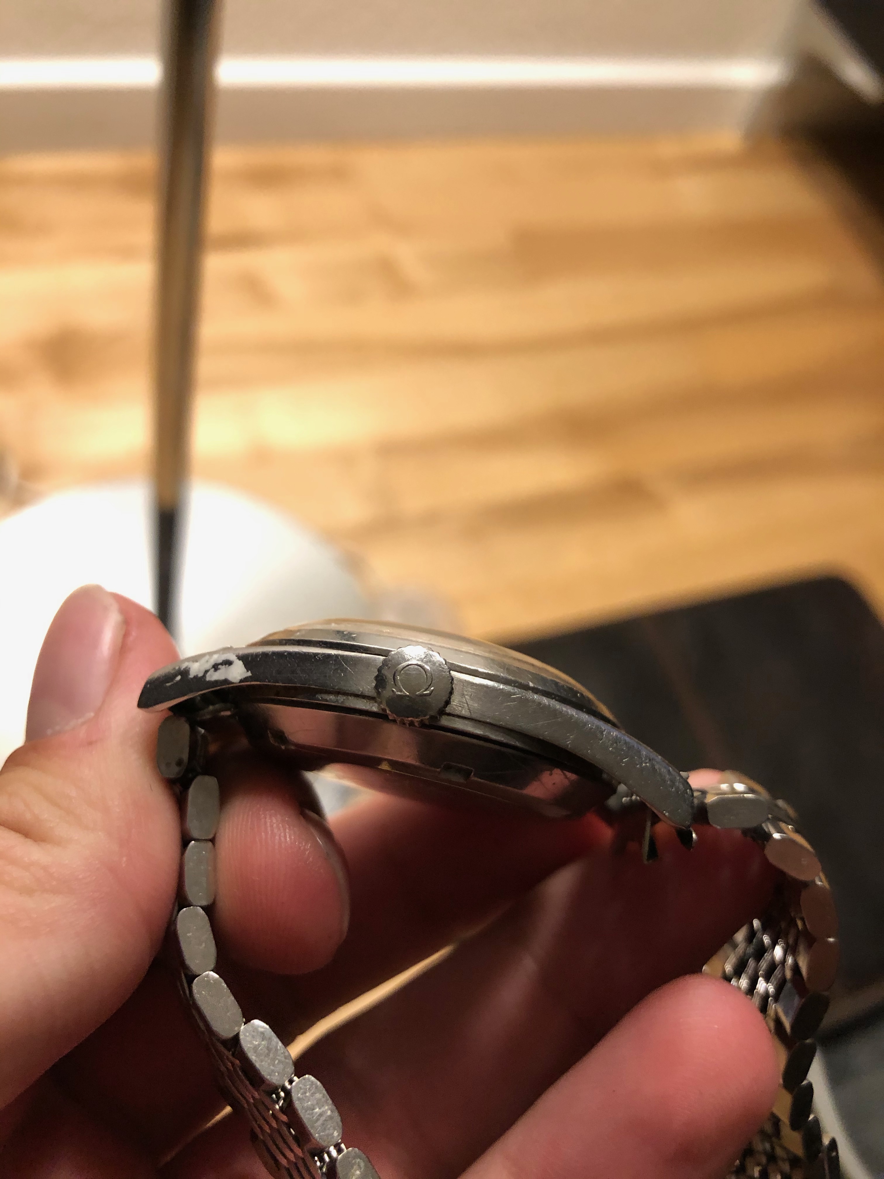 It has a Omega Beads of rice bracelet, original omega plexiglass crystal, and original omega crown. When I bought the watch it was overwound. But when I came back to my appartment it started ticking, and it keeps time just perfect.