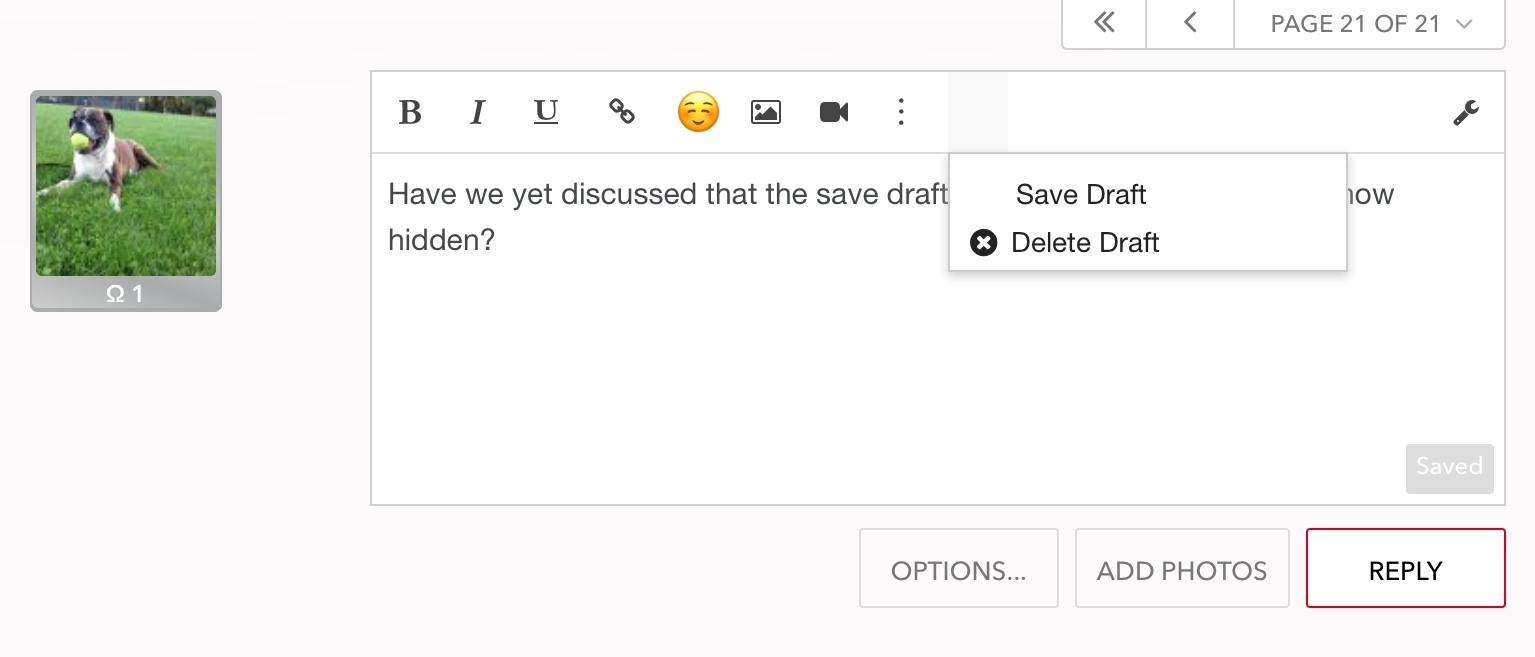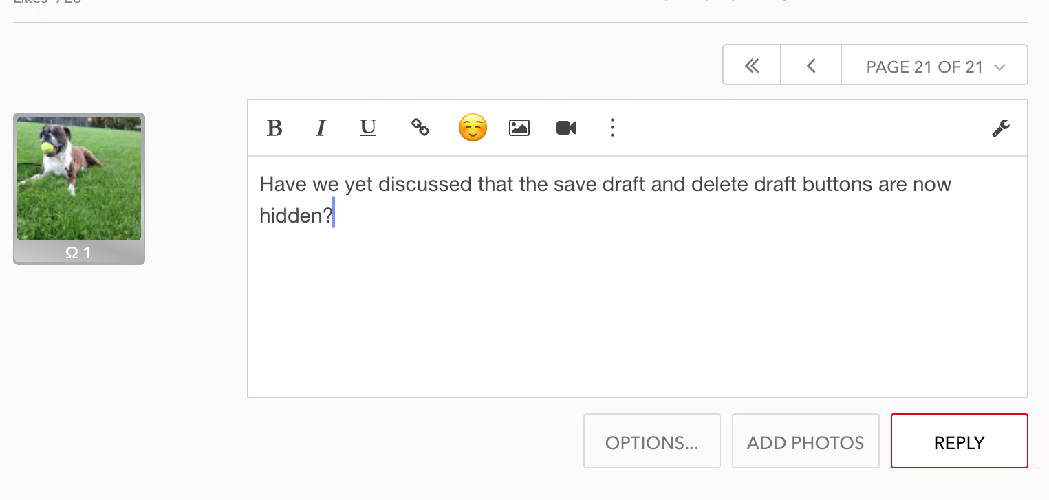 Have we yet discussed that the save draft and delete draft buttons are now hidden?