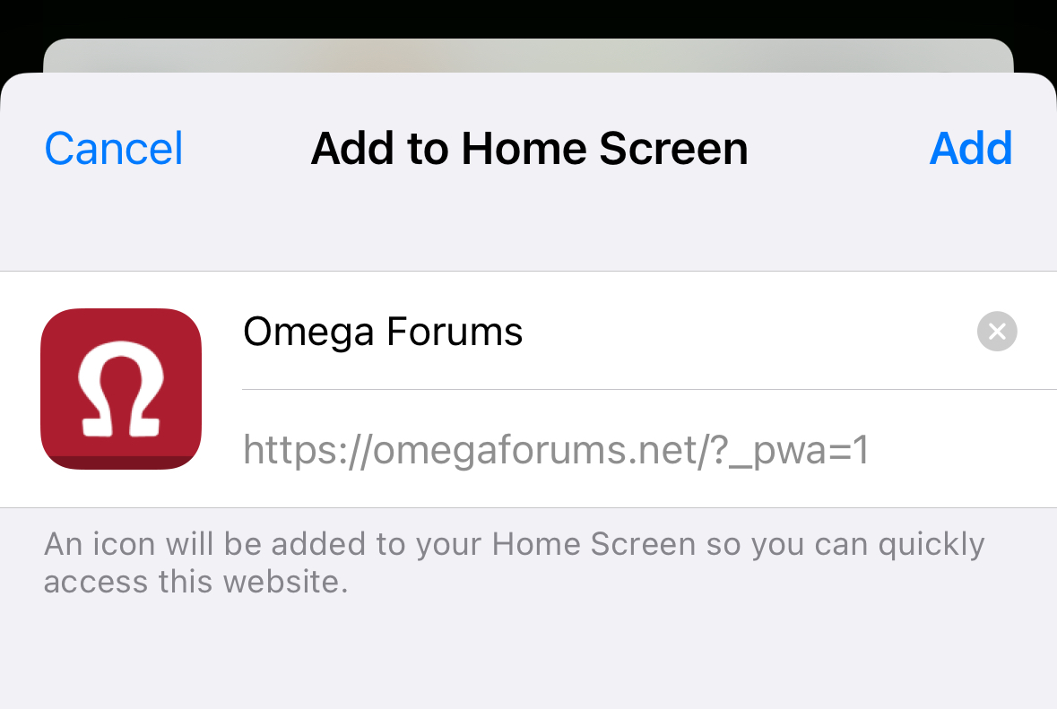 8. Close the browser, find the new Progressive Web 'app' that's just been added and you now have a new dedicated Omega Forums app. I added mine to the main app tool bar.