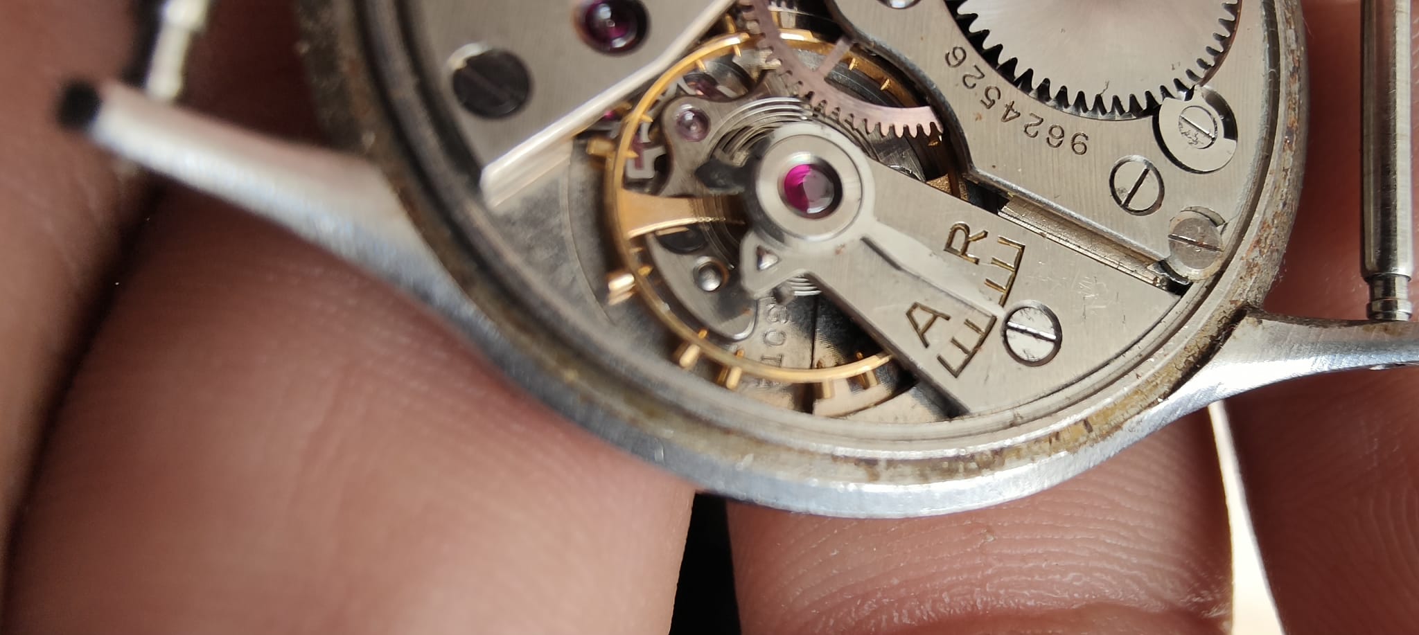 That particular logo style was only introduced in around 1953 on watches with much later (12-13mil) serial numbers.