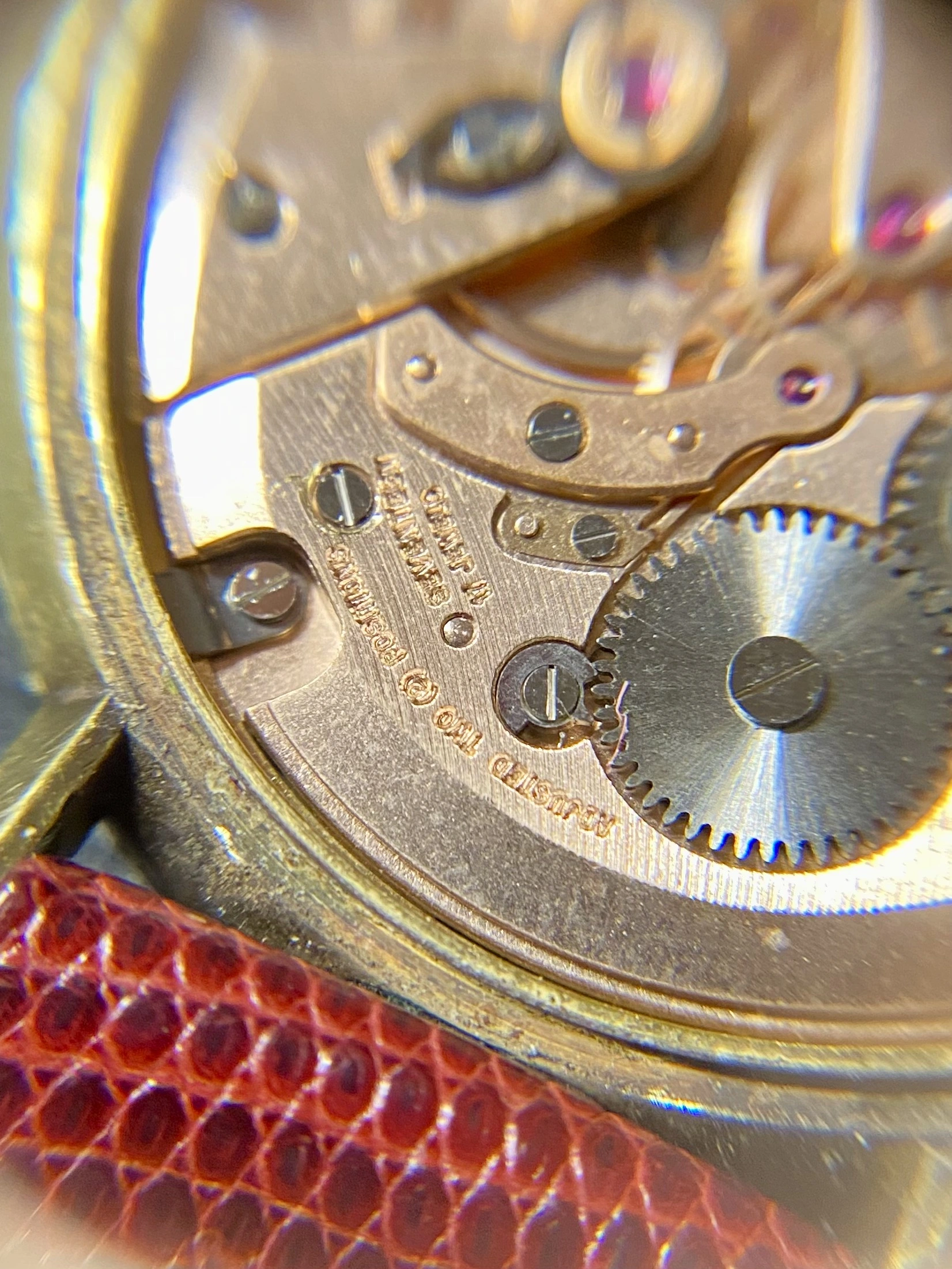 Moving on to the Caliber 601: at first glance, in terms of its shape and plating, it seems correct. However, the quality of the engravings and the surface finish is way lower than other 601 calibers I own. Especially the text "adjusted two (2) position" and "seventy 17 jewels" is almost unreadable even using a loupe (pictures make it look better than in reality), whereas I can easily read it on other calibers without any effort.