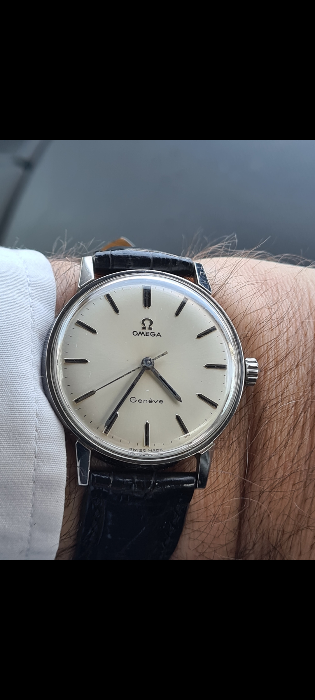 For sale today a nice entry level Omega Genève 135.011. This watch was produced in app. 1969 and the case measures 34mm. The watch runs fine but service history is unknown.