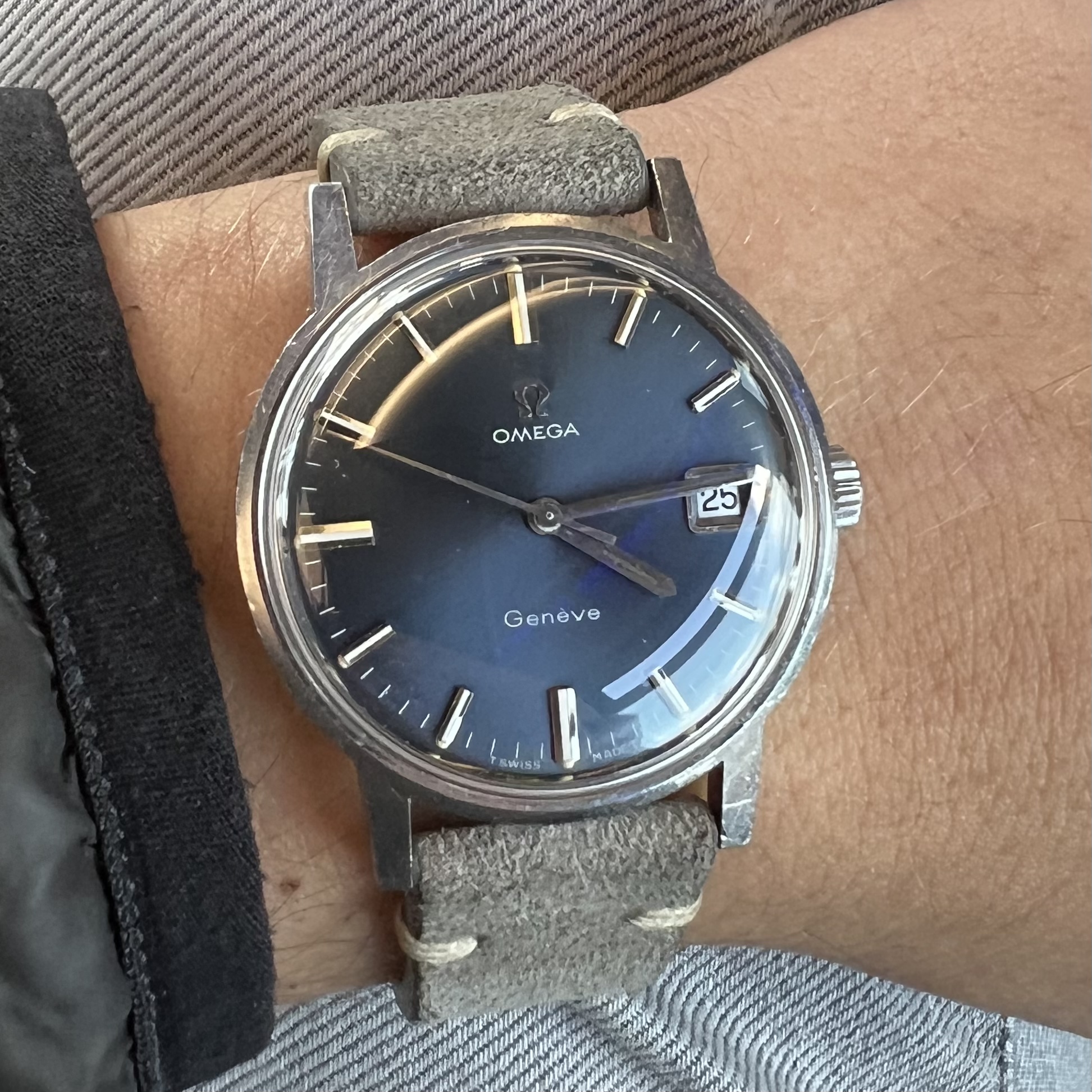 ··@SpeedyBirthYearFor sale a nice entry level vintage Omega Genève 136.070 in good vintage condition. Whilst these stainless steel Genèves are rather easy to find with white or silver dials, finding a (denim) blue dial like this one is a completely different endeavour...