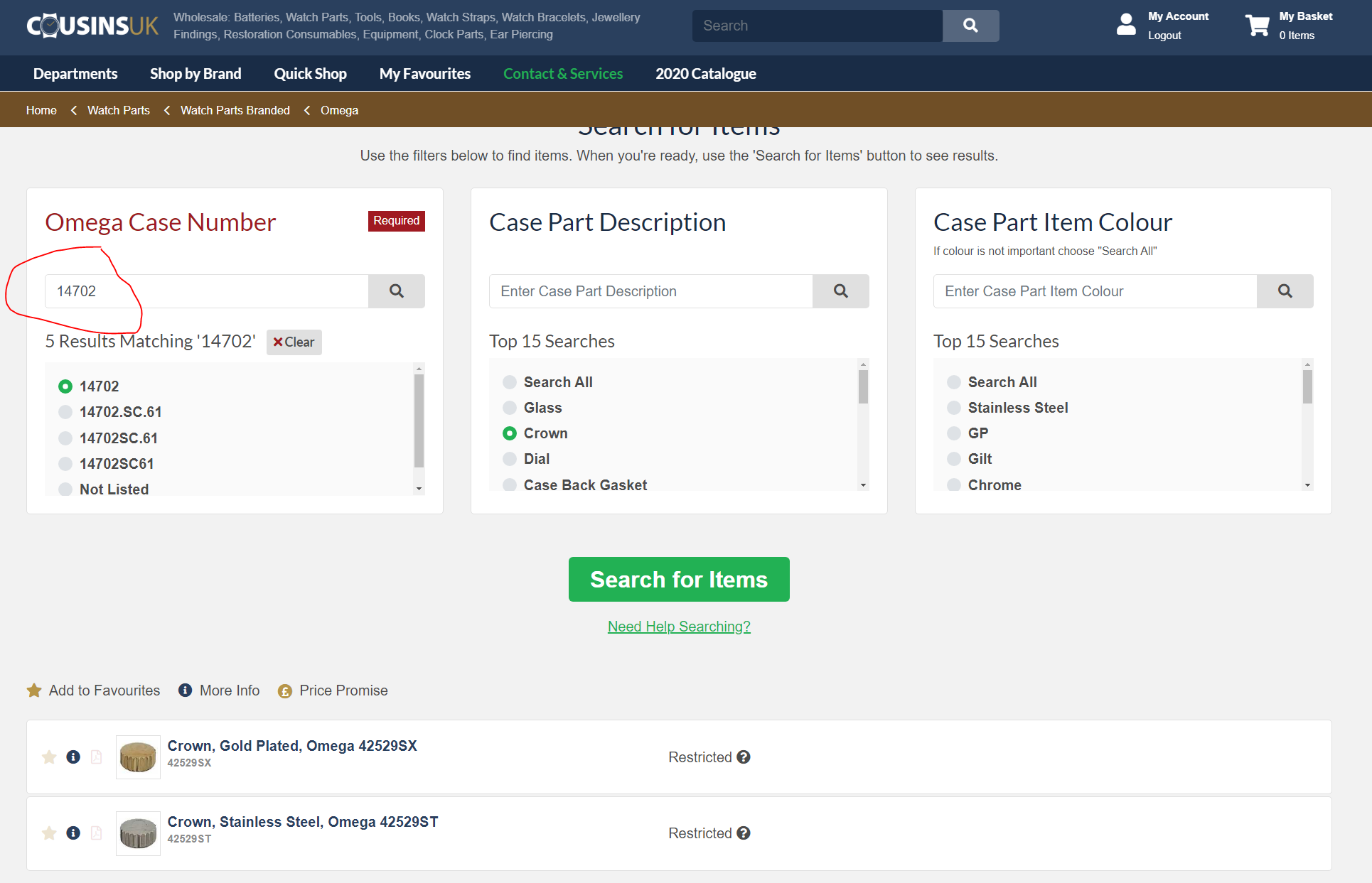 Reference numbers for Omega Geneve 14702 case, cal.552