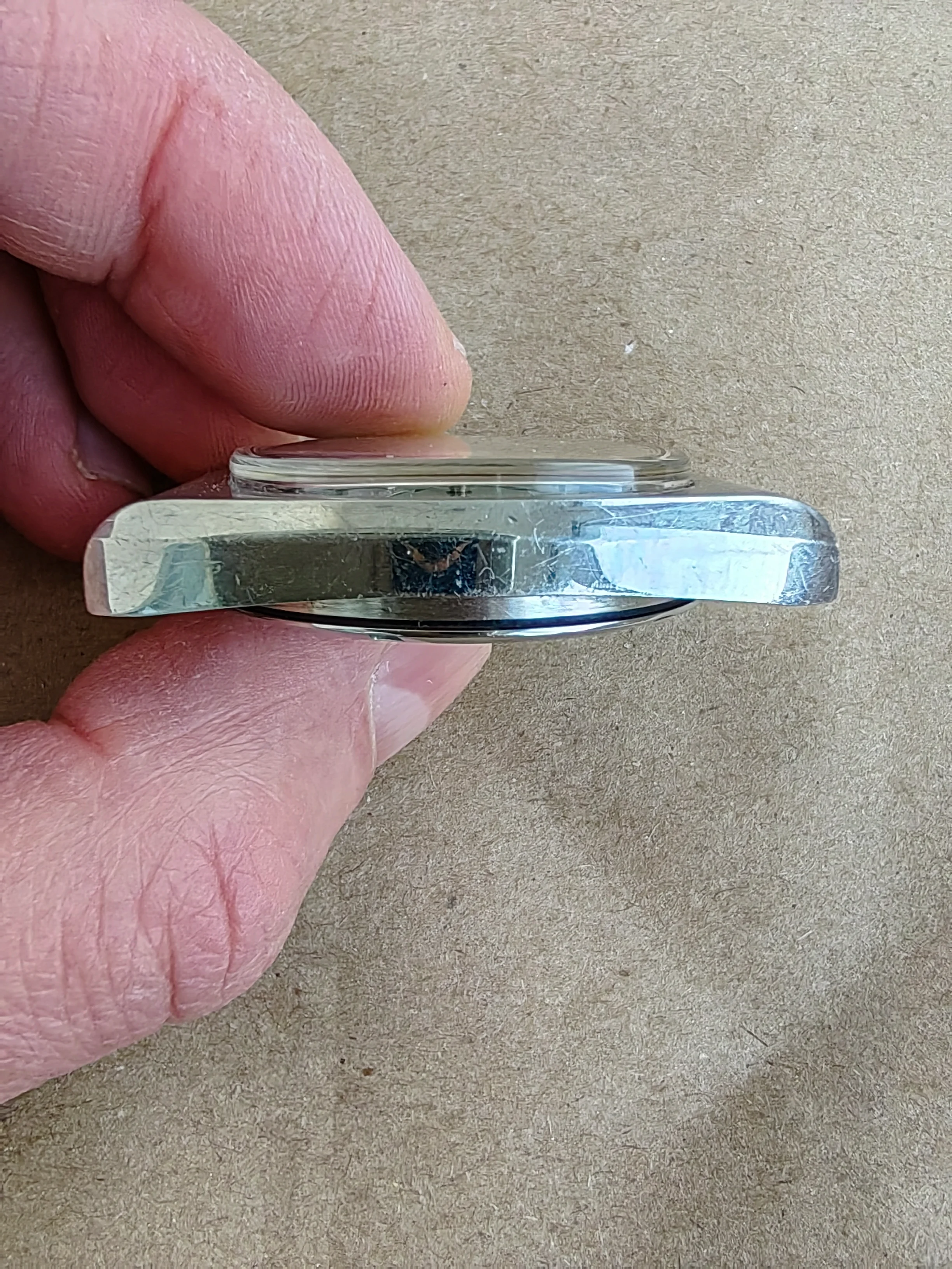 It wasn't worn but has some traces: tinny scratches on case, which looks too visible on pictured due to phone camera's + default shots post processing.. In real life the watch looks better than in my photos.