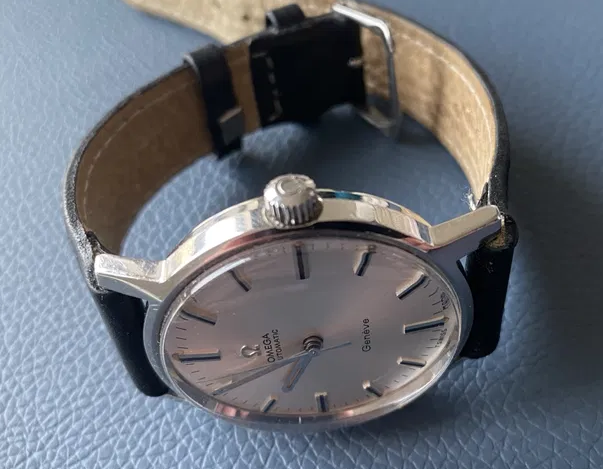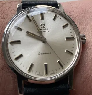 I'm thinking about purchasing a vintage Omega watch, but its service history is unknown. As I'm new to the world of watches, I'd appreciate your opinions. Does the watch appear authentic overall? Also, what specific things should I look for when inspecting it before making the purchase?
