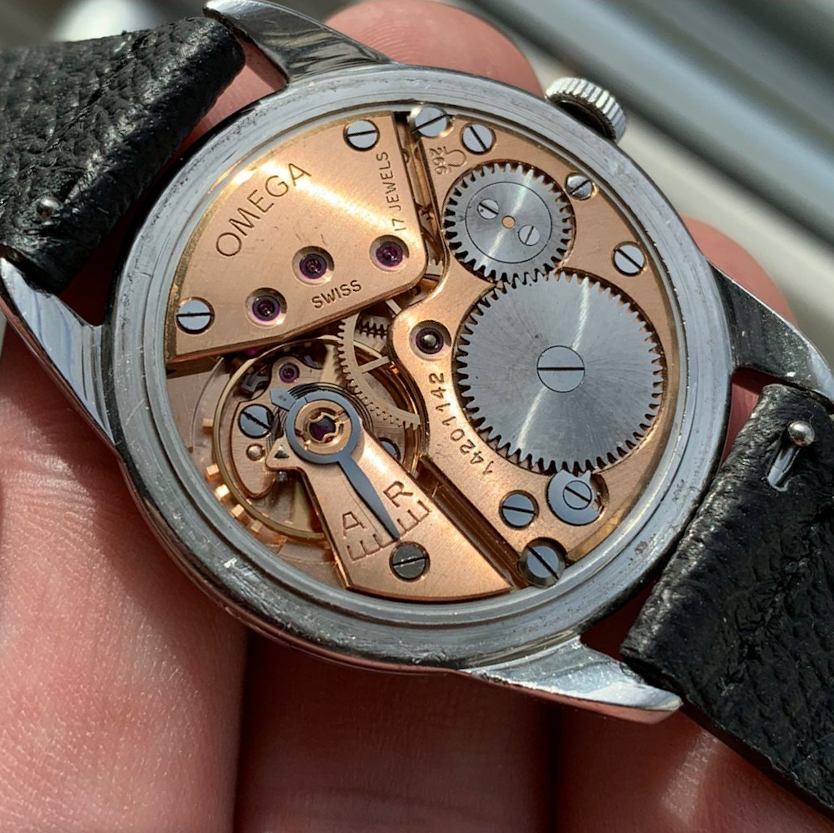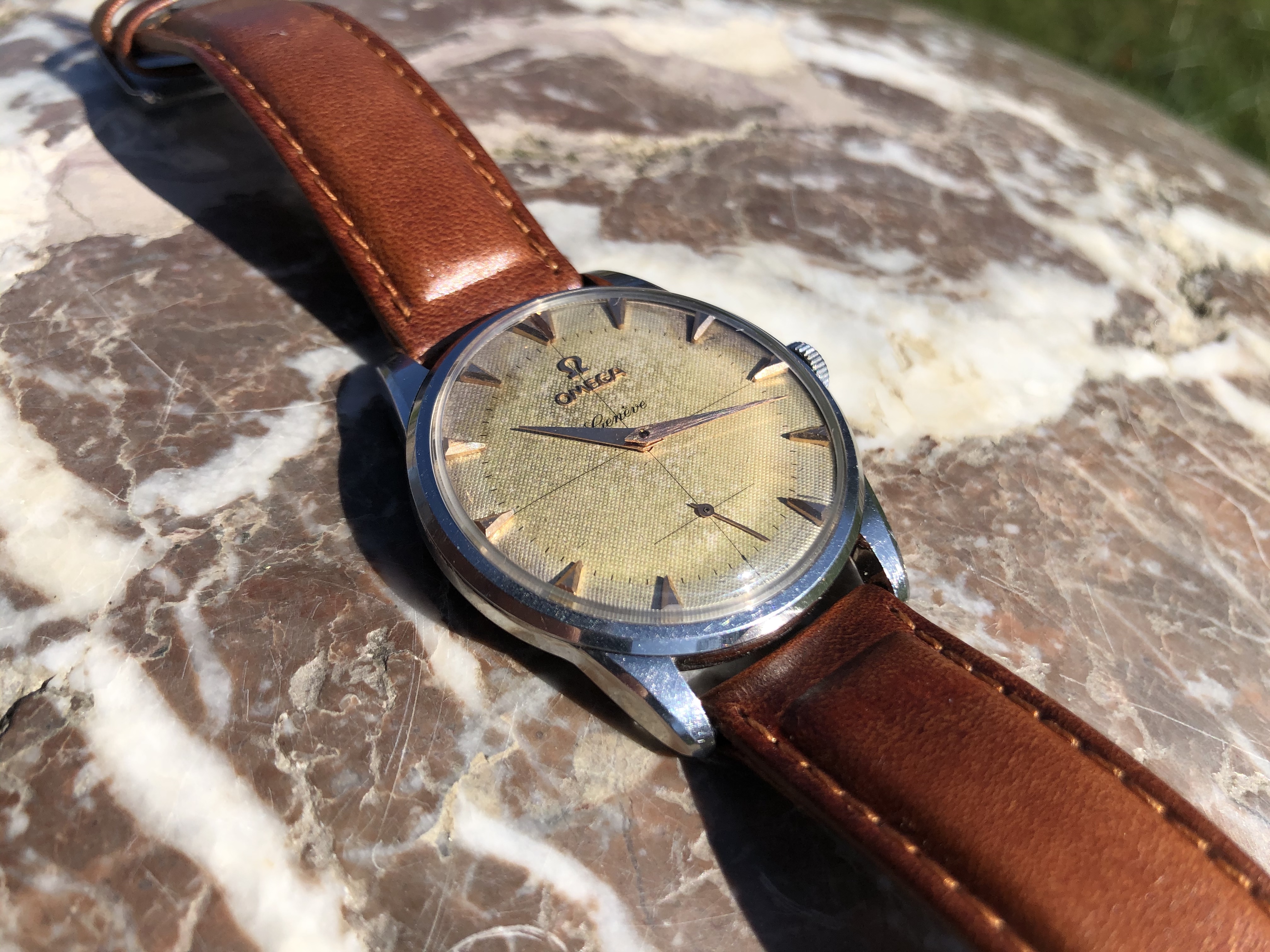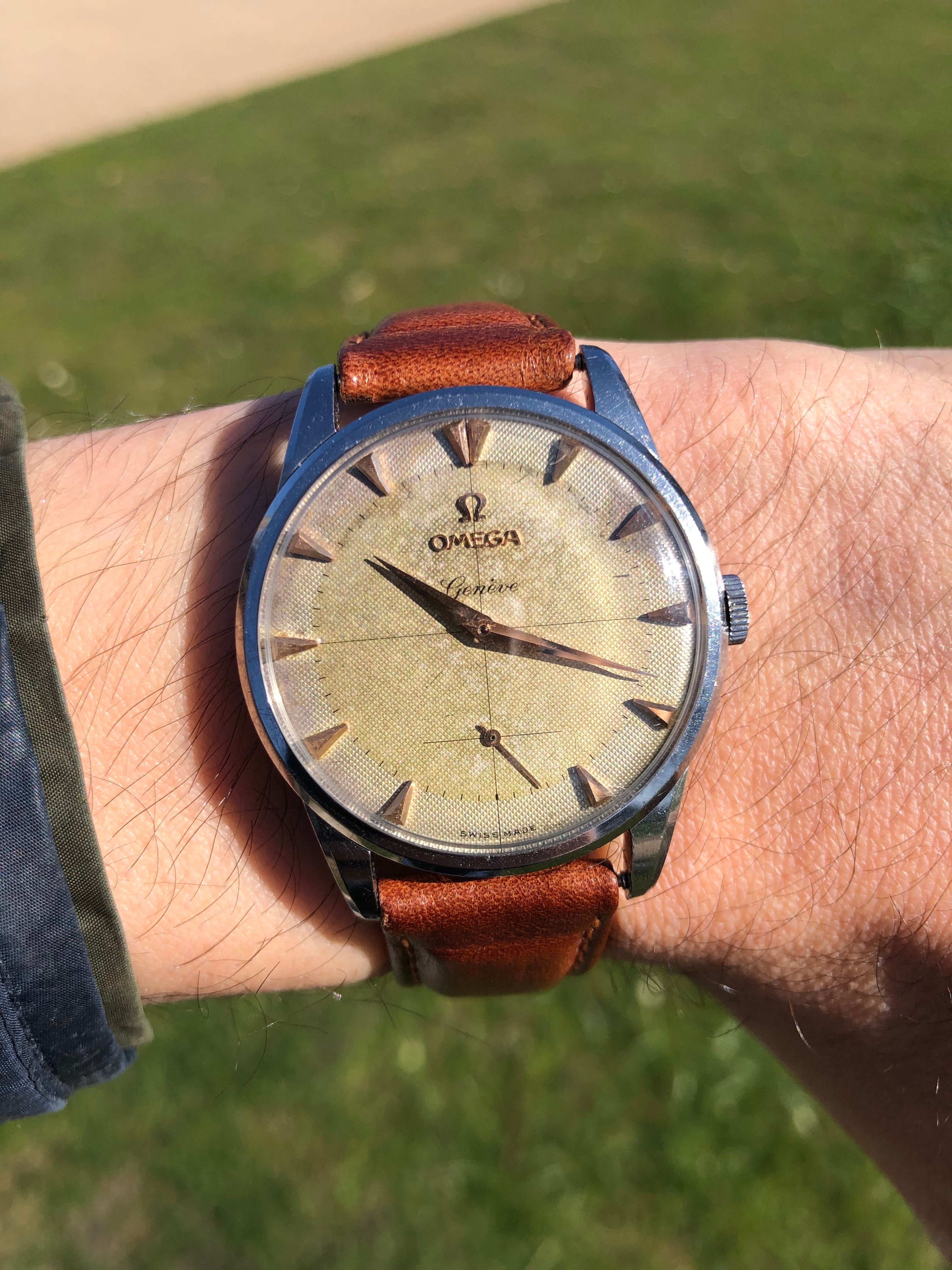 ·These early Genève watches were Omegas top line only exceeded by the constellation line. This is one of the uncommon jumbo versions with beautiful facetted rose gold markers and hands.