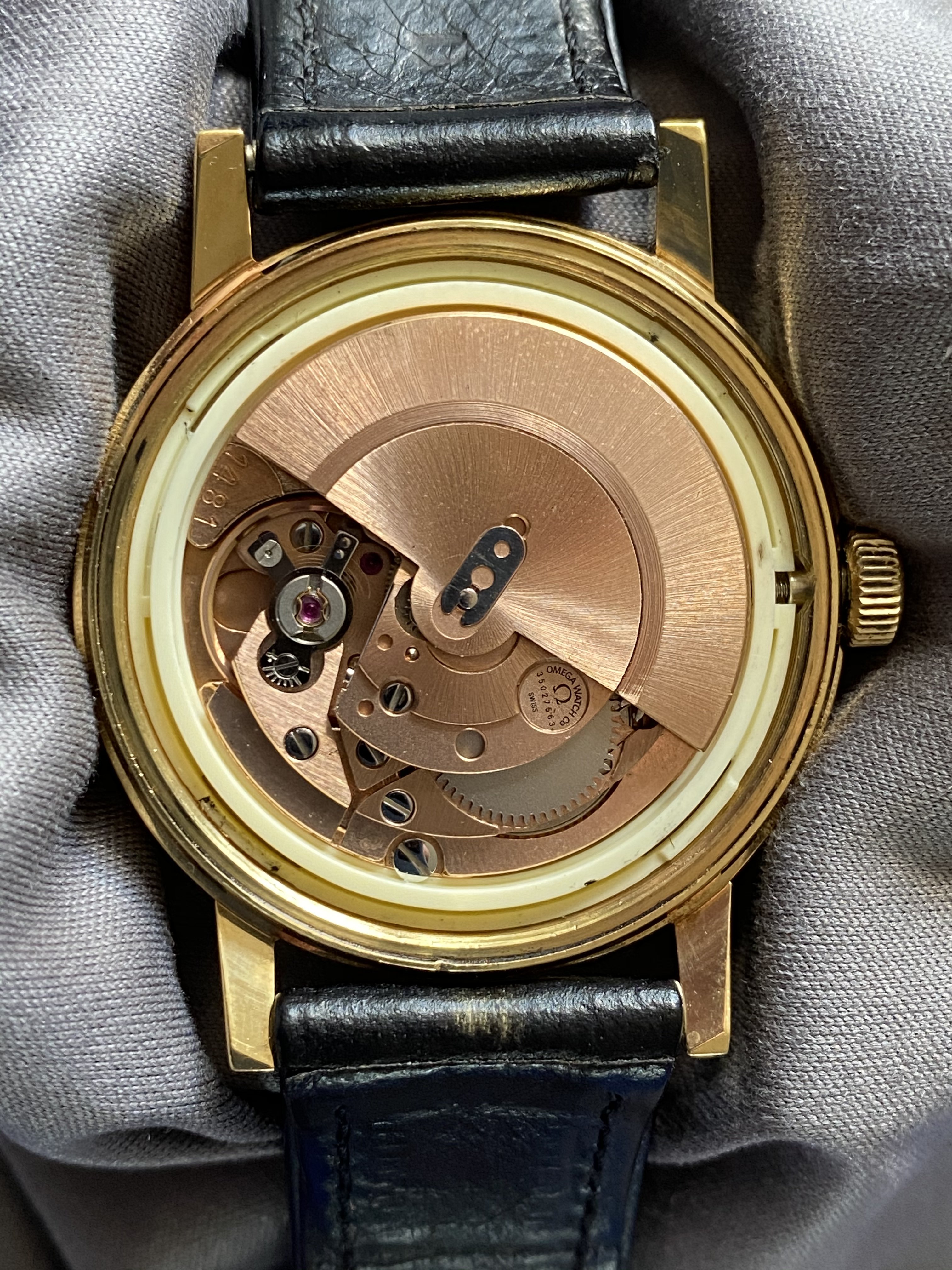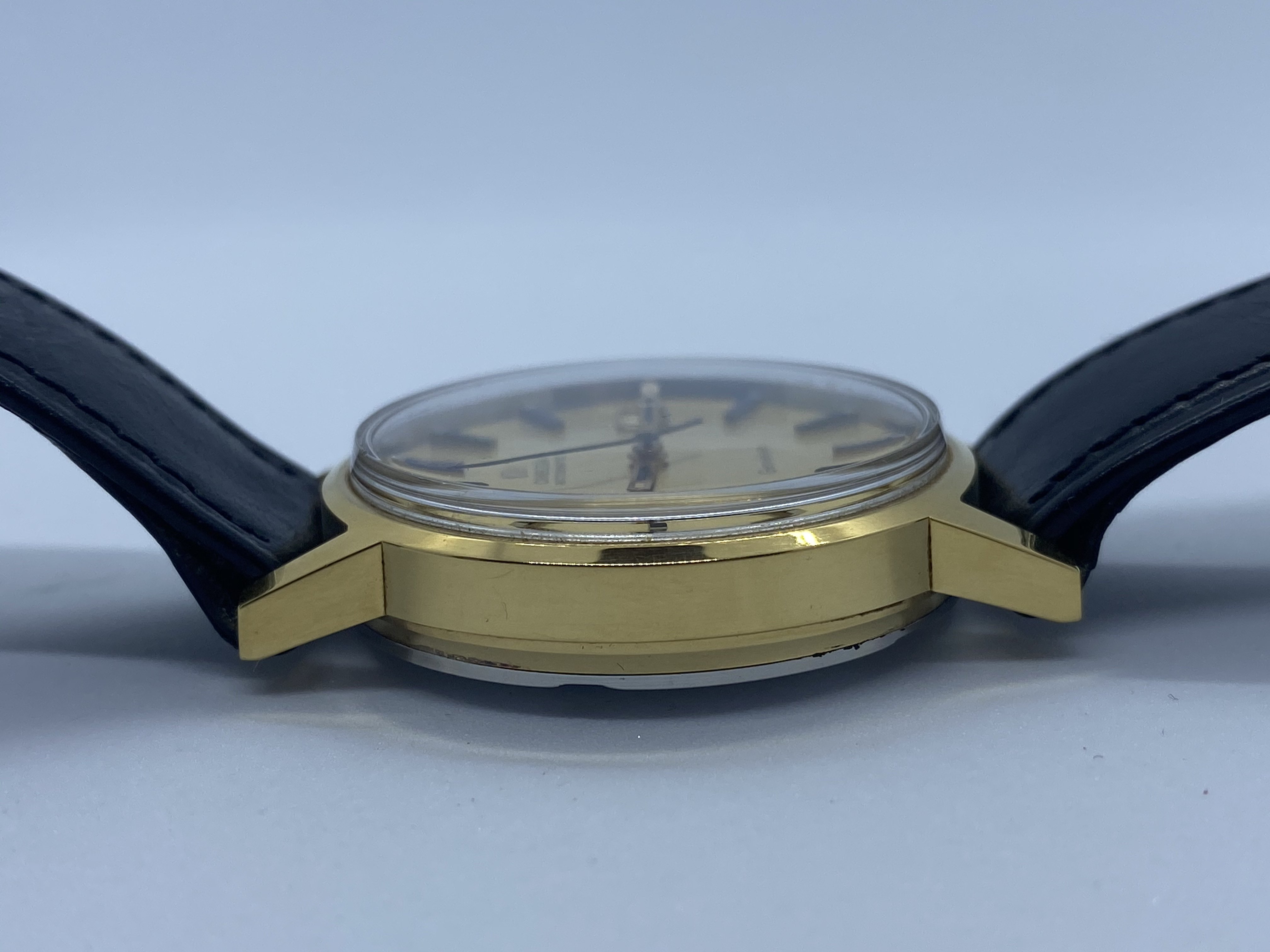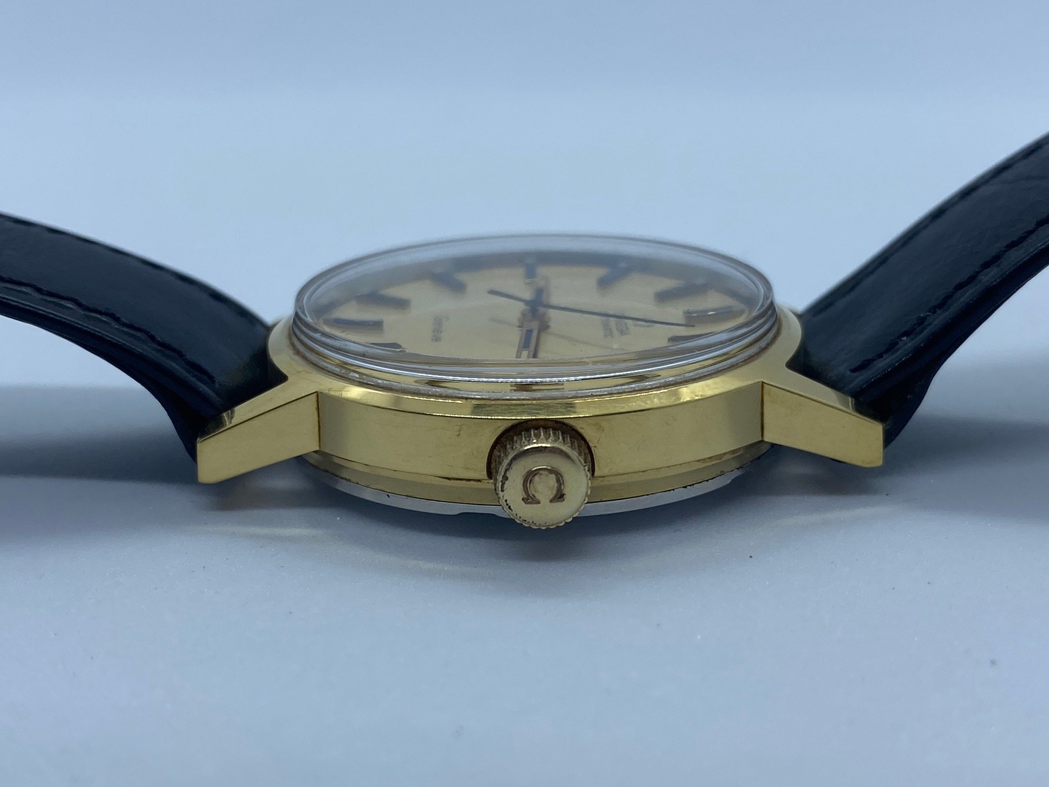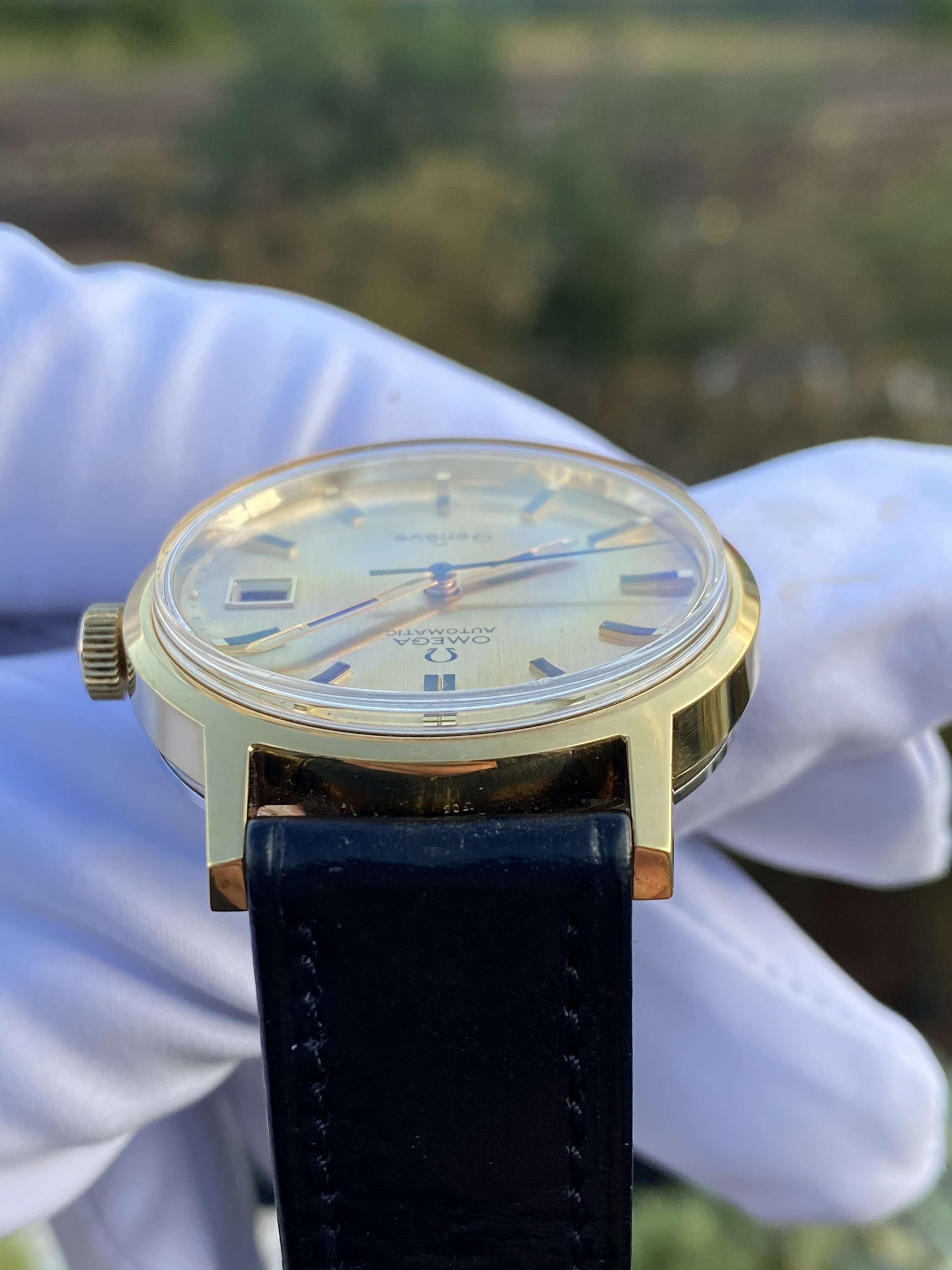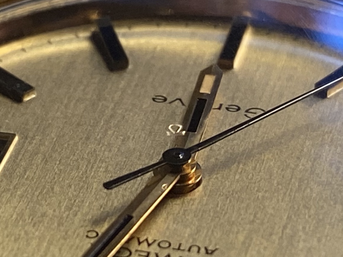 The watch in question is a ca. 1972 Omega Genève Automatic, ref. 166.0098 with a golden brushed dial: